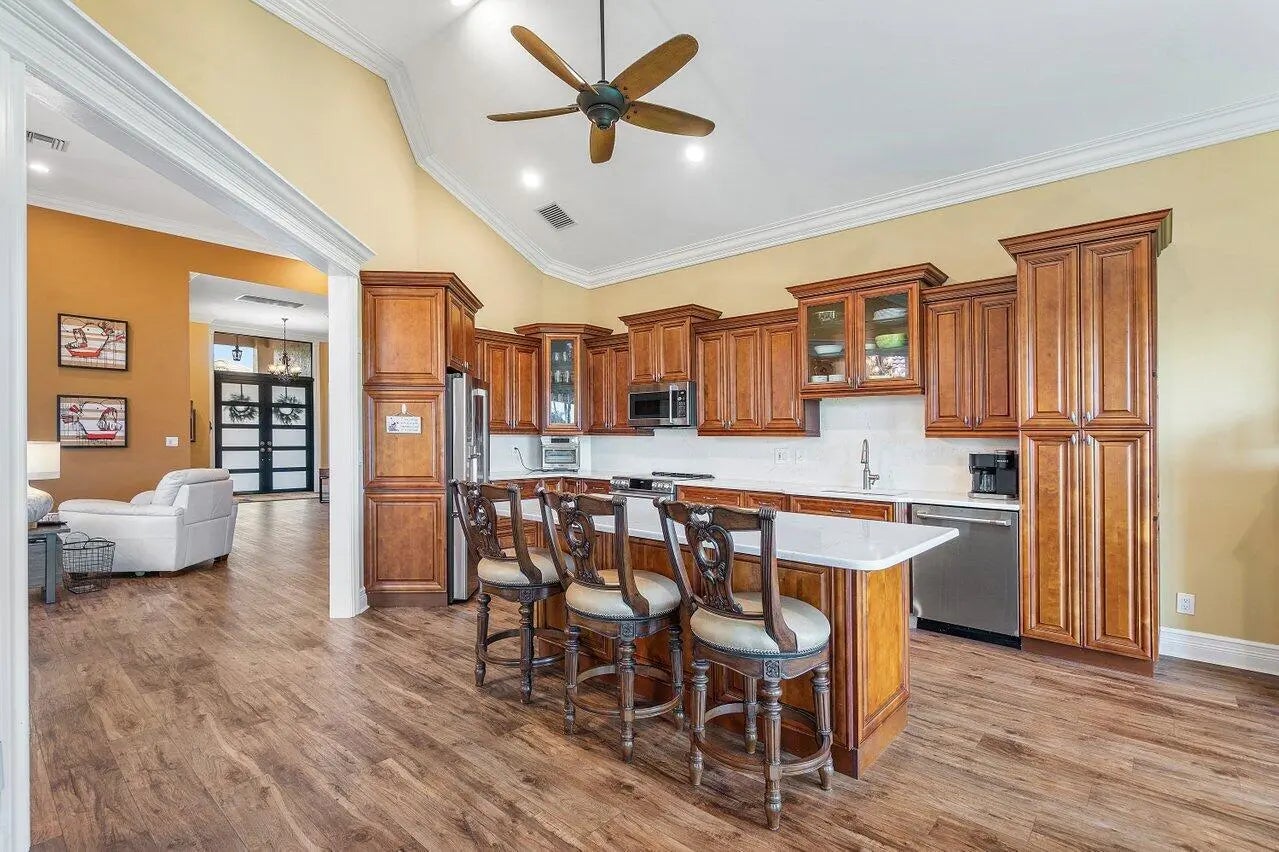 Live the lifestyle you deserve in this beautifully appointed 2-bedroom + den/office, 2.5-bath single-family home, nestled within the highly desirable gated 55+ community of Indian Spring in Boynton Beach. Offered in turnkey condition (furnishings negotiable). This light-filled residence features soaring 14-foot ceilings, wood-style flooring, hurricane-impact windows and doors, bathing the home in natural light while offering peace of mind. The spacious, open-concept layout is ideal for both everyday living and entertaining, with sweeping golf course and lake views that create a tranquil and vibrant backdrop. The oversized kitchen is a chef's dream, showcasing sleek quartz countertops, stainless steel appliances, ample cabinetry, and generous workspace. The adjacent living and dining areas flow seamlessly to the screened-in patio, an ideal spot to enjoy your morning coffee or unwind with evening cocktails while taking in the picturesque views. The luxurious primary suite offers a true retreat, boasting three walk-in closets and a spacious en-suite bathroom complete with soaring ceilings, skylights, a soaking tub, separate shower, and dual vanities. The private guest bedroom includes its own en-suite bathroom, providing a welcoming and comfortable space for visitors. A versatile and spacious den/office features a built-in Murphy bed, offering flexibility for use as a home office, hobby room, or additional guest space. Located in The Glades subdivision of Indian Spring, residents enjoy access to their own private clubhouse and pool, just a short stroll away. Indian Springs itself offers a premier active adult lifestyle with optional memberships for golf, tennis, and social activities. Members can enjoy the beautifully maintained 36-hole championship golf course, tennis courts, a full-service spa, fitness center, and a stylish café along with a year-round calendar of events, classes, and entertainment. Whether you're seeking relaxation, recreation, or community, this home and its surroundings deliver an exceptional living experience.