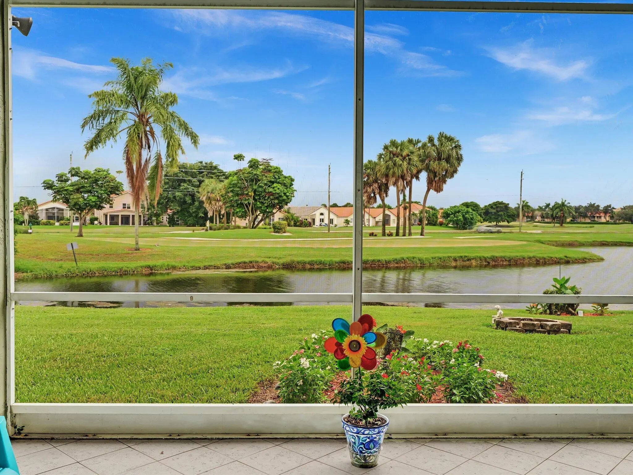 Priced to sell!! Beautiful large home in Golf Colony-Pipers Glen Estates. Only 165 homes in community. Low HOA no mandatory membership however membership is available through Golf club. Breath taking views of water and golf course which can be seen in every room. Light, bright, freshly painted with a tranquil feeling. Ceramic tile throughout. Master bedroom and closets are extremely large. Master bath has separate spa tub, dual sinks and block glass shower. Serene patio perfect for relaxing and observing golfers, water and wildlife. Seller contribution towards roof replacement.