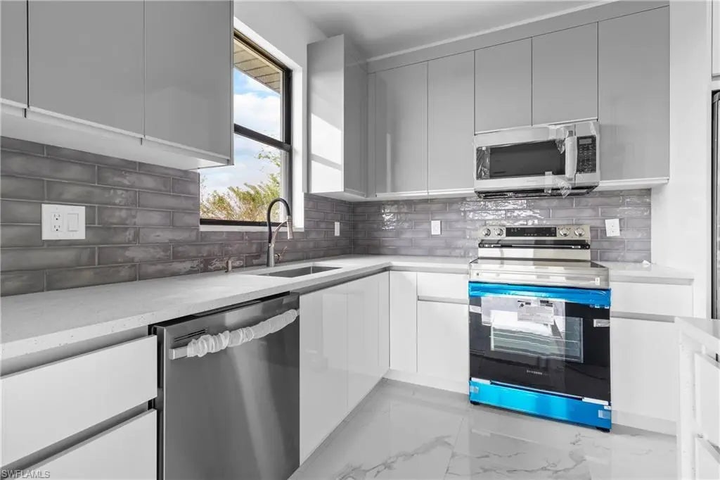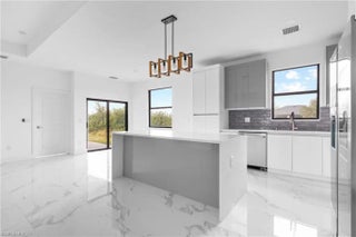 Now It's the Perfect Time to Buy! This gorgeous new construction on a freshwater canal could be the one! With an open concept floor plan and a sleek modern design, this home has everything you need and more. Here's what makes it stand out: 3 spacious bedrooms + Den 2 stylish baths 2-car garage Gorgeous Italian tile throughout the home A kitchen that's chef-approved with quartz countertops, stainless steel appliances, and a French door refrigerator Remote control ceiling fans in every room for your comfort The master suite is a dream! It features his & hers custom-designed closets, a self-standing tub, and a double-entry walk-in shower with multiple showerheads and separate sinks. Plus, the under-truss lanai offers a spacious area for entertaining, and the home is built with hurricane im