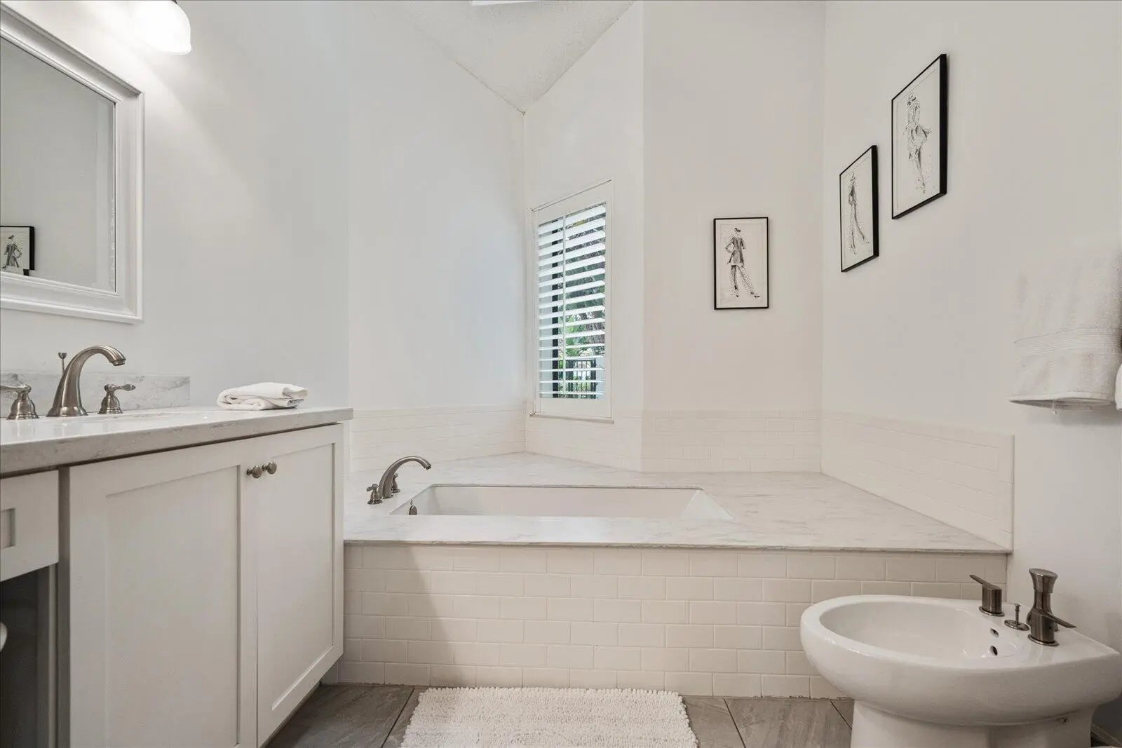Cathedral Ceiling(s), High Ceilings, Walk-In Closet(s), Bedroom Layout - Split, Roman Tub
