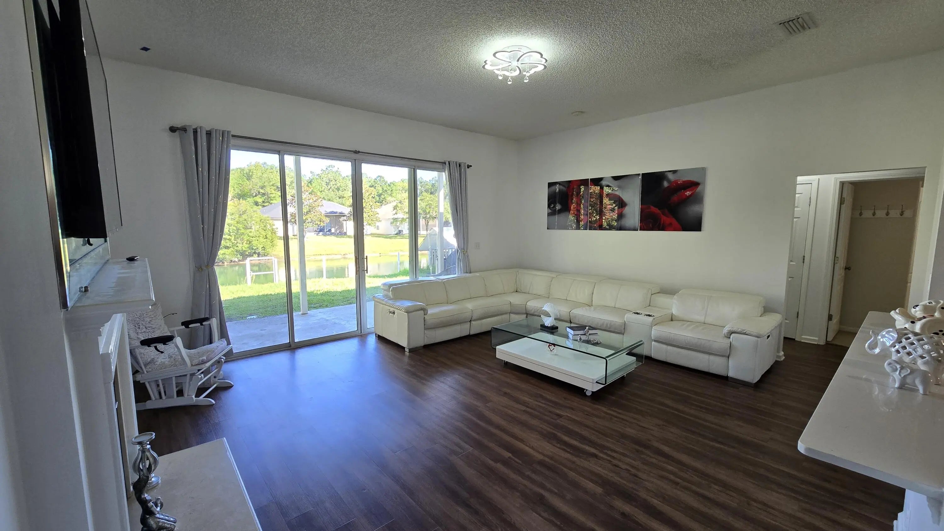 Beautiful Single Family Home with four bedrooms, two baths and two car garage. 4th bedroom can be used as a den or office. Large master bedroom with windows looking at the green area and pond. Open and large kitchen and family room. Covered patio. Gentle Woods is a very desirable and quiet community. This home could be s great starter home or a great investment property.
