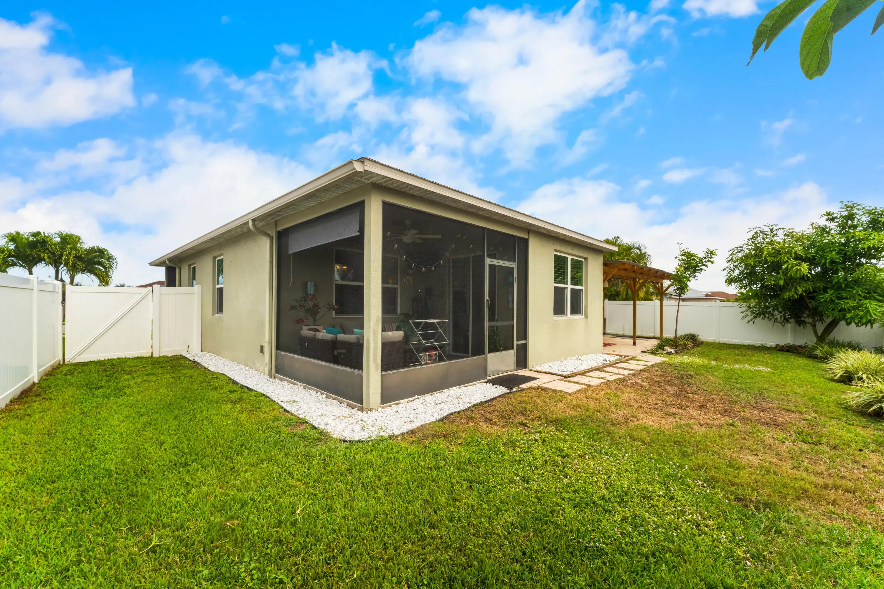 Welcome to this beautifully maintained 4-bedroom, 2- home located in the desirable Sterling Lake community of Bradenton. Built in 2013, this home features an open-concept layout filled with natural light, ideal for both everyday living and entertaining. The kitchen offers granite countertops, stainless steel appliances, ample cabinetry, and overlooks the spacious living and dining areas. The primary suite provides a private retreat with a generous walk-in closet and en-suite bath, while the additional bedrooms are well-sized and versatile for guests, home office, or other needs. Tile flooring enhances the main living areas, with carpeted bedrooms for added comfort. Enjoy Florida living year-round on the screened lanai overlooking a fully fenced backyard.