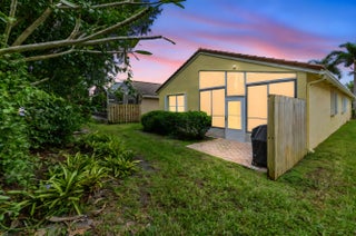 BRAND NEW ROOF, WATER HEATER, FRESHLY PAINTED 2025! Welcome to Indian Hills - The Grove, a desirable gated 55+ community offering comfort and convenience. This zero-lot home features 1,720 sq ft of living space with 3 bedrooms and 2 bathrooms. Enjoy tile flooring throughout the main living areas, with laminated and carpeted flooring in the bedrooms. Cathedral ceilings with a knock-down finish enhance the bright and open layout. The kitchen comes equipped with appliances, including a refrigerator, range, and microwave, along with ample cabinets for storage and a countertop with bar seating perfect for casual dining. The living and dining areas flow seamlessly to a screened porch, ideal for relaxing or entertaining Additional features include a 2-car attached garage, accordion shutters for storm protection, and a fenced backyard with an open patio. The yard offers potential space for a pool. Conveniently located within a well-maintained, gated community designed for active adult living.