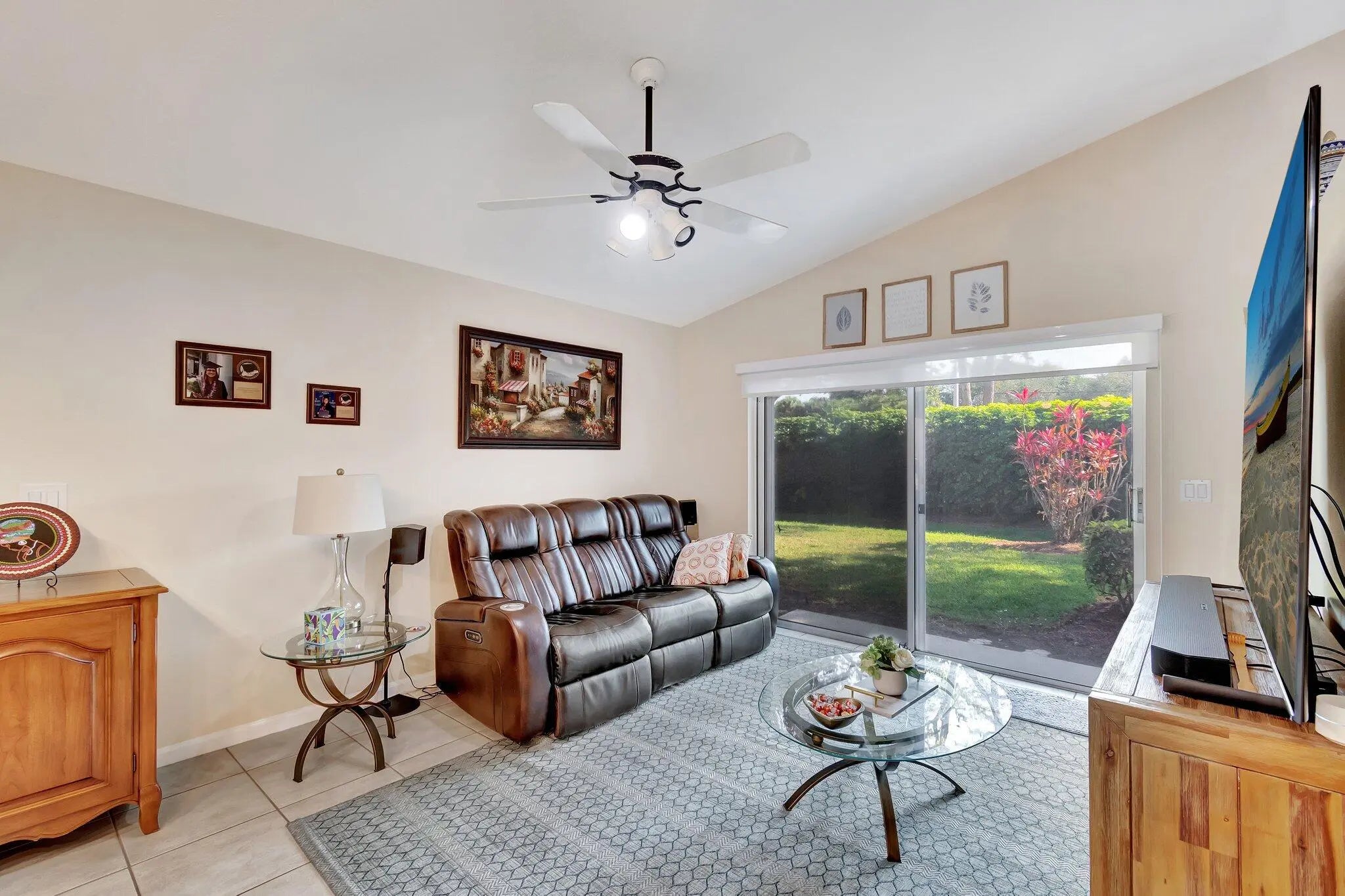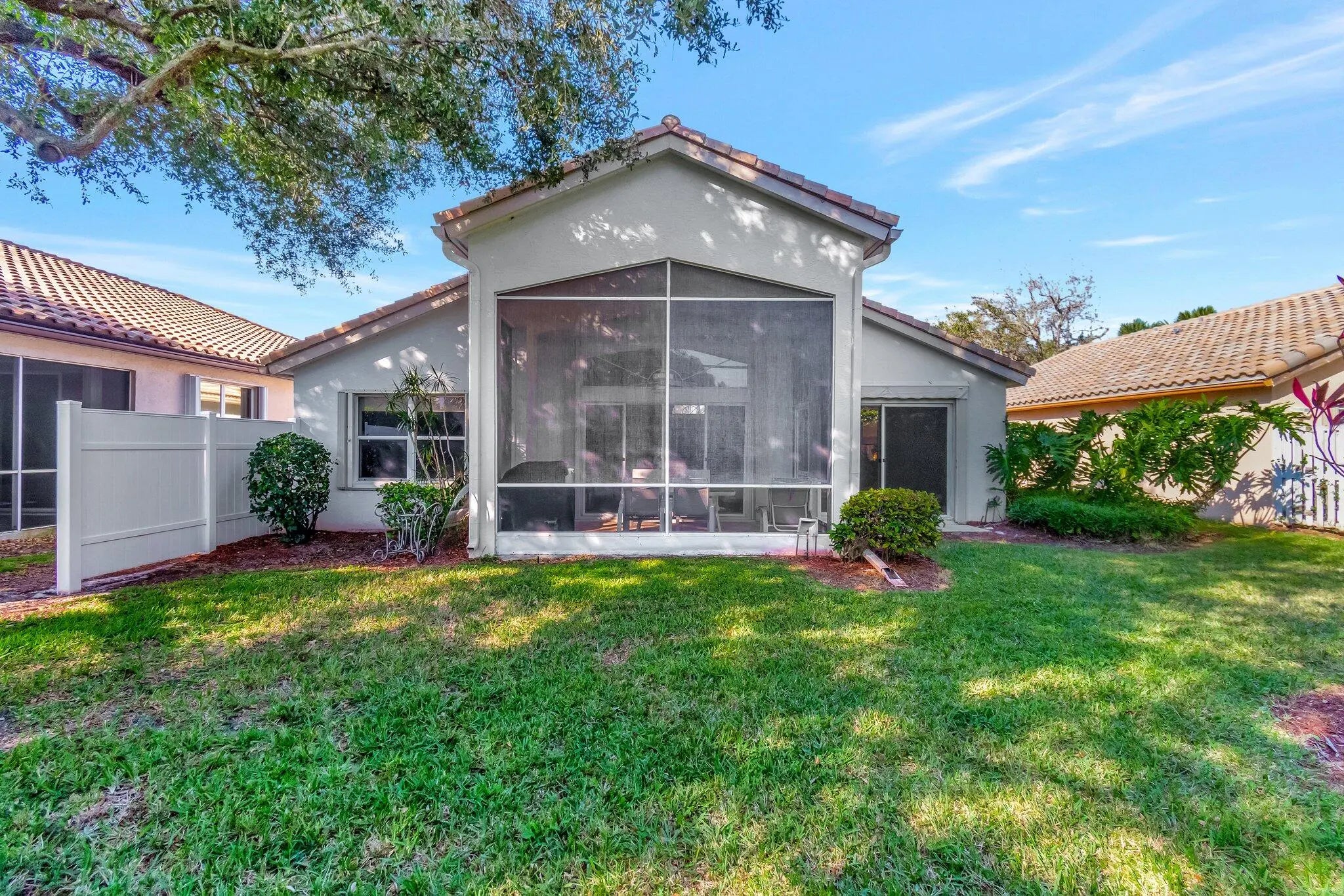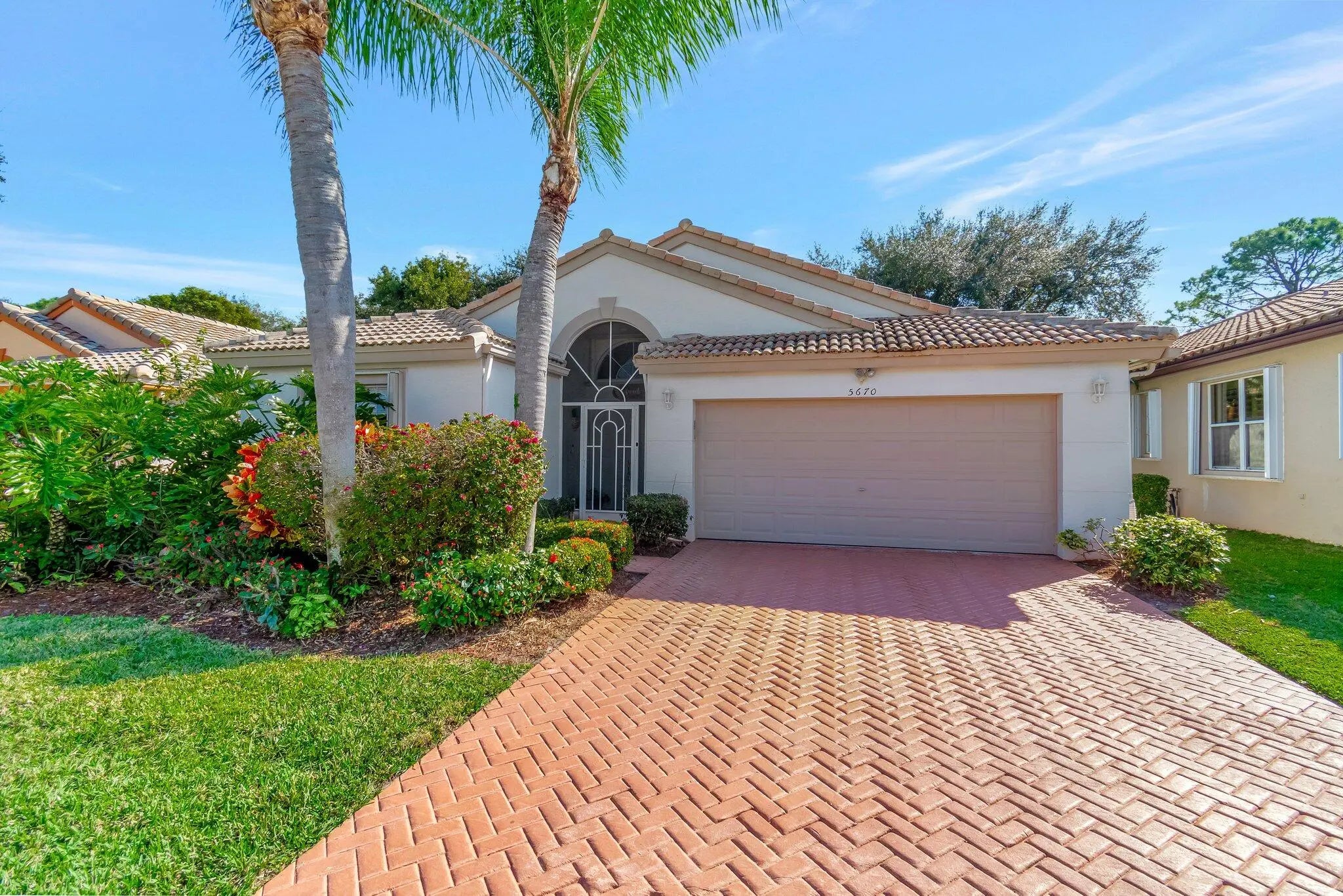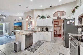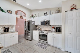 MAJESTIC ISLES--SUPER ACTIVE ADULT COMMUNITY. Behold the grace and finesse at 5670 Swaying Palm Lane, located in captivating Boynton Beach, FL. This property demonstrates excellent architectural design with high ceilings, a marvel in beauty and function. This attribute enhances natural light inflow, creating a well-lit and cheerful ambiance throughout the dining room, living room, and kitchen. The heart of this home is the open-concept kitchen, a true gem. Granite countertops and a tasteful backsplash set a high standard in aesthetics and durability. The kitchen gleams with stainless steel appliances that cater to all your culinary needs, making it an epicurean's delight. This space flows into a comfortable family room, providing seamless social opportunities. Convenient access to the patio from the kitchen and family room enhances this home's outdoor relationships, making it ideal for entertaining or simple relaxation. The admirable luxury of porcelain flooring adorns the master bedroom and adjoined bathroom, the now dubbed' Bedroom Number 2', and its respective bathroom. This variation from the rest of the home, which carries visually pleasing tiles, offers an interesting thematic transition. An aura of relaxation bathes the master bedroom, complimented by freshly painted interiors. Storage needs are well handled with one spacious walk-in closet and an additional smaller one. The en-suite bathroom boasts a step-down shower and two distinct vanities, providing practical functionality. Added features such as a comfortably sized window, a separate enclosed bathroom area with a pocket door, and a distinct linen closet openly display attention to detail in the design. Covered screened patio access from the living room is a thoughtful addition, while the uncovered patio directly accessible from the family room offers diverse outdoor interactions. A separate laundry room equipped with full-size washer/dryer accommodations, high ceilings, and a utilitarian slop sink completes the functionality of this property. Experience comfort, convenience, and aesthetic pleasure at every turn in this Boynton Beach gem. You can enjoy all the amenities of the gated Majestic Isles, including a fabulous clubhouse with a fitness studio, social spaces, a theater, pool, spa, tennis, and pickleball courts. The property is within walking distance of places of worship.