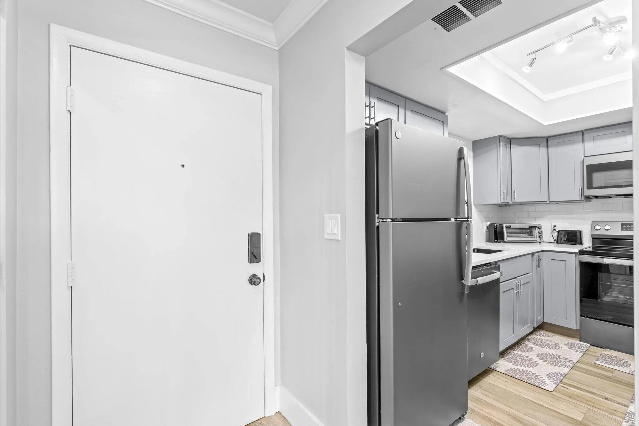This exclusive residence presents a rare opportunity within a boutique 24-unit building. The all-ages community offers convenient amenities, including an elevator, private pool, and assigned parking. The unit features hurricane accordion shutters and impact windows for peace of mind, along with a screened-in patio showcasing captivating Intracoastal waterway views. Generously sized and thoughtfully updated, the residence offers abundant storage and an open layout. Recent improvements include an updated kitchen, new flooring, modern lighting, an upgraded electrical panel, and a new water heater, enhancing both style and functionality. The building has also completed major milestone inspections and upgrades, including a new plumbing, ensuring compliance with current standards. The concrete restoration was completed in August 2020. A silicon sealant was applied to roof in July 2022. Ideally located just minutes from shopping and dining, and only a 5-minute drive to the beach, this home delivers exceptional value, comfort, and coastal lifestyle appeal. All information provided by the broker and its representatives, including but not limited to pricing, square footage, calculations, and statistics, is deemed reliable but not guaranteed and is subject to errors, omissions, or changes without notice. Buyers and their representatives must independently verify all details.