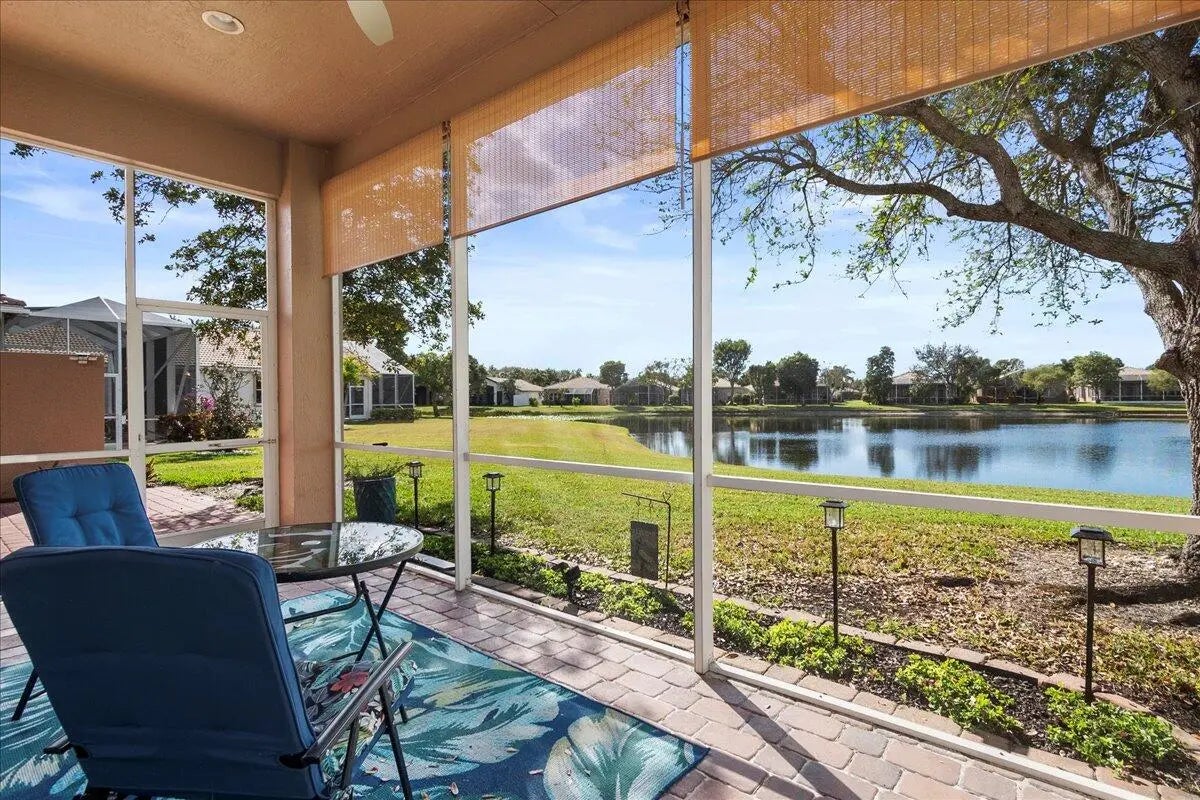 Welcome to an exceptional one-story single-family home nestled on a quiet cul-de-sac in the highly sought-after, gated 55+ community of Villaggio in the Villages of Windsor in Lake Worth, Florida. This lovely Capri model showcases a magnificent lake view and offers a seamless blend of comfort, style, and resort-inspired living. The thoughtfully designed floor plan includes a 3rd bedroom configured as an office (no closet), ideal for working from home or pursuing personal interests. Inside, you will find custom valances and window treatments, upgraded kitchen cabinetry complemented by elegant quartz countertops, and ceiling fans throughout the home. Tile flooring enhances the main living areas, while laminate wood flooring adds warmth to the bedrooms. Custom closets provide great storage and accordion shutters provide effortless, full-home hurricane protection with the convenience of quick, secure closure and peace of mind during storm season. The spa-like primary bathroom is a true retreat, featuring dual sinks and a stunning free-standing tub. Modern upgrades include a brand-new refrigerator in 2025, a newer air-conditioning system, and a tankless water heater for instant hot water. The exterior of the home was freshly painted in December 2025, with the painting assessment already paid. Residents of Villaggio enjoy an unparalleled lifestyle with two expansive clubhouses offering indoor and outdoor cafés, resort-style indoor and outdoor pools, billiards, racquetball, tennis, bocce, pickleball, saunas, steam rooms, a beauty salon, and an impressive fitness center. Creative pursuits are welcomed in the large crafts room with ceramics and more, while card rooms and a vibrant social calendar with an on-site social director complete the experience. The community also features on-site management and a 24-hour manned security gate for peace of mind. A capital contribution is required at closing. Call now to schedule your private showing!