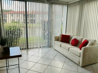 Fantastic opportunity to live in Boca in this spacious 2/2 in a golf course community with no mandatory membership. Huge master suite with 4 large closets. No carpets--all tile. End unit with a private patio. Water view! Patio has been enclosed for a den/office. Eat in kitchen. Separate outdoor storage closet. Nice neighbors. This is a great home that you don't want to miss!!