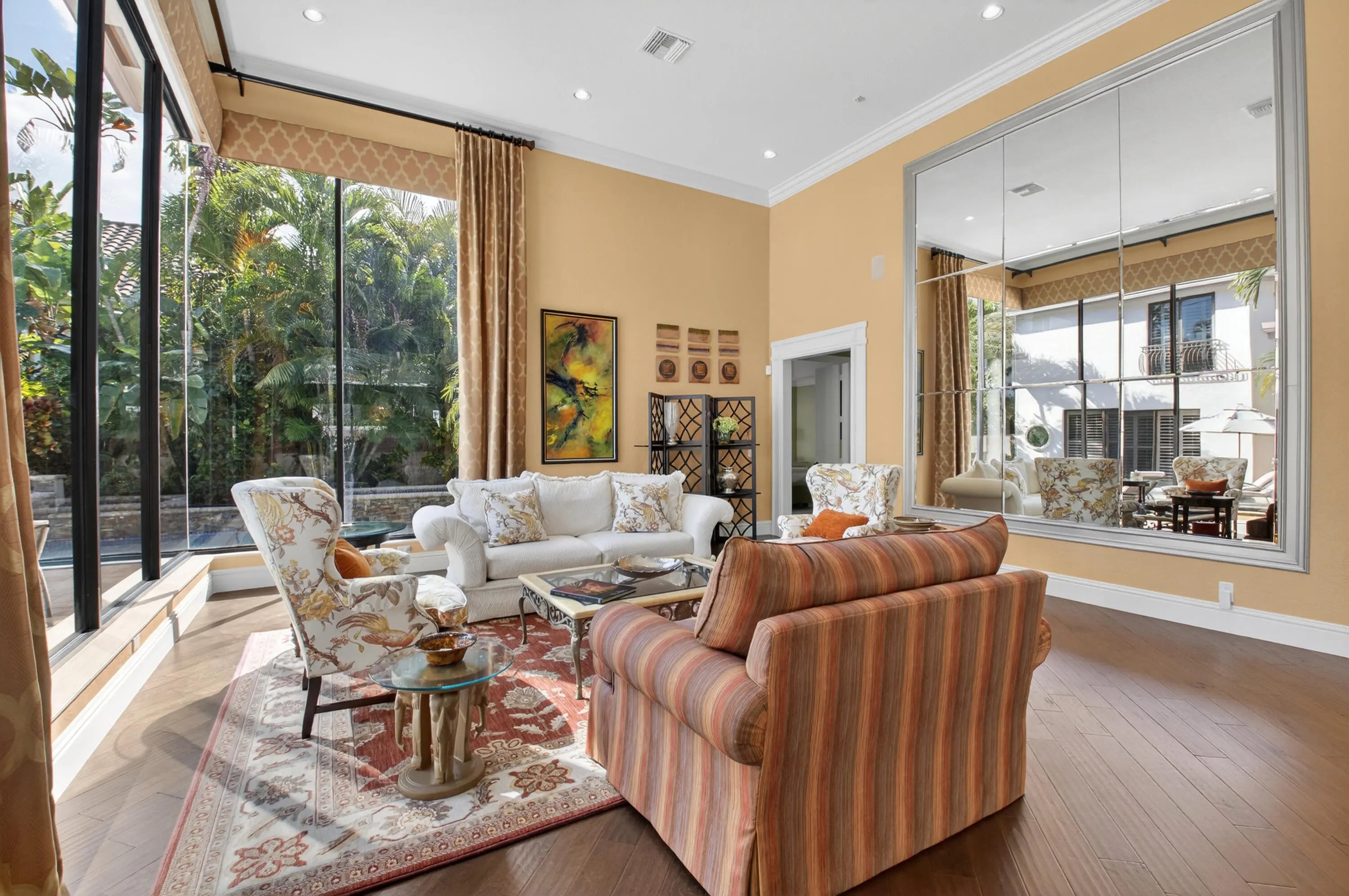 FABULOUS CUSTOM DESIGNED COURTYARD HOME. ONE STORY MAIN HOUSE WITH A 2 STORY, 2BDRM + 2 BTH,+LIVINGRM + KITCHENETTE GUESTHOUSE & 3 CAR GARAGE ON A BEAUTIFUL 1/2 ACRE LOT. THE MAIN HOUSE WITH IT'S 3 BEDRMS, 3 BATHS, OPEN FL PLAN, OVERSIZED ROOMS, STUNNING WOOD FLOORS, FLOOR TO CEILING WINDOWS, OPEN KITCHEN, LGE FAMILY RM, FORMAL DINING RM ALL OVERLOOKING A HUGH COURTYARD THAT IS TRULY A PRIVATE TROPICAL PARADISE WITH HEATED POOL, WATERFALL AND SPA. THIS HOME WITH IT'S INCREDIBLE ATTENTION TO DETAIL IS A MUST SEE! BUYERS MUST PURCHASE A BROKEN SOUND COUNTRY CLUB EQUITY MEMBERSHIP AT TIME OF CLOSING.