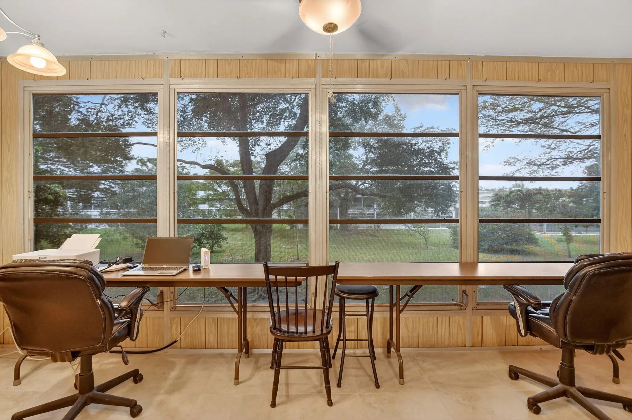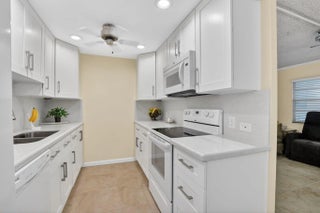 Conveniently located just steps from the elevator and featuring one of the best parking spots in the building--assigned out front with only one adjacent parking space and none on the opposite side for added ease and accessibility--this beautifully updated and meticulously cared for 2nd-floor unit is located in the desirable 55+ active adult community of Century Village East. With major renovations completed in 2019, this home features a beautifully updated kitchen with quartz countertops, full quartz backsplash, white shaker cabinetry, and high-hat lighting. A fully renovated half bath adds extra convenience. The electrical panel was also upgraded in 2019, and the unit includes multiple accessible features, including additional grab bars. Tile flooring runs throughout the main living areas (no carpet), while the master bedroom features updated vinyl flooring. Enjoy peaceful garden views from the enclosed lanai, creating a bright and welcoming atmosphere. This unit includes a transferable Pride Air Conditioning and Plumbing maintenance contract valid through February 2027 and is located in Newport Q, a building that has recently undergone major renovations. Residents enjoy resort-style amenities, social activities, and the active lifestyle Century Village East is known for. Century Village East is located only 3.3 miles from the beach. The active community features 16 pools, including one indoor pool and another located just steps away from the unit. The community also offers a luxurious and expansive clubhouse with a theater, functioning library, fitness center, competitive billiards, cardrooms, classes, bingo, events, shows, and a café. Outdoor amenities include tennis courts, basketball hoops, shuffleboard, bocce ball, pickleball, and volleyball. A courtesy bus is also available to help residents get around the community. You will never get bored here!