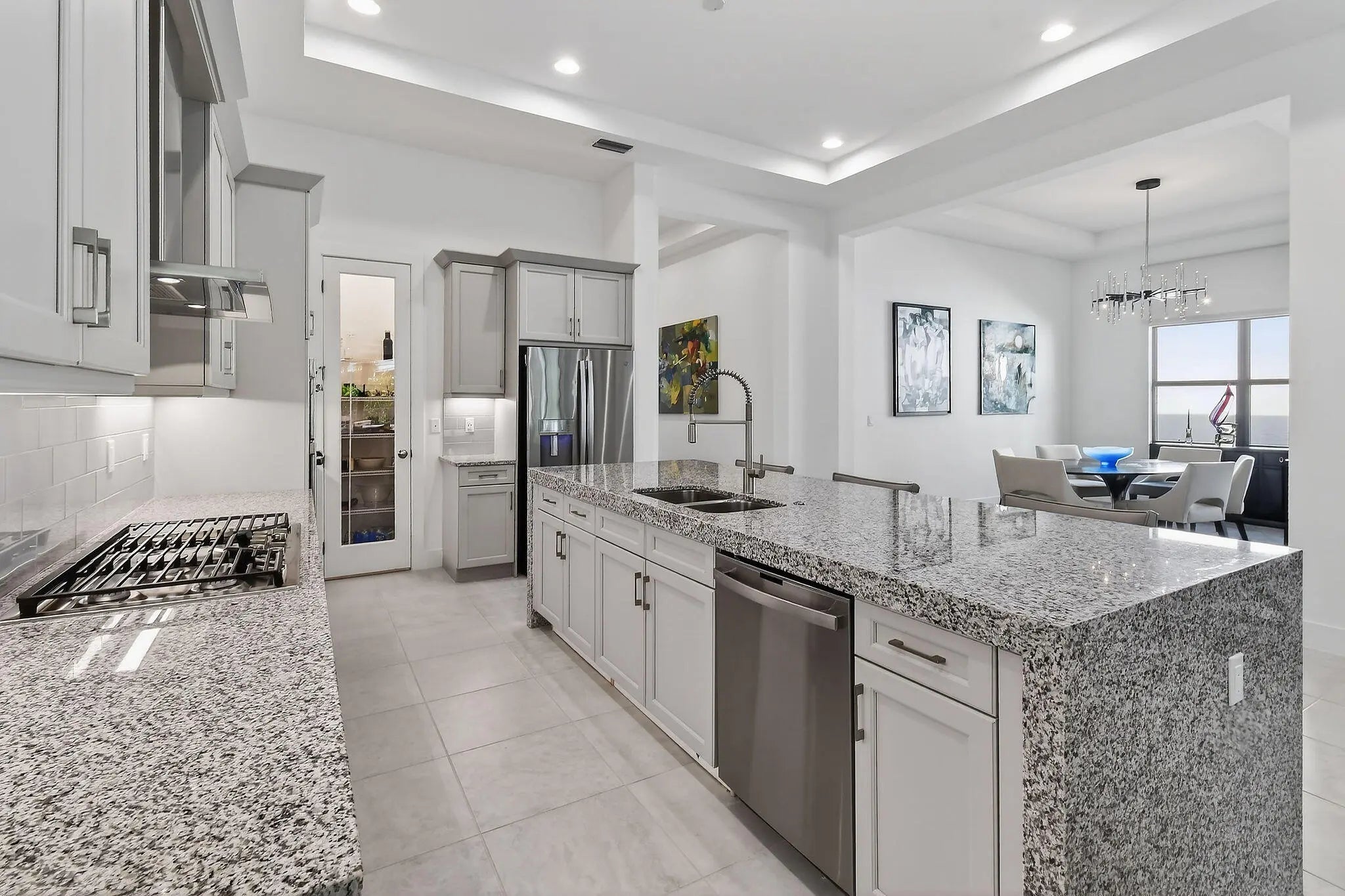 Seize this rare opportunity to own the highly sought-after Degas model—built in 2022, one level and no longer in production. This 2,371 SQ FT gem delivers 4 bedrooms, 3 full baths, soaring 12-ft volume ceilings, abundant natural light, and a seamless open-concept layout perfect for everyday living and entertaining. This home flows seamlessly from the bright, open great room and chef's kitchen—with its oversized island and walk-in pantry—straight out to your private backyard oasis. The expansive covered lanai, sparkling pool and built-in summer kitchen create an ideal setup for family dinners, weekend barbecues, sunset cocktails, or quiet mornings by the water. The home is situated on a private and quiet lot, yet perfectly situated close to everything the area has to offer. HOA includes: front and back lawn care, cable, 24/7 manned gate, lakeside clubhouse, heated resort pool with cabanas, fitness center, basketball/sports courts, playground, trails, and moreno equity membership required. Enjoy low-maintenance living on this prime Palm Beach Gardens location: 1 mile to Alton Town Center (shops, dining, groceries), minutes to pristine beaches, Gardens Mall, top-rated schools, and major highways.
