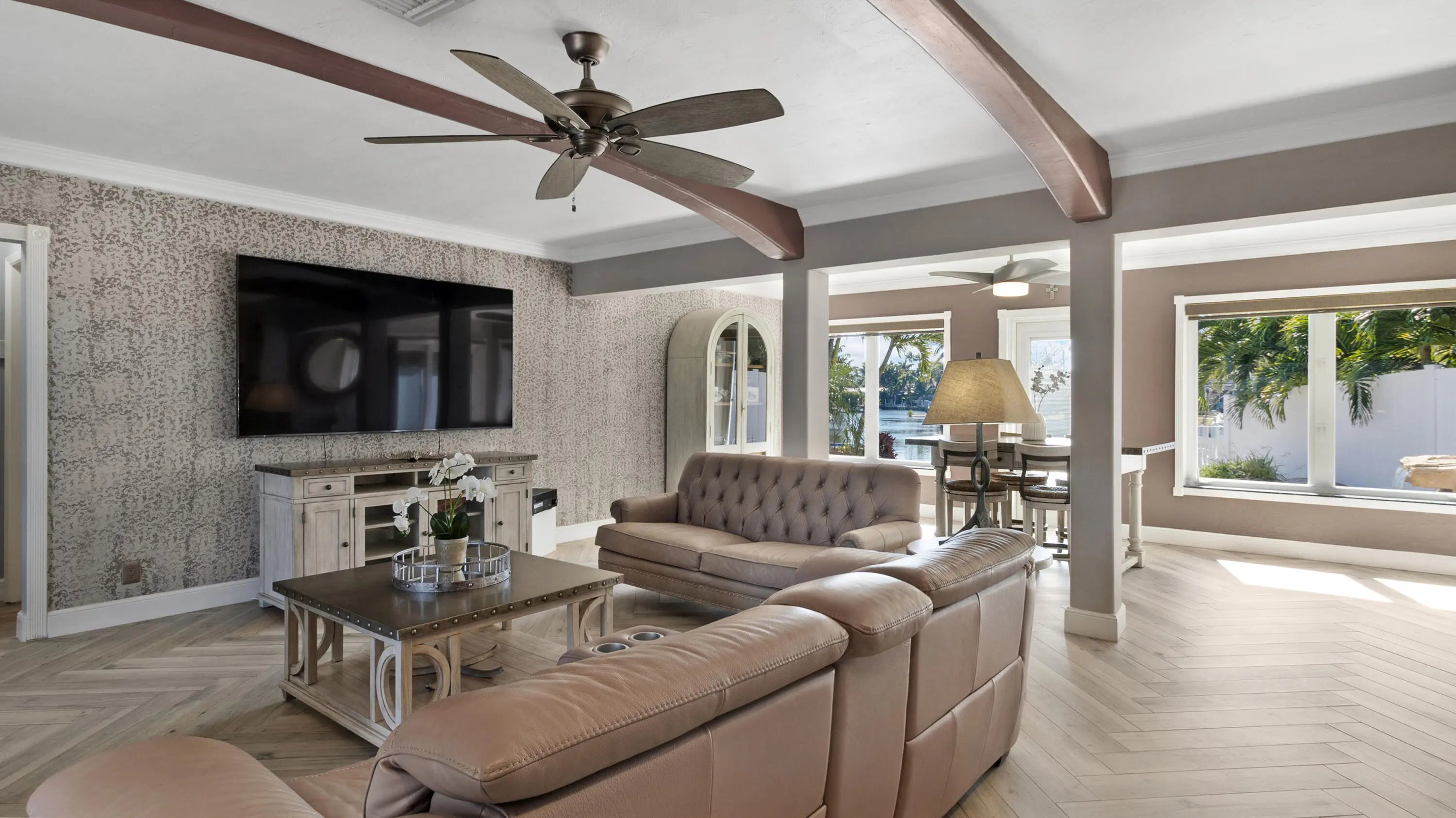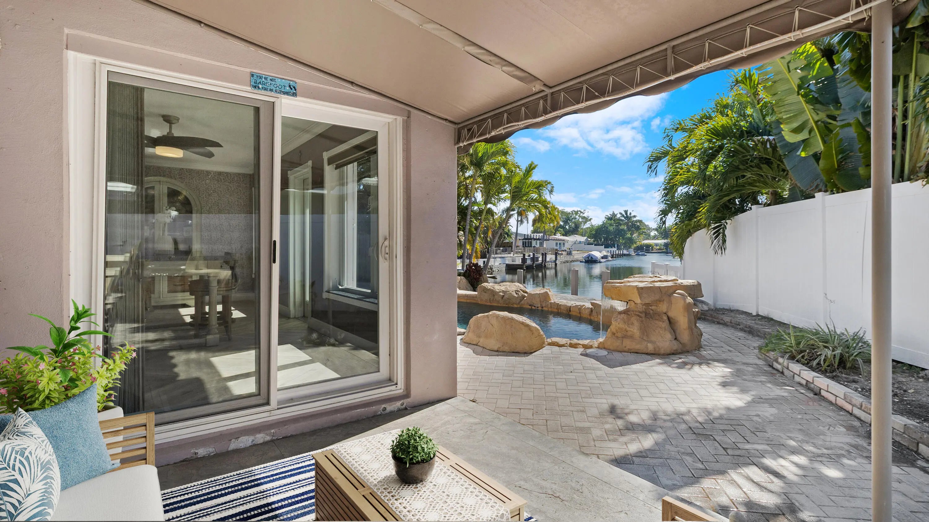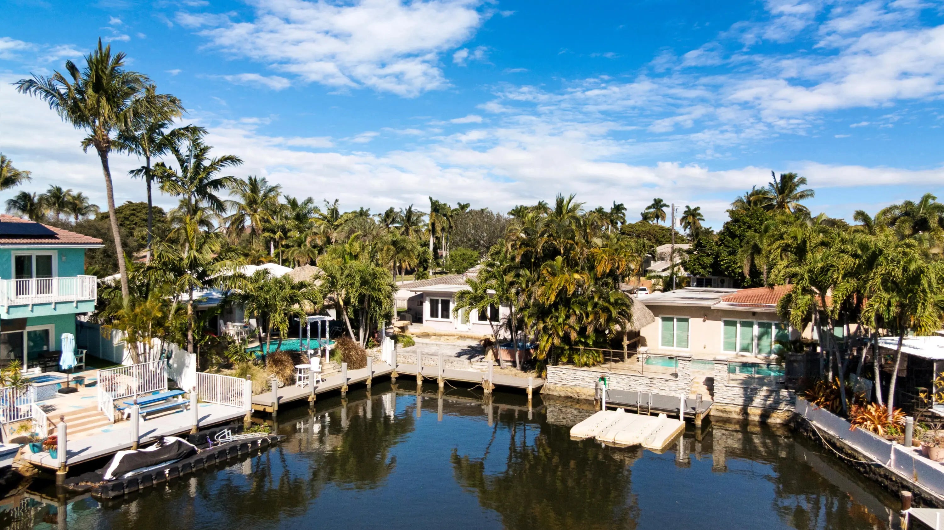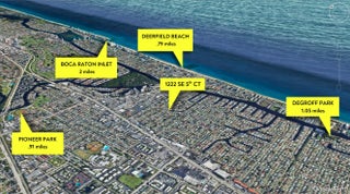 Located in the highly sought-after The Cove neighborhood of Deerfield Beach, this 2-bedroom, 2-bath waterfront home offers ocean access, a NEW private dock, and is less than five minutes from the beach, with NO HOA. Set along the water with two fixed bridges, the property features its own private dock and a tropical backyard designed for relaxed South Florida living. A free-form pool with rock detailing and a waterfall feature creates a resort-style setting. Rinse off in the heated outdoor shower after a day on the water or at the beach. Inside, volume ceilings welcome you into a spacious entry and an open-concept great room designed to maximize light and water views. Modern herringbone-pattern ceramic tile runs throughout the main living space creating a clean, contemporary feel. The primary suite serves as your own private retreat with direct access to the backyard, walk-in closet with custom built-ins, and an open-concept spa-style bathroom featuring a separate walk-in shower, and jacuzzi tub. Additional highlights include a travertine driveway, impact glass and accordion shutters for added protection, and fiber optic recently added to the neighborhood. With close proximity to the beach, ocean access boating, and one of Deerfield Beach's most desirable neighborhoods, this home offers an exceptional opportunity for full-time living, a coastal getaway, or a long-term investment. Deerfield Beach is one of South Florida's fastest-growing coastal communities, known for its award-winning beaches, walkable fishing pier, vibrant dining scene, and strong sense of community. The area offers a relaxed beach-town atmosphere supported by amenities that appeal to both full-time residents and seasonal visitors. With convenient access to major highways, airports, parks, top-rated schools, golf courses, and premier pickleball facilities, Deerfield Beach provides an easy, connected lifestyle. For travelers and commuters, you'll have easy access to US-1, I-95, and the Sawgrass Expressway/Turnpike on ramp via SW 10th St. FLL Int'l Airport is about 25 minutes away, Miami Int'l Airport is 40 minutes away, and Palm Beach Int'l Airport is about 30 minutes away. Whether used as a primary residence, vacation retreat, or long-term investment, the area continues to attract buyers seeking coastal living with everyday functionality.