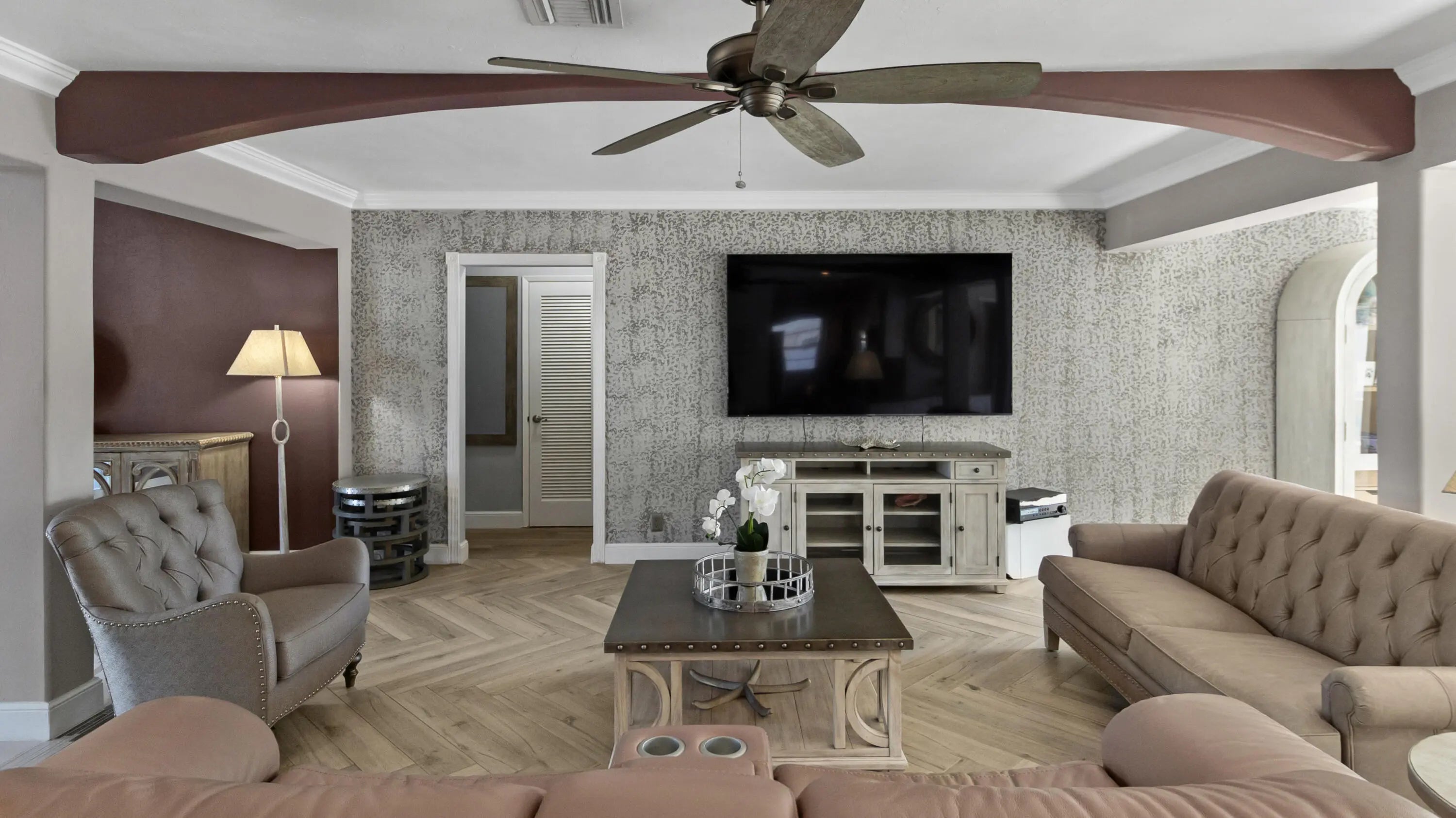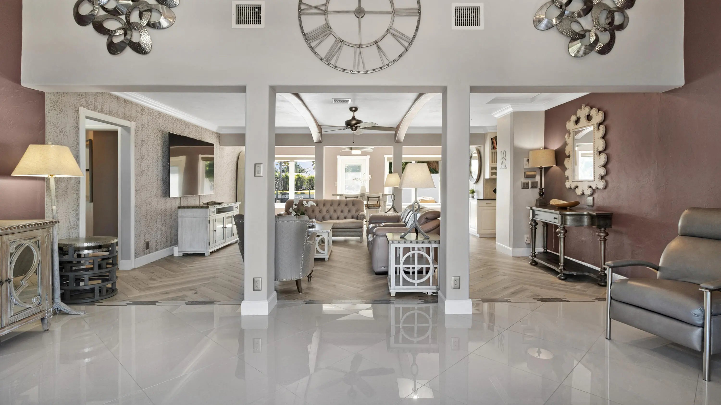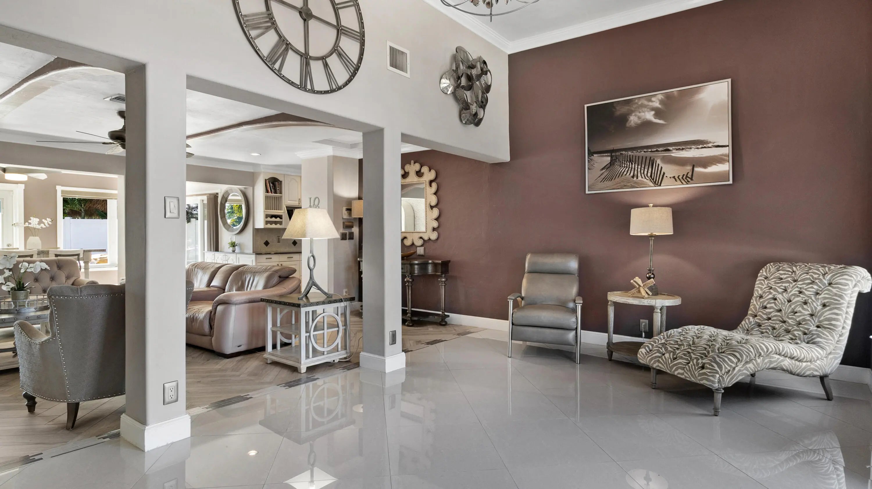 Located in the highly sought-after The Cove neighborhood of Deerfield Beach, this 2-bedroom, 2-bath waterfront home offers ocean access, a NEW private dock, and is less than five minutes from the beach, with NO HOA. Set along the water with two fixed bridges, the property features its own private dock and a tropical backyard designed for relaxed South Florida living. A free-form pool with rock detailing and a waterfall feature creates a resort-style setting. Rinse off in the heated outdoor shower after a day on the water or at the beach. Inside, volume ceilings welcome you into a spacious entry and an open-concept great room designed to maximize light and water views. Modern herringbone-pattern ceramic tile runs throughout the main living space creating a clean, contemporary feel. The primary suite serves as your own private retreat with direct access to the backyard, walk-in closet with custom built-ins, and an open-concept spa-style bathroom featuring a separate walk-in shower, and jacuzzi tub. Additional highlights include a travertine driveway, impact glass and accordion shutters for added protection, and fiber optic recently added to the neighborhood. With close proximity to the beach, ocean access boating, and one of Deerfield Beach's most desirable neighborhoods, this home offers an exceptional opportunity for full-time living, a coastal getaway, or a long-term investment. Deerfield Beach is one of South Florida's fastest-growing coastal communities, known for its award-winning beaches, walkable fishing pier, vibrant dining scene, and strong sense of community. The area offers a relaxed beach-town atmosphere supported by amenities that appeal to both full-time residents and seasonal visitors. With convenient access to major highways, airports, parks, top-rated schools, golf courses, and premier pickleball facilities, Deerfield Beach provides an easy, connected lifestyle. For travelers and commuters, you'll have easy access to US-1, I-95, and the Sawgrass Expressway/Turnpike on ramp via SW 10th St. FLL Int'l Airport is about 25 minutes away, Miami Int'l Airport is 40 minutes away, and Palm Beach Int'l Airport is about 30 minutes away. Whether used as a primary residence, vacation retreat, or long-term investment, the area continues to attract buyers seeking coastal living with everyday functionality.