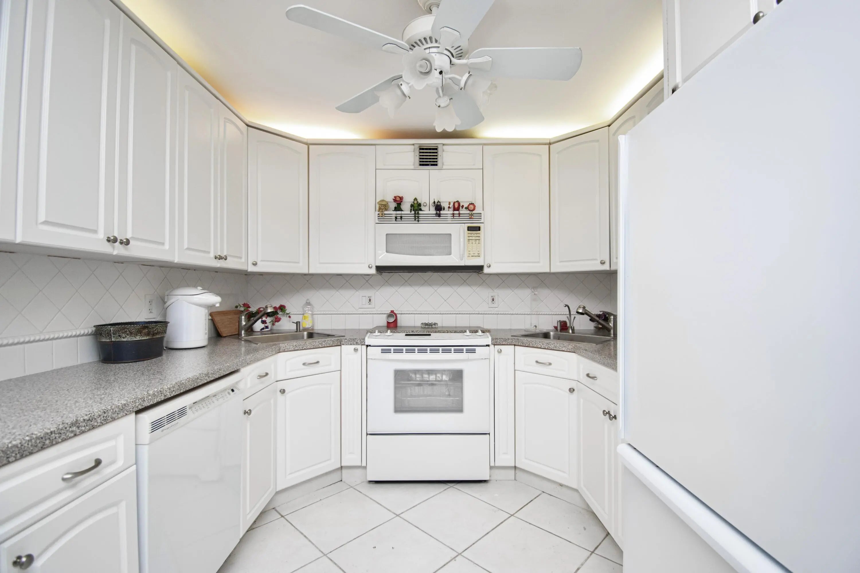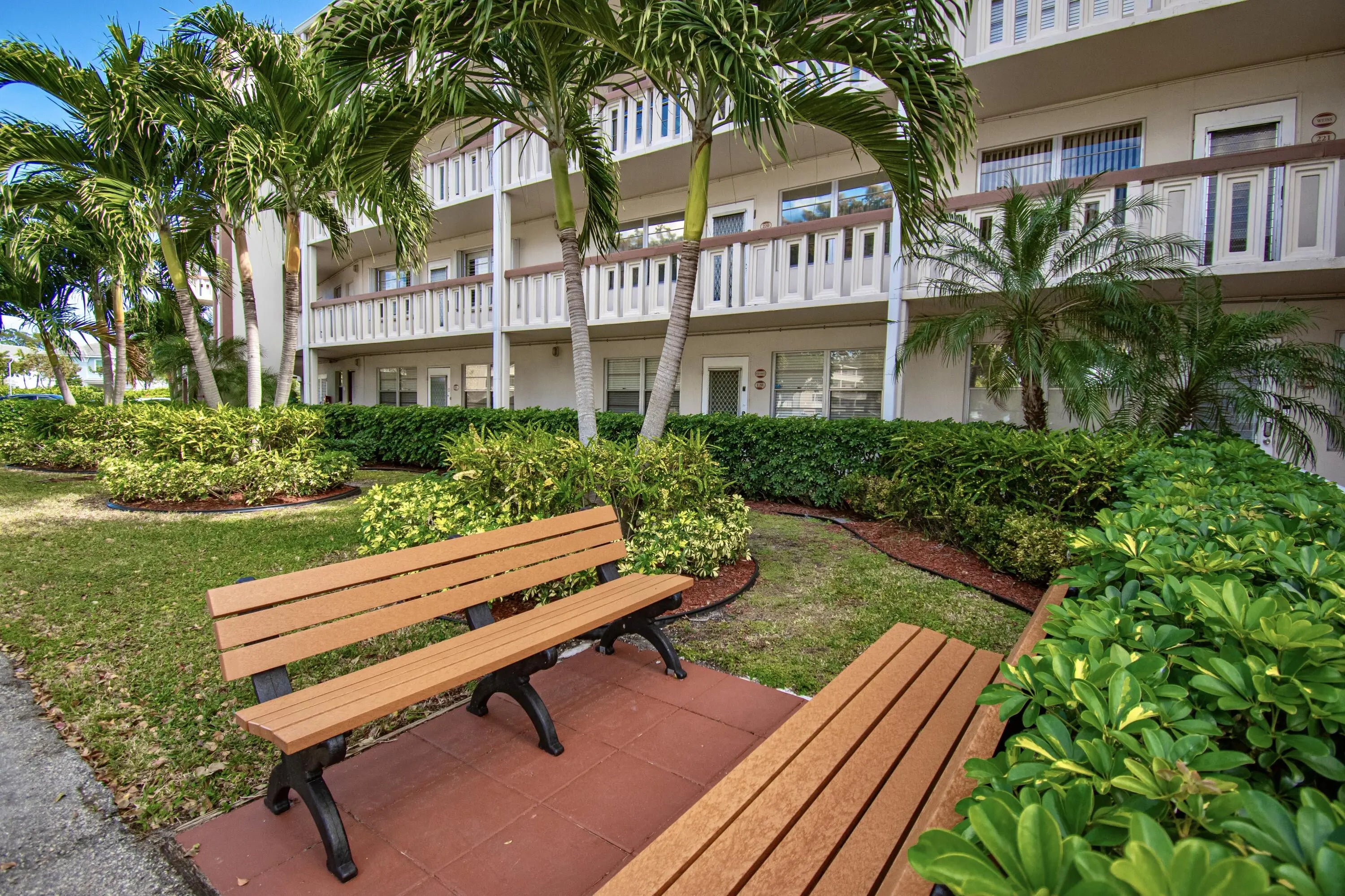 This warm and inviting second floor two bedroom two bath condo is truly move in ready, Offered furnished ,diagonal tile flows seamlessly throughout the entire home, creating a bright clean & polished feel. The kitchen features white cabinetry, two separate sinks, a dishwasher and generous storage.The living room is furnished to perfection, ideal for both relaxing and entertaining! The spacious primary en-suite offers a walk-in closet with additional built-in closet a shower tub combo, the second bedroom was perfectly designed for guests or home office with built-in storage and oversized closet & desk, the second full bath features a walk-in shower, enjoy peaceful mornings and tranquil garden views from your enclosed patio,thoughtful finishes thruout,turnkey !dont wait see today!