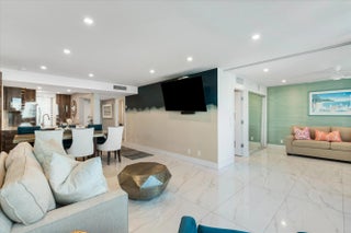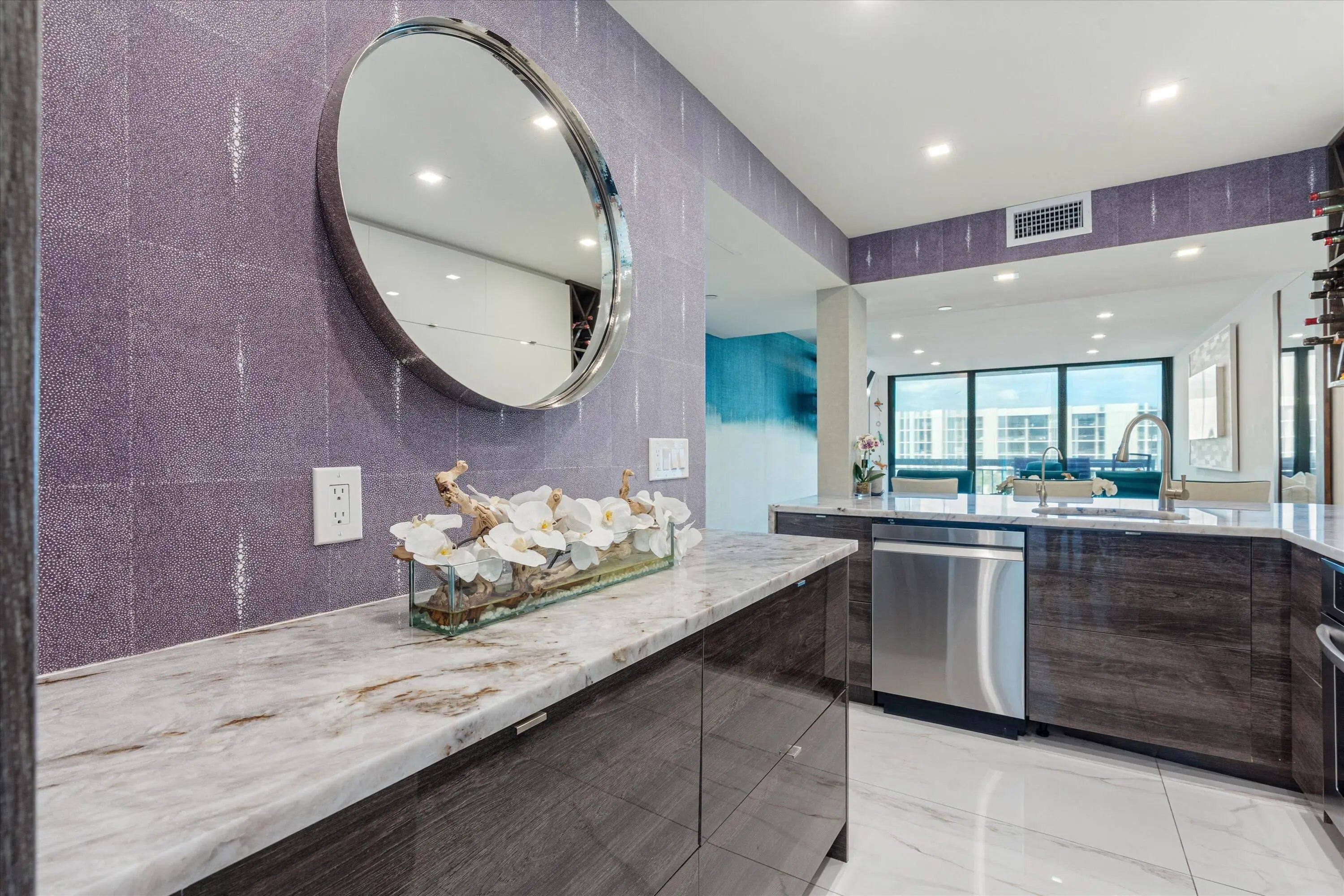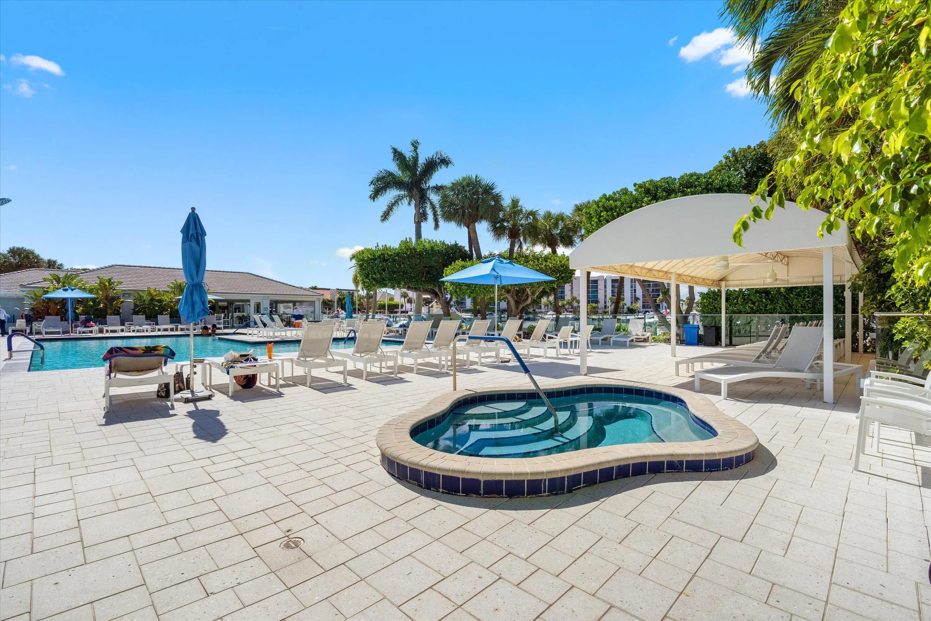 Private beach access! Completely renovated from top to bottom and no detail ignored - designer decorated - unlike any other home in the community. 2 bedroom / 2 bath condo with 1020 a/c sq. ft. Light and airy with ample recessed lighting in all rooms. Views of the marina and Intracoastal. Impact glass throughout. Gorgeous porcelain tile throughout, including balcony. Kitchen is a chef's dream with stainless steel appliances, wine racks, custom designer cabinetry and onyx waterfall counters. The same cabinetry and countertops in both bathrooms, which include floor to ceiling tile and frameless glass. Extra storage in Dining Area. Primary suite with custom entry, designer lighting and an expansive walk-in closet with custom built-ins. Custom sliding doors to 2nd Bedroom. You must see it! The time to buy this unit is now! The Yacht and Racquet Club of Boca Raton is undergoing community wide renovations, including necessary building maintenance, beautifully reimagined clubhouse, top of the line fitness center, and new pickleball and tennis courts. Prices take this into account and will surely adjust once it's all complete. This is a resort style community with its own private beach access just across the street. Members and their guests enjoy a full-service restaurant and bar with panoramic views of the marina and main pool - open 6 days a week - continental breakfast, lunch, happy hour, dinner and the full slate of holiday celebrations - Boating, jet skis and kayaks - slips and storage available - 5 tennis courts - 8 pickleball courts - Tennis and pickleball pro - Clinics, lessons and traveling teams - 3 heated pools - 2 jacuzzis - The recently opened fully renovated club house features a state of the art fitness center with brand new equipment, a dedicated aerobics room and daily exercise classes, in the center, on the beach and by the marina - Art guild - Clubs, entertainment and parties galore. The quintessential South Florida luxury active lifestyle awaits!
