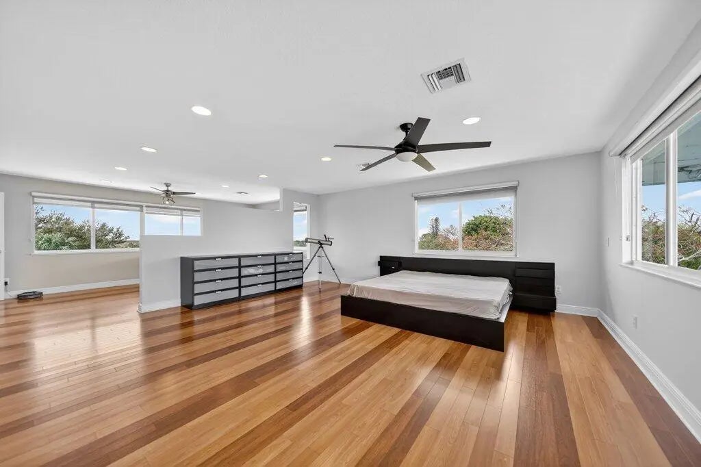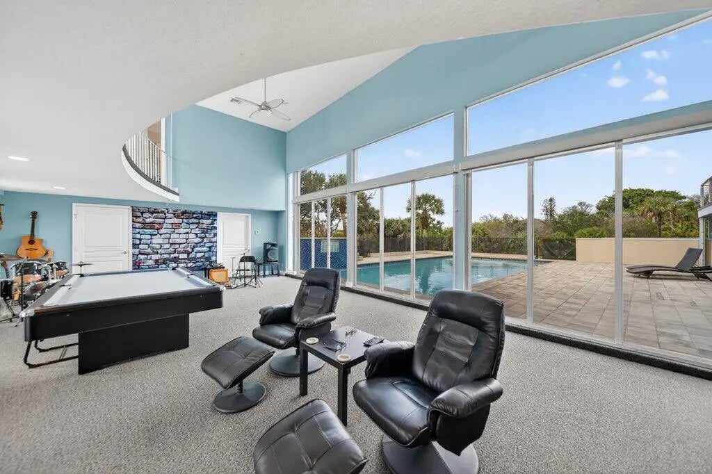 Perched high on peaceful Mockingbird Hill, this exceptional 5-bedroom, 5 full bath estate sits on 1 acre with sweeping Intracoastal water views and a versatile floor plan designed for both comfort and entertaining. The entire top floor is dedicated to a private primary suite retreat. Enjoy a modern kitchen and beautifully updated bathrooms, a cozy fireplace, a 40-foot pool with spa, and a spacious pool house featuring an entertainment room with bar that can also serve as a guest retreat or separate mother-in-law suite. The gorgeous lawn, adjacent to the preserve, creates a peaceful park-like setting with added privacy. An oversized garage, with workshop inside and boat and RV parking outside, adds rare functionality. A true Jensen Beach gem that has it all.