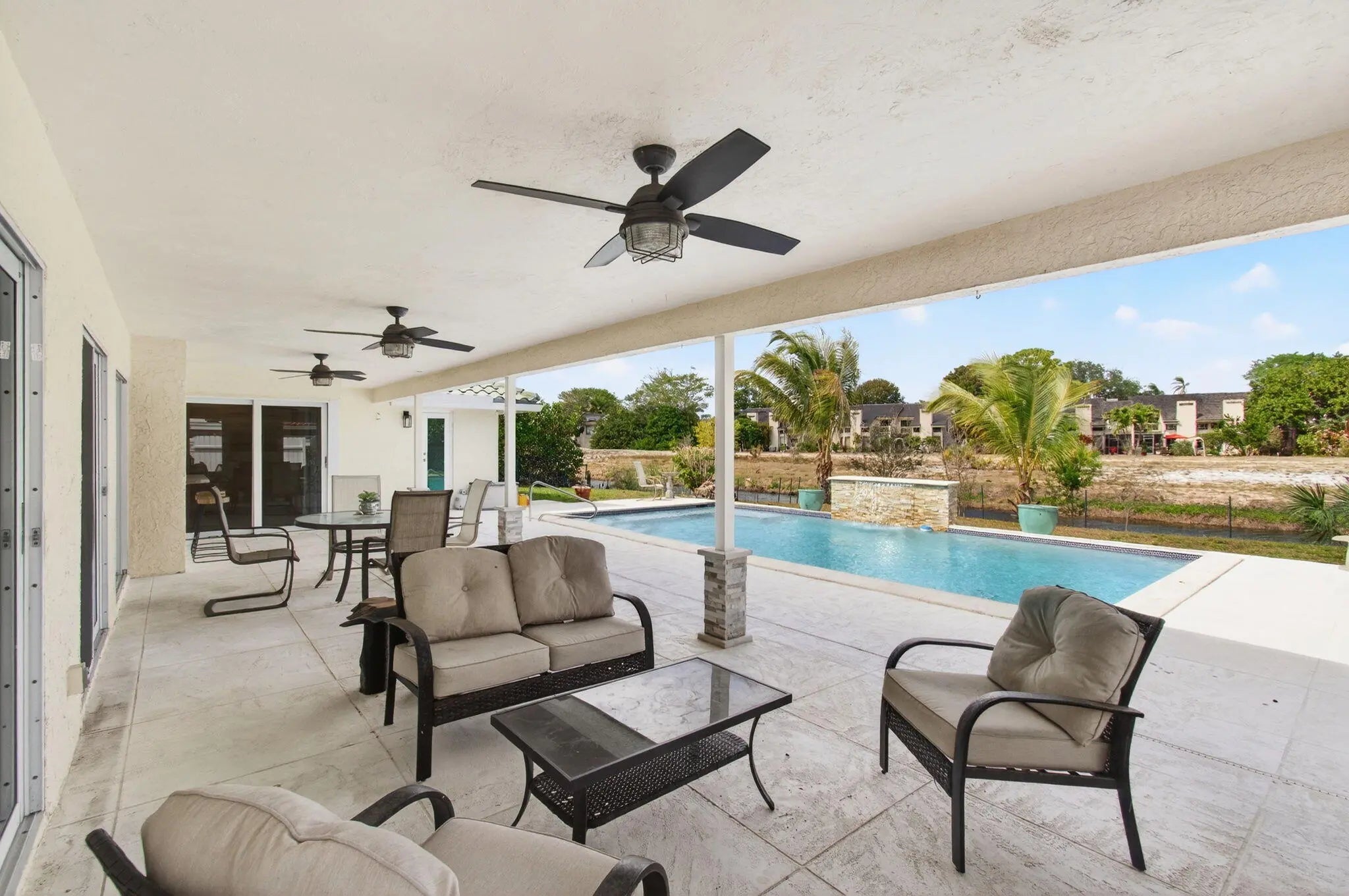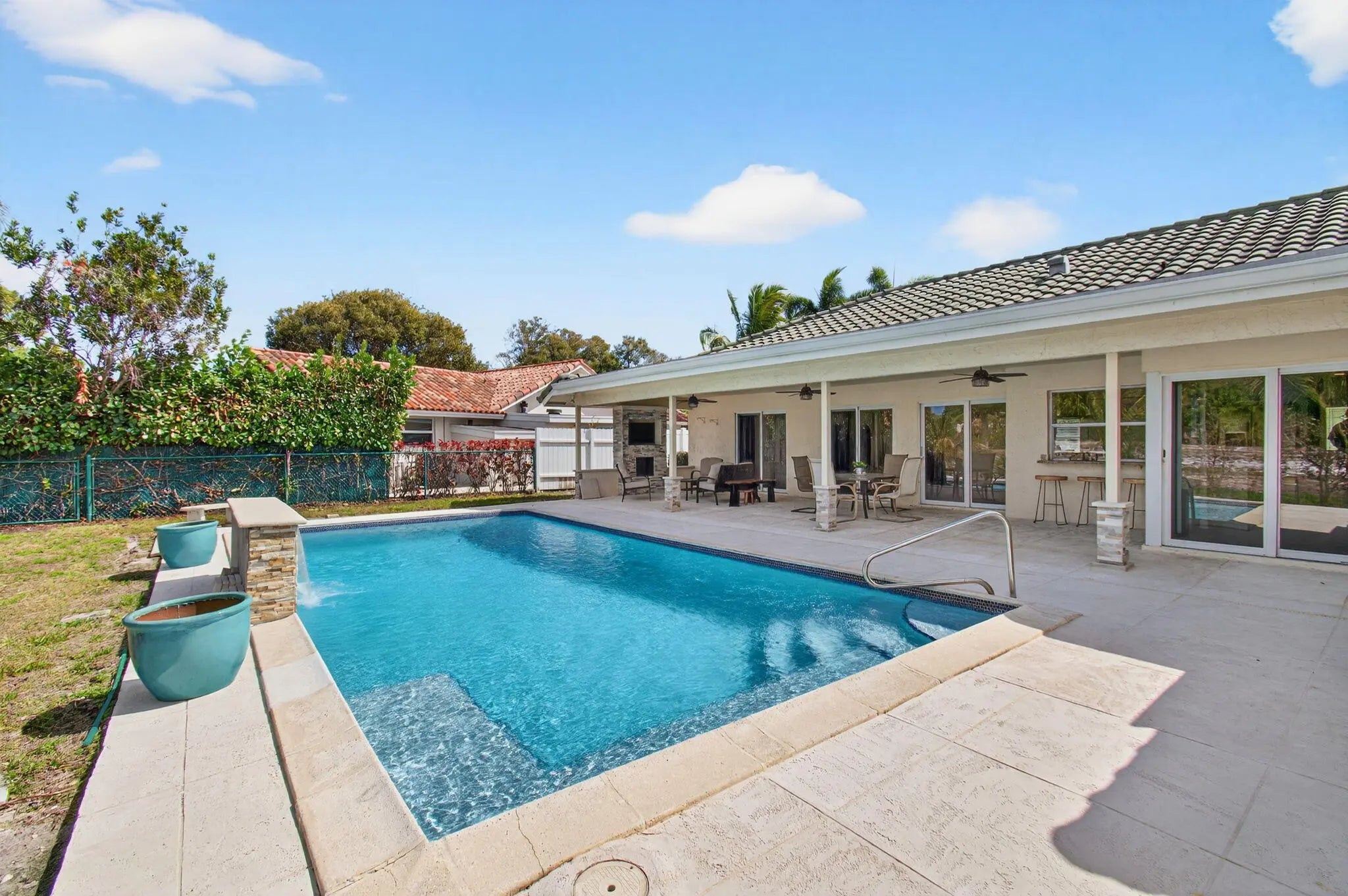 Welcome to your private waterfront in Boca Del Mar Perfectly positioned on a quiet cul-de-sac with tranquil canal views and the ultimate South Florida lifestyle.From the moment you enter, the split-bedroom floor plan offers the ideal balance of openness and privacy, with spacious living areas designed to flow effortlessly to the outdoors. This is a home made for entertaining. Step outside to your own resort-style oasis -- a sparkling pool with cascading waterfall, expansive patio for gatherings, and a stunning gas fireplace with built-in TV that sets the stage for unforgettable evenings under the stars. Whether hosting friends or enjoying a quiet night in, this backyard delivers. Impact windows, doors, and garage door provide peace of mind, while the cabana bath with shower offers Seamless access from the pool . And the location? Simply unbeatable. Walk to The Village Shops, featuring eight restaurants plus bagels, pizza, ice cream, frozen yogurt, salons, a gym, and a dry cleaner -- everything you need just steps away. With wide sidewalks throughout Boca Del Mar, morning walks and bike rides become part of your daily routine. Located near A-rated schools including Verde Elementary School, Boca Raton Community Middle School, and Boca Raton Community High School. This is more than a home -- it's the lifestyle everyone wants and rarely finds. Don't miss the opportunity to make it yours.