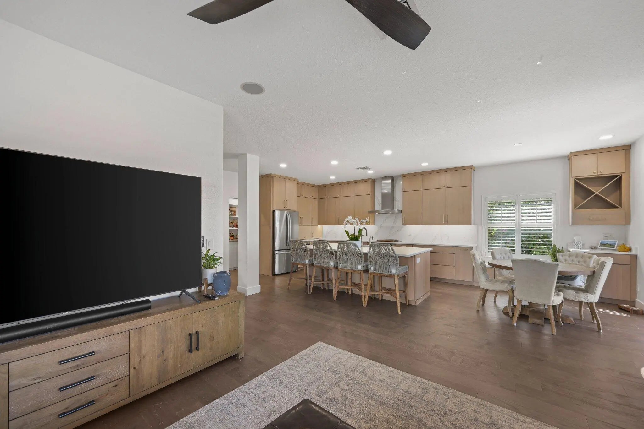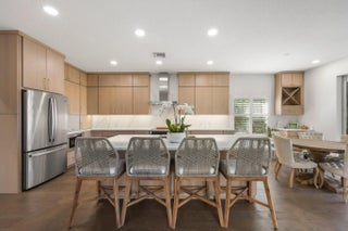Located on a peaceful lakefront setting, this 4 or 5 bedroom home is priced to sell quickly. Interior upgrades include wood floors, custom kitchen cabinetry, quartz countertops and an enlarged butler's pantry complete with a mini refrigerator & coffee station. An optional 5th bedroom / flex room was created on 1st floor, all other bedrooms are on the upper level. Just a short 2 minute walk to Rialto's coveted amenities.