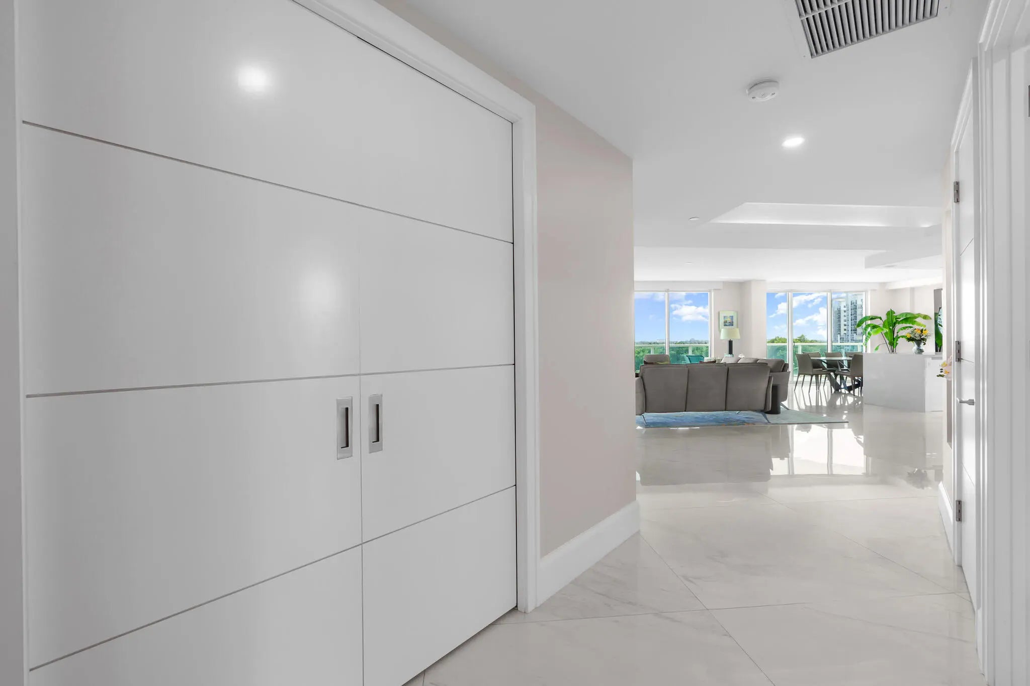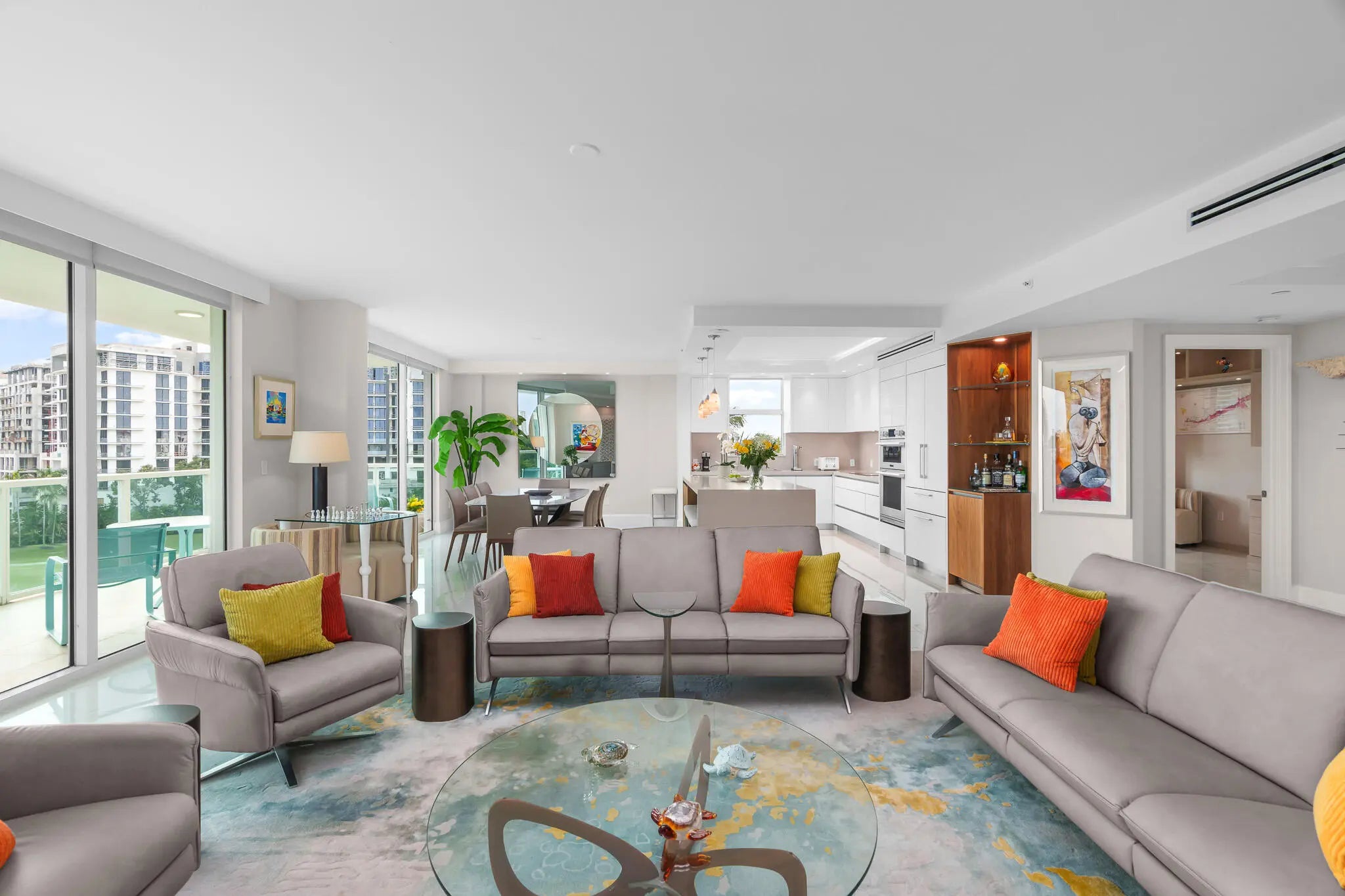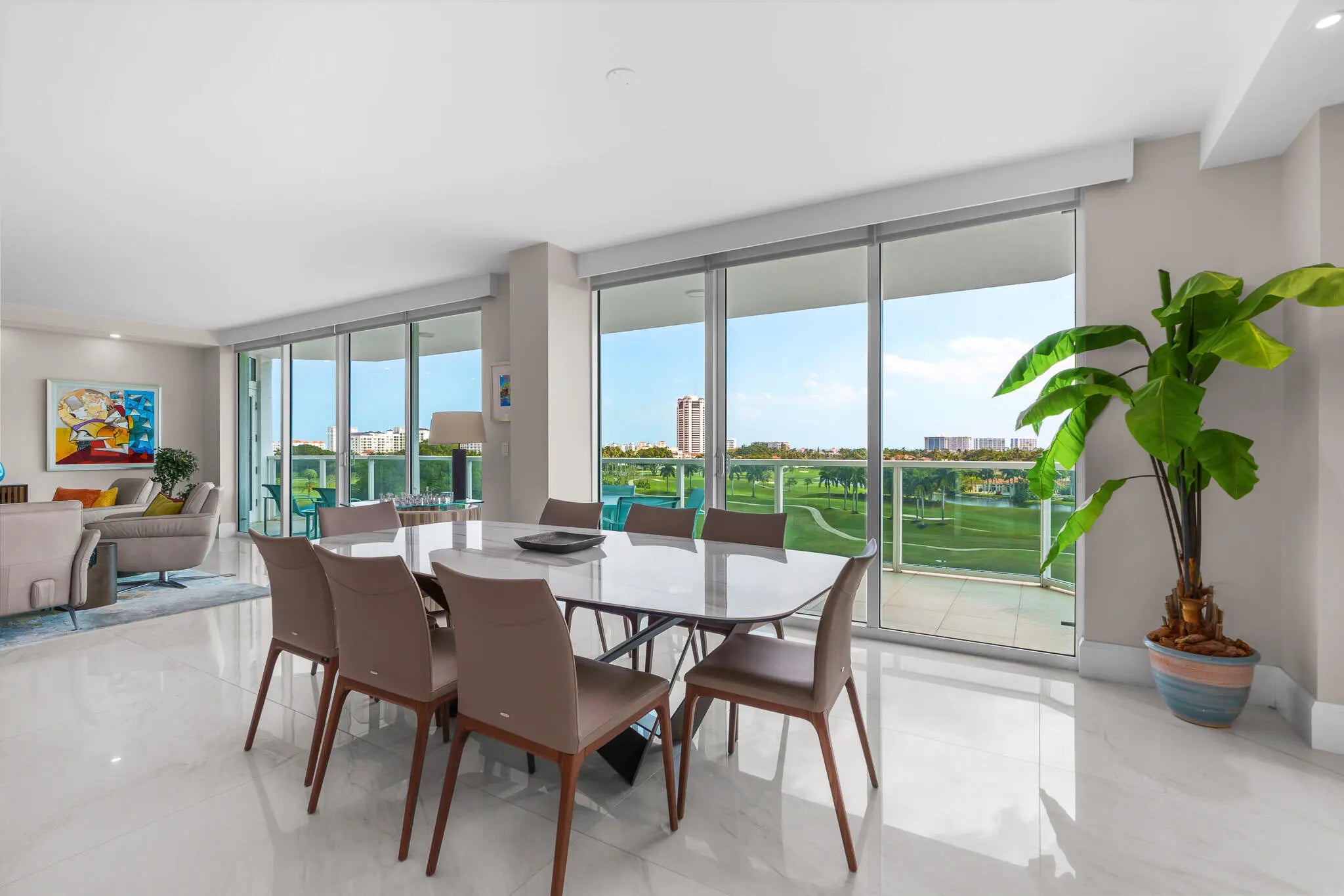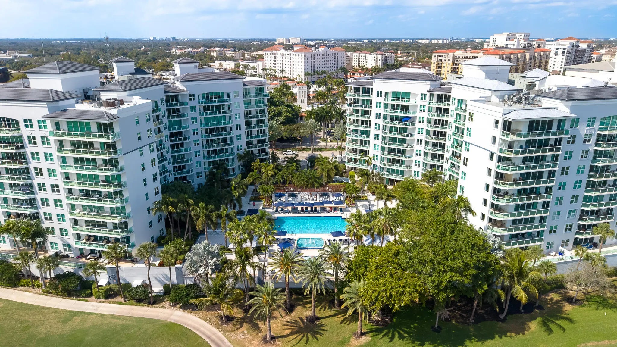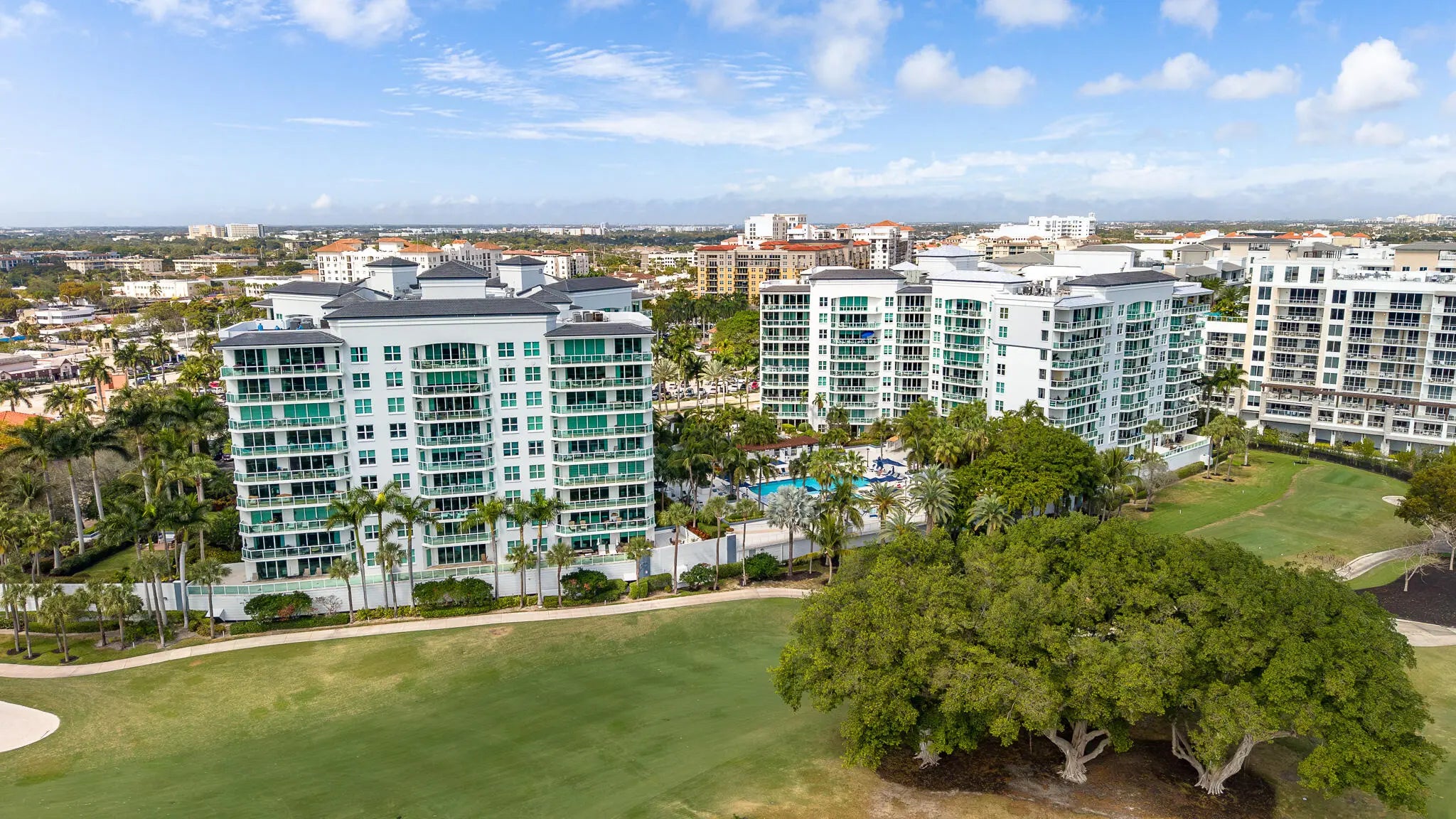 Rarely available 3 bed 3 bath SE corner condo with spectacular panoramic golf views in prestigious Townsend Place. Completely remodeled, this spacious residence features soaring ceilings, floor-to-ceiling impact glass, and an expansive terrace overlooking The Boca Raton golf course with ocean peekaboo views on the horizon. Open-concept layout offers generous living and dining areas, a designer kitchen, and a luxurious primary suite with ample closets. 2 deeded parking spaces and storage unit complete this offering. Enjoy 24-hour gated security, valet, concierge, resort-style saltwater pool, kiddie pool, BBQs, fitness centers, saunas, steam rooms, dog parks, game room, and newly renovated club rooms--just steps to Mizner Park, Royal Palm Plaza, fine dining and the beach.