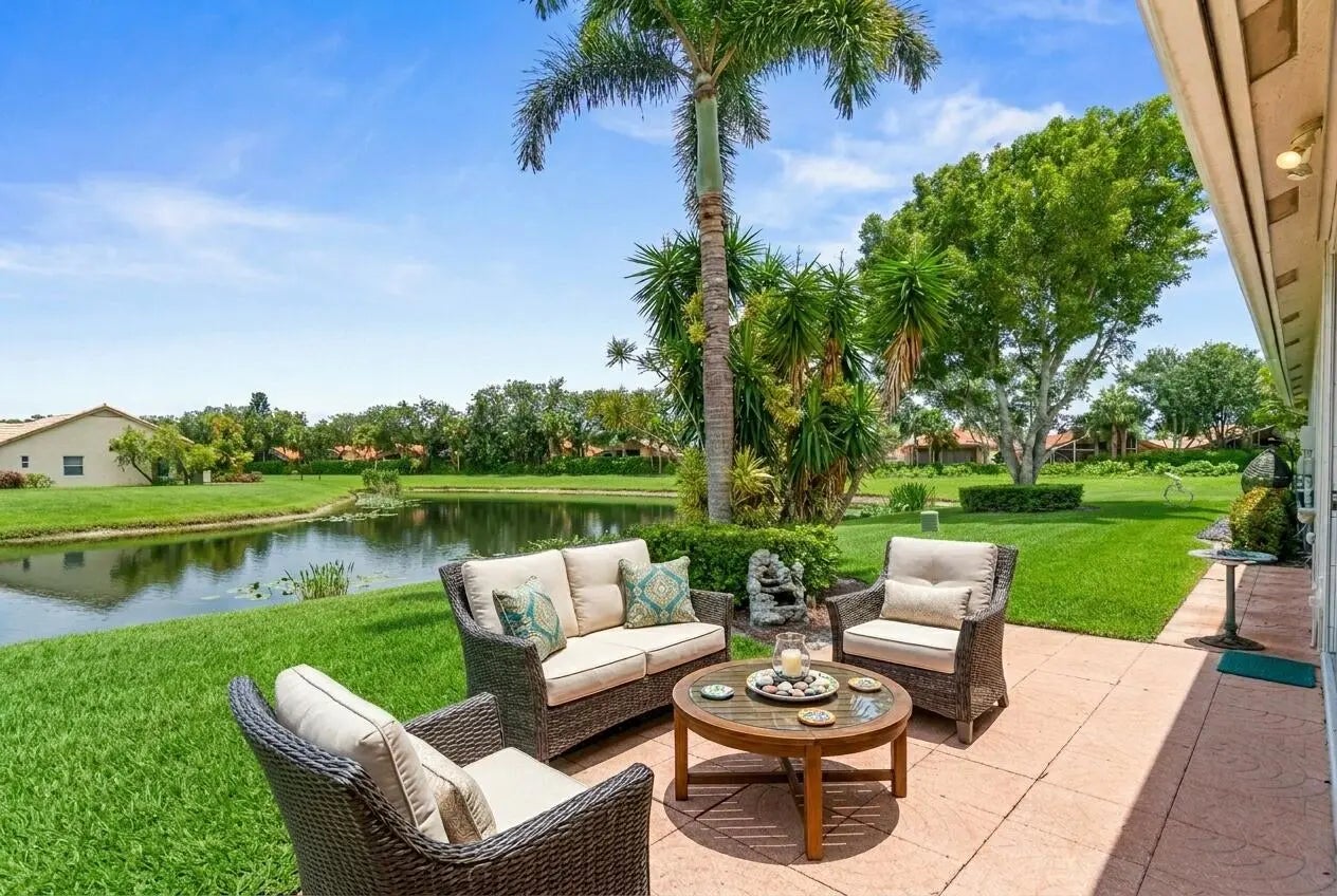 THE LARGEST WATERFRONT FOOTPRINT IN BRITTANY LAKES. Welcome to a residence that redefines villa living within the prestigious Aberdeen Country Club. While standard models in this section offer a traditional layout, this home has been strategically expanded to offer 1,980 SF of under-air living space. By seamlessly integrating the enclosed patio into the home's floor plan, you gain nearly 200 SF of additional climate-controlled comfort--perfect for a sun-drenched morning room or an expansive home office overlooking the water. Situated on a rare, oversized 6,957 SF pie-shaped lot, this property offers a level of privacy and outdoor ''breathing room'' that is simply unavailable on the standard 5,900 SF lots in the area. THE ABERDEEN LIFESTYLE: More than just a home, this is an invitatio to an unrivaled social canvas. Enjoy world-class amenities including: Athletics: High-energy Pickleball, championship Tennis, and pristine Golf. Wellness: A state-of-the-art fitness center with a full calendar of classes. Entertainment: A luxury clubhouse featuring Broadway-caliber shows, fine dining, and a vibrant social scene. UNBEATABLE CONVENIENCE: Located just minutes from the Florida Turnpike, your commute is effortless. You are at the center of everything: Whole Foods, Target, Canyon Town Center, and local favorites like Flakowitz are all right at your fingertips. This is a rare opportunity to secure the most significant floor plan and lot size in the section. Experience the perfect blend of "lock-and-leave" convenience and the spacious feel of a single-family home.