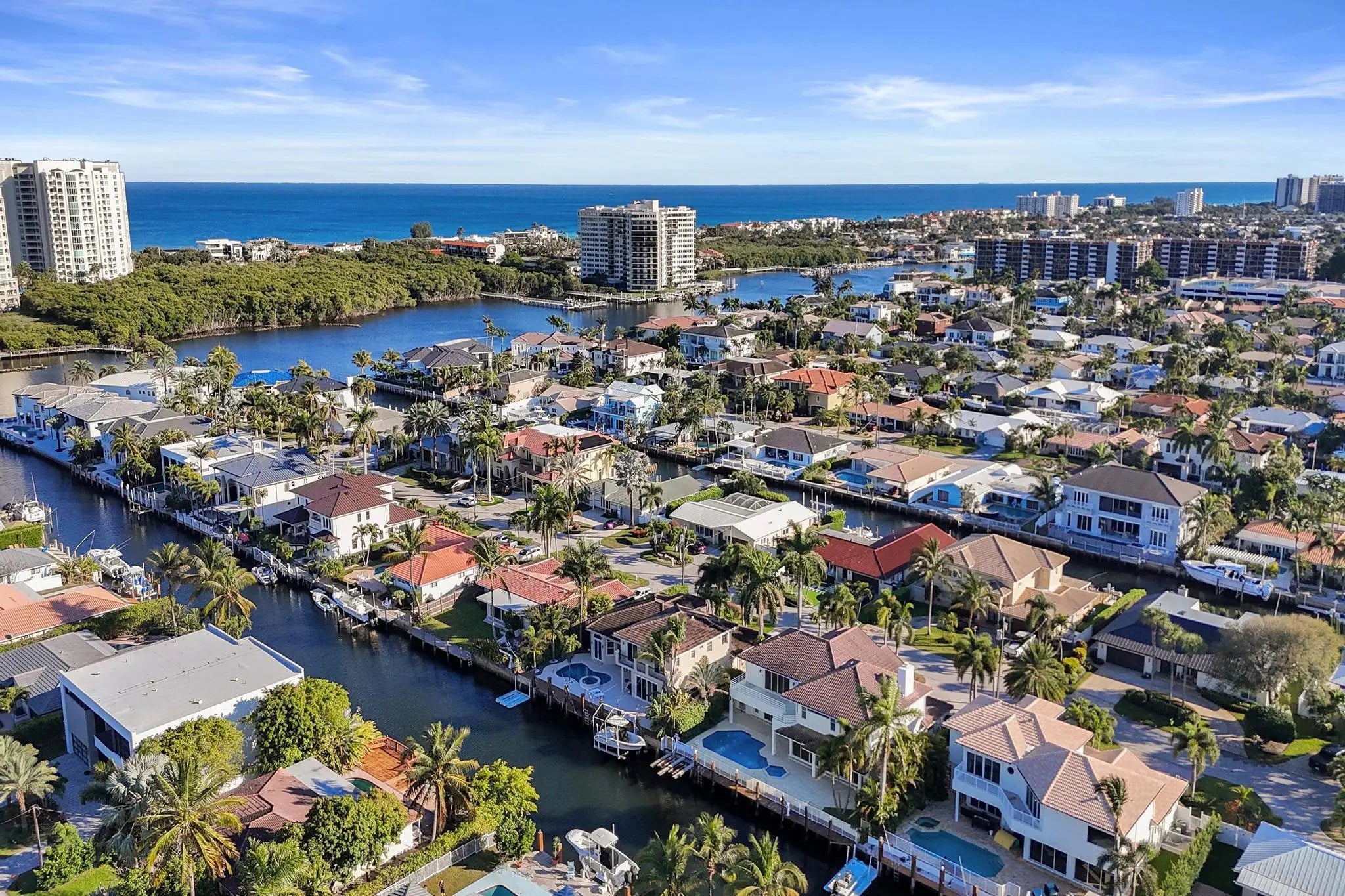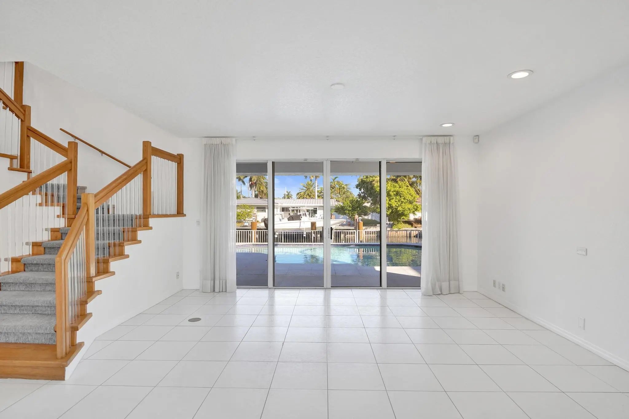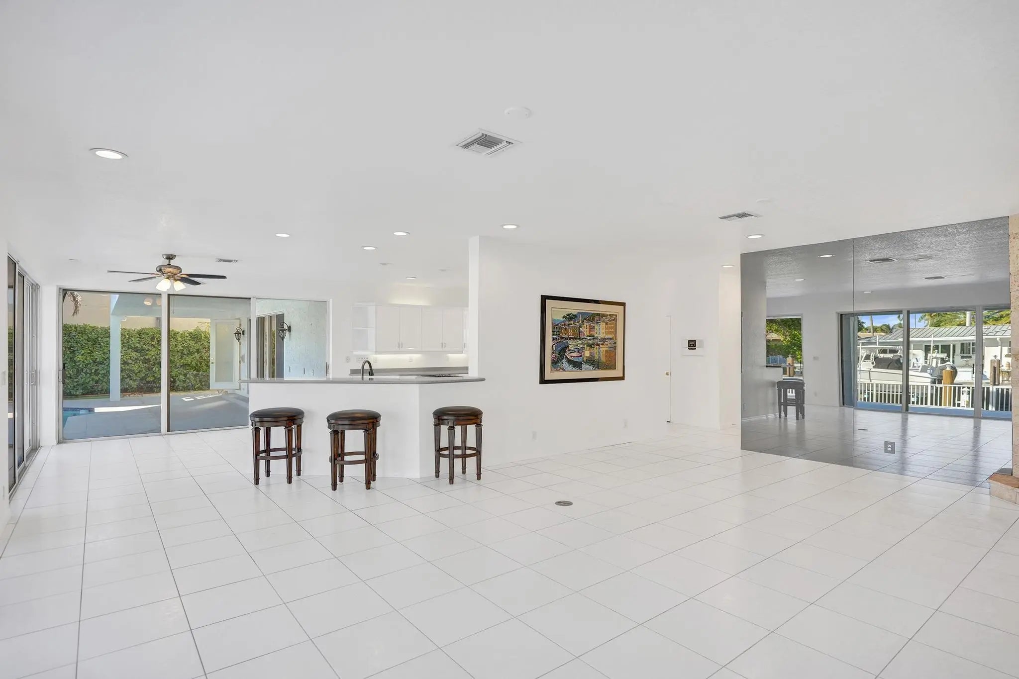 Deepwater Ocean Access Pool Home - No Fixed Bridges Enjoy the ultimate waterfront lifestyle in this deepwater ocean access pool home featuring 85 feet of waterfront frontage and a 50-foot private dock, with no fixed bridges--perfect for boating enthusiasts with larger vessels. This spacious residence offers a large, open, and bright floor plan with over 4,400 square feet under air conditioning. The home includes 5 bedrooms and 5½ bathrooms, providing ample space for family and guests. The huge primary suite features a luxurious primary bathroom and dual walk-in closets, creating a comfortable private retreat. The large kitchen opens to the family room and offers beautiful canal views, making it an ideal space for everyday living and entertaining. Additional highlights includ