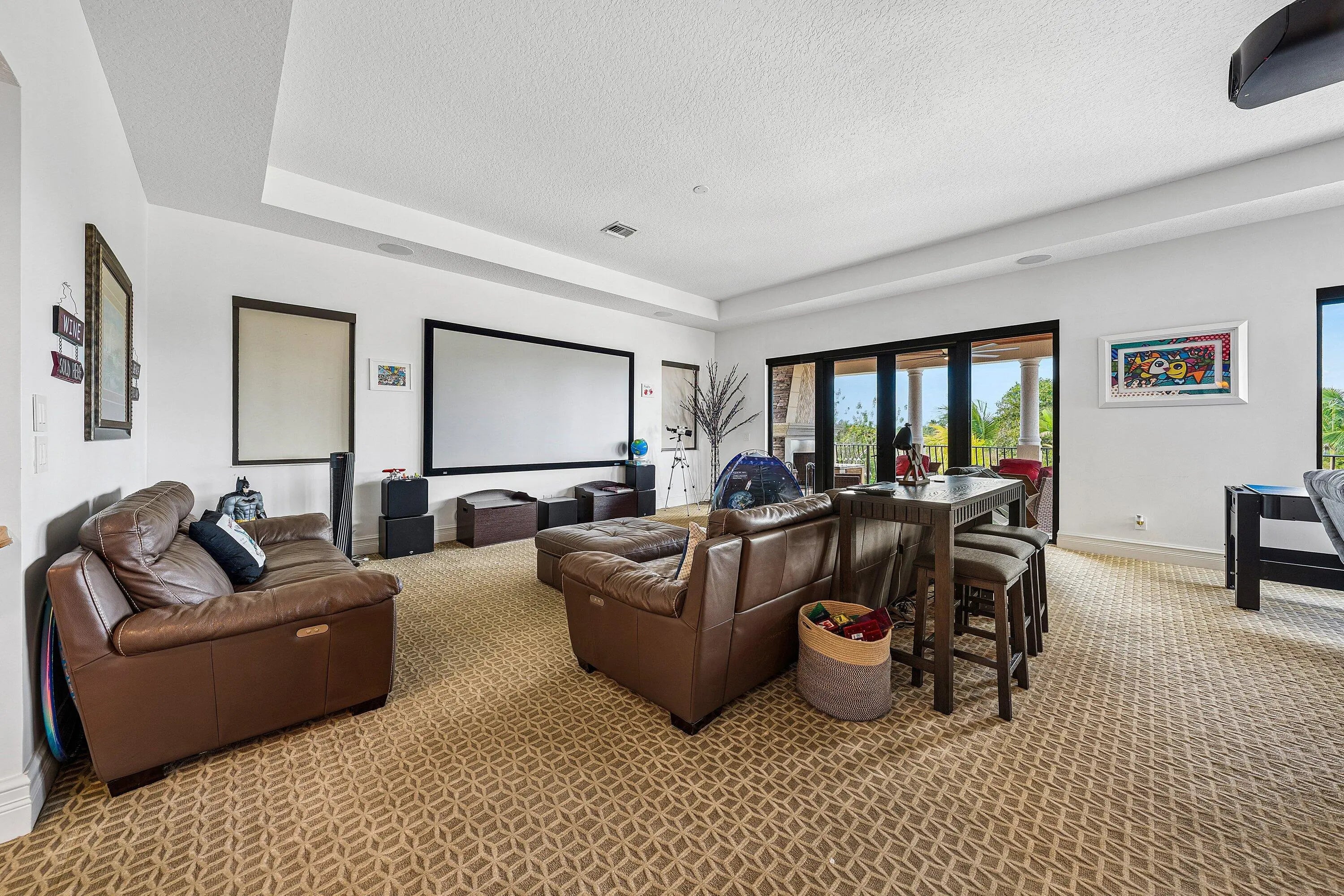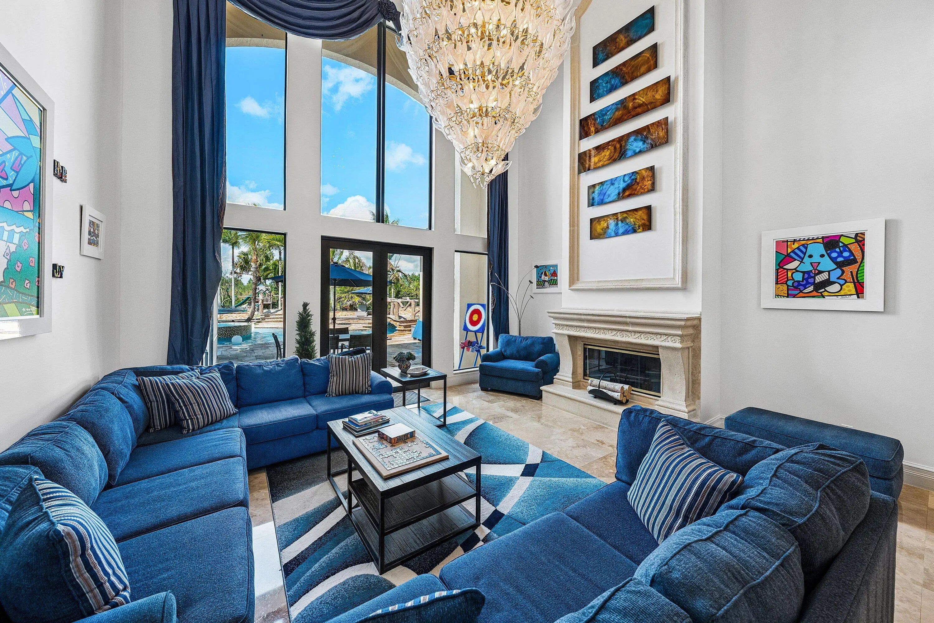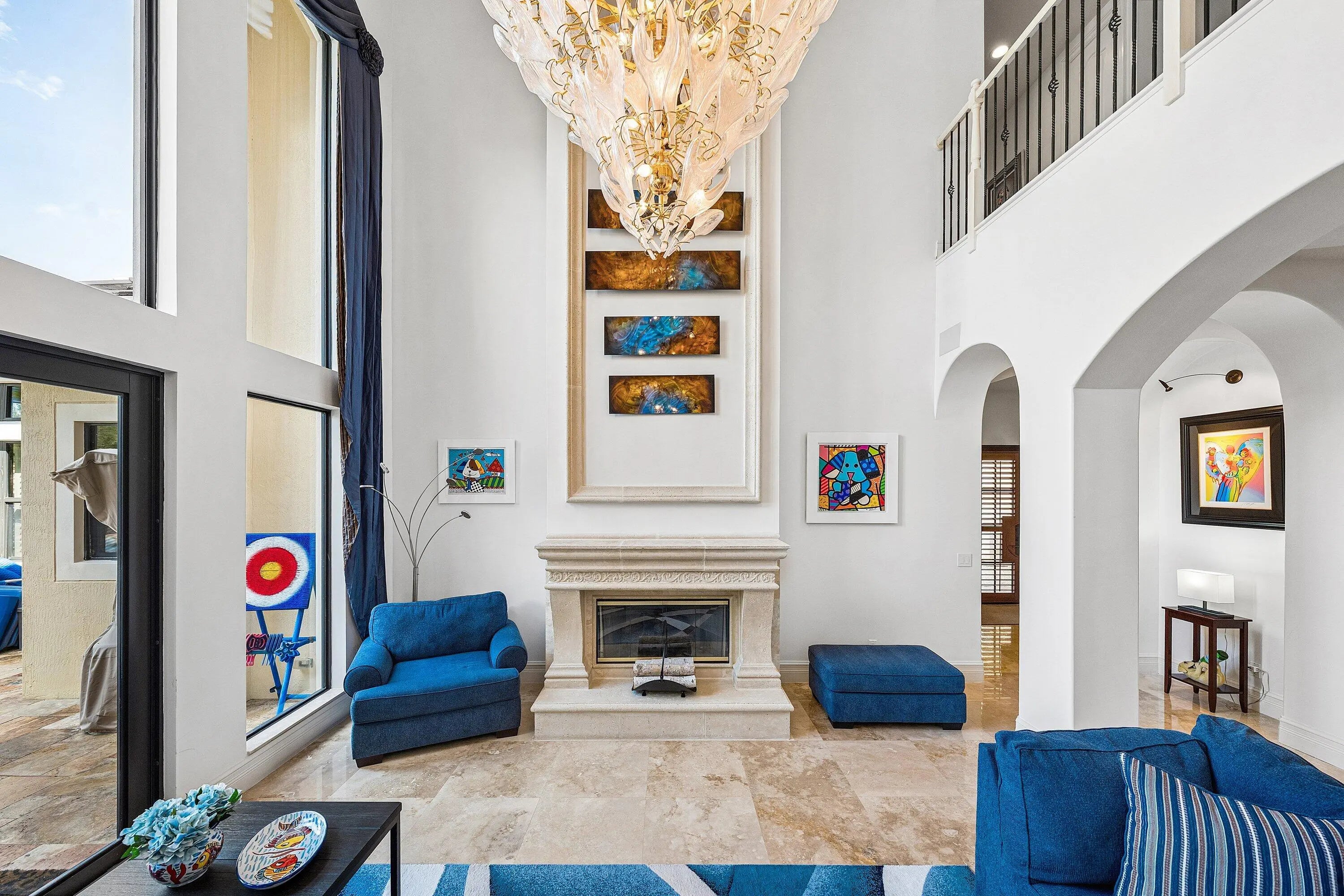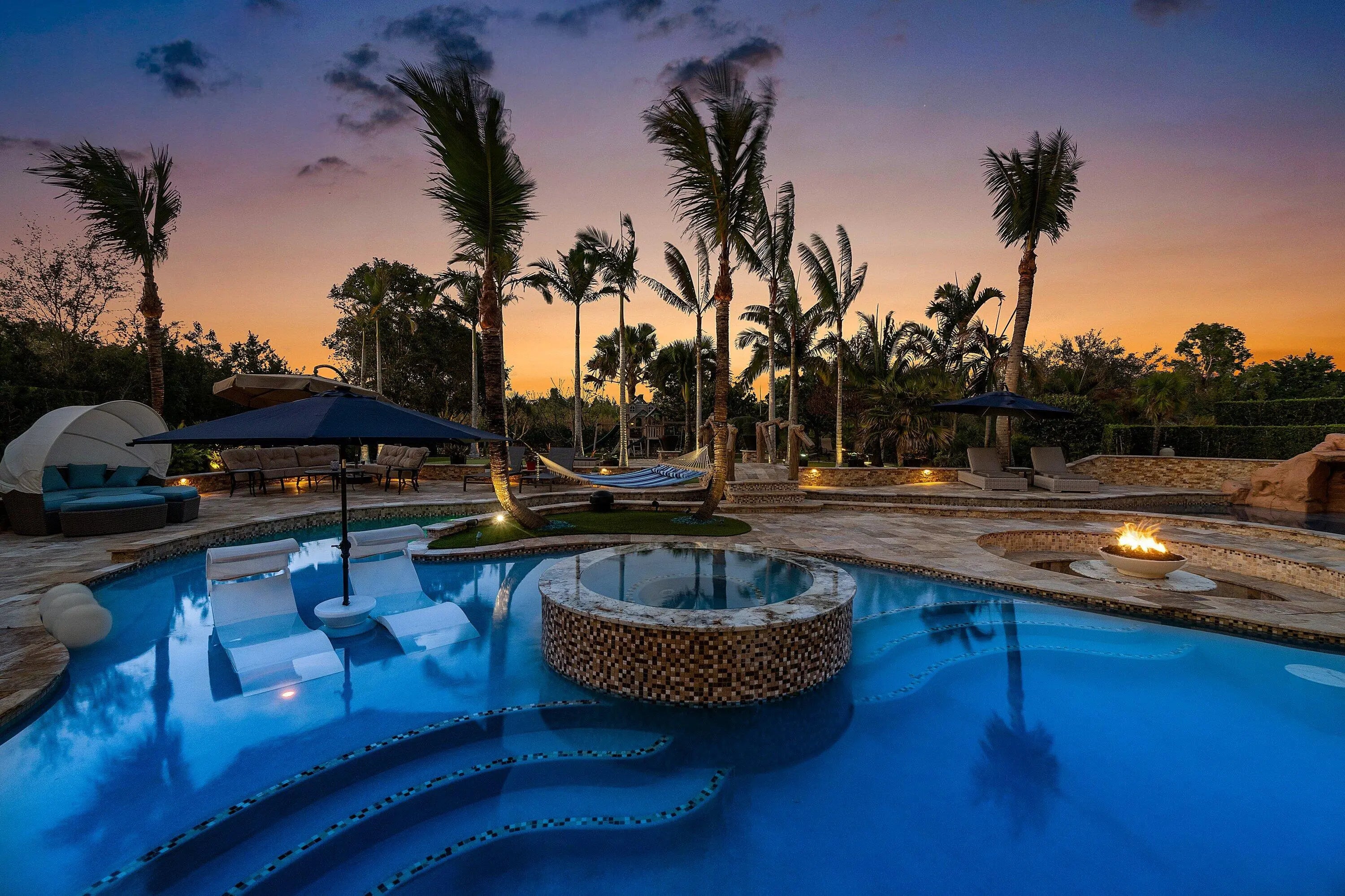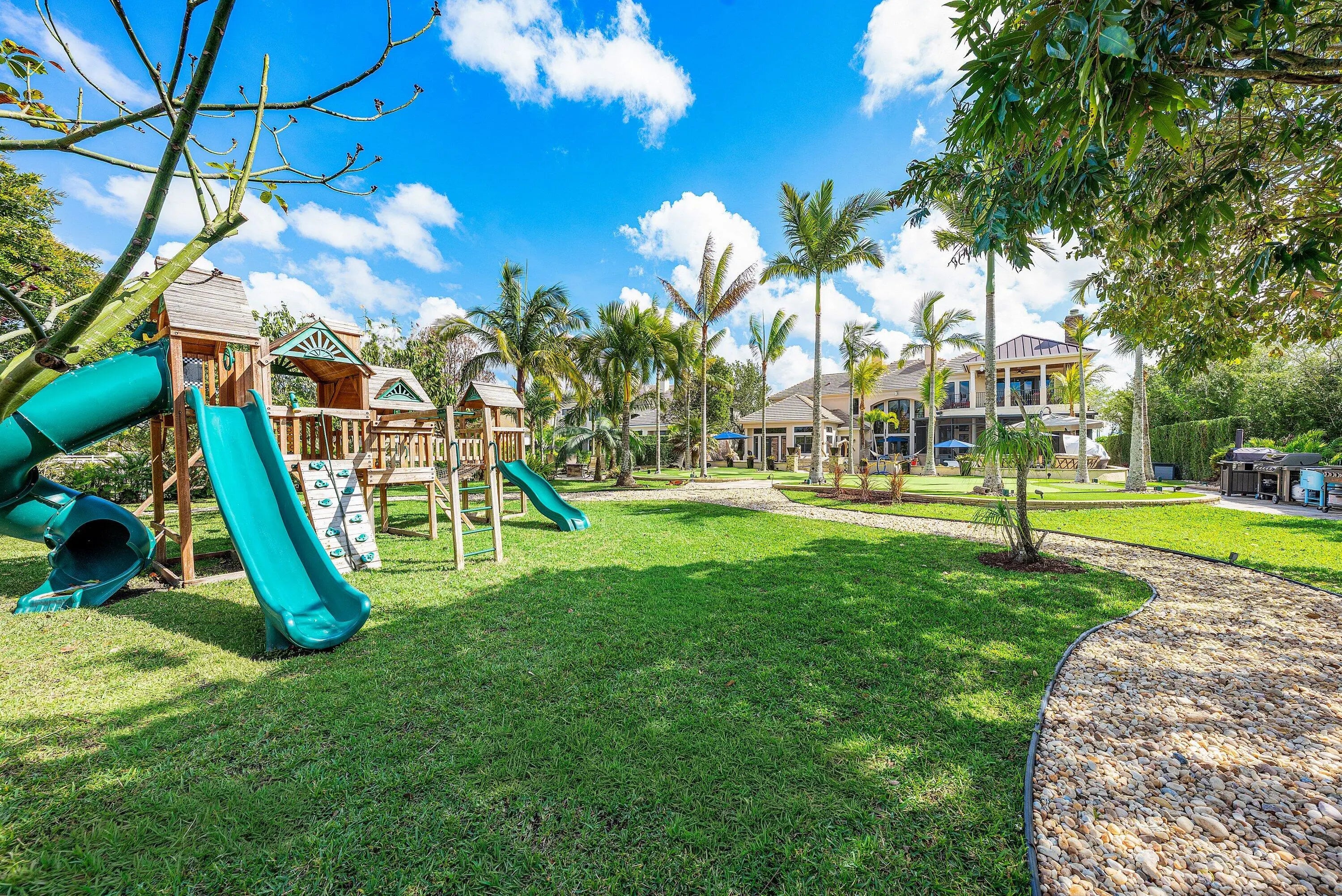 Rarely available 6,245 SF estate with 5BR, 7.5BA, & 4-car garage. Private courtyard entry leads to travertine floors and dramatic 2-story living room overlooking resort style backyard. Featuring antique Murano chandeliers the Dining room opens to courtyard. Chef's dream kitchen with 11x7 underlit quartzite island, coffered ceiling, 6-burner gas range, Wolf microwave/steam oven, warming drawer, dual Asko dishwashers, Sub-Zero and island fridge drawers. Screened summer kitchen with Kalamazoo hybrid grill, teppanyaki flat top, bar, kegerator and TV. Saltwater lazy-river pool with grotto, swim-up bar, waterfalls, sunken fire pit, spa and cabana bath. Sonance landscape audio, Golden Bear putting green and so much more! 2nd floor has oversized theater/media/game room & bar. 4 addl Bedrooms. Your next home rivals a private resort, this exceptional estate delivers an extraordinary lifestyle centered around an unforgettable backyard experience. A dramatic lazy river pool winds through the property beneath two decorative bridges, flowing past waterfalls and bubblers before gathering around a striking fire feature. Beyond the pool, a private putting green and beautifully landscaped grounds create a secluded retreat designed for both relaxation and entertaining. Evenings come alive in the expansive outdoor living areas featuring a fully equipped Kalamazoo summer kitchen with gas burners, flattop cooking surface, beverage refrigerator, and a three-tap kegerator. A wood-burning fireplace with gas ignition, gas heaters, and motorized enclosure screens allow the space to be enjoyed year-round. Inside, the home combines sophisticated design with cutting-edge comfort. Handcrafted Murano glass chandeliers illuminate the great room, hallway, and primary suite, highlighting architectural elements such as curved walls, soaring vaulted ceilings, and custom plantation shutters throughout. The chef's kitchen is appointed with Sub-Zero refrigeration, GE Monogram gas cooking, Wolf microwave, steam oven, warming drawer, and dual Asko dishwashers, complemented by illuminated marble counters and hidden charging stations. A dedicated Sony 4K projector theater room with a full wet bar and app-controlled blackout shades creates a true cinematic experience at home. The primary bath was completely remodeled in 2024, with two additional upstairs bathrooms updated in 2025, offering a fresh modern aesthetic. Behind the scenes, the property is equally impressive with Generac Natural gas generator (runs whole 1st floor), Carrier HVAC systems with Reme Ionic air purification, RainSoft whole-house water filtration, Lutron smart lighting, Sonos multi-zone audio, Luxor landscape lighting, ADT security, and full camera monitoring. Additional enhancements include saltwater pool upgrades, gas pool heater, upgraded attic insulation, newly sealed driveway and walkways, updated garage systems, fresh landscaping, and a Gorilla playground. Every element of this remarkable residence has been thoughtfully curated to create a private luxury retreat designed for unforgettable living and effortless entertaining. Community has a 7,000 Clubhouse with Athletic Center, 2 Har-Tru Tennis Courts, Tot Lot, Billiard Room, Party Room, Swimming Pool, Hot Tub, Fire Pit & BBQ Grill.