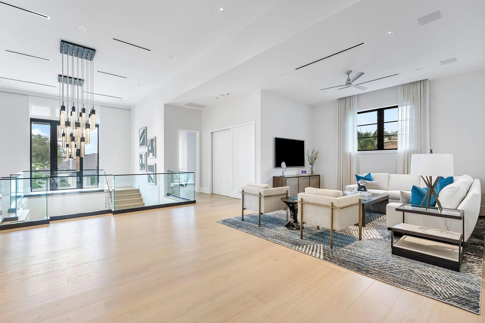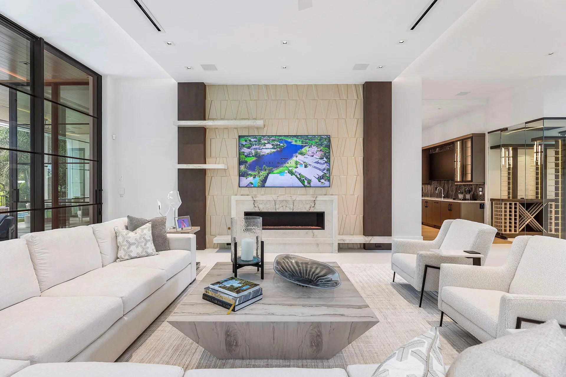 Located in the prestigious Royal Palm Yacht & Country Club, this extraordinary residence, meticulously crafted by Bloomfield Construction Inc., redefines luxury living. Encompassing 10,146 square feet, this fully furnished estate offers breathtaking views of multiple Jack Nicklaus Signature golf course fairways.The property features five exquisite bedroom suites, including a first-floor master suite, six full bathrooms, and two half bathrooms. The master suite showcases both his and her bathrooms; each outfitted with lavish steam showers for ultimate relaxation. Designed with convenience and style, the estate also boasts a four-car garage equipped with air conditioning and EV charging stations, ensuring comfort and functionality. The driveway, constructed with a durable concrete base and finished with porcelain, exudes sophistication and longevity. For those who value modern conveniences, the home offers cutting-edge smart home technology, seamlessly integrating security, climate, and entertainment systems alongside advanced water detection systems for peace of mind. The interior spaces are complemented by a club room, a gym, and dual kitchensone designed for gourmet creations and the other for outdoor summer entertaining. Unwind in the expansive swimming pool and spa, or savor a fine vintage from the 388-bottle wine room. This property is ideally suited for entertaining, with multiple gathering spaces that flow effortlessly throughout the home. Every detail is curated, offering a move-in-ready experience in Boca Raton's premier enclave. The buyer is responsible for documentary stamp taxes and title insurance.