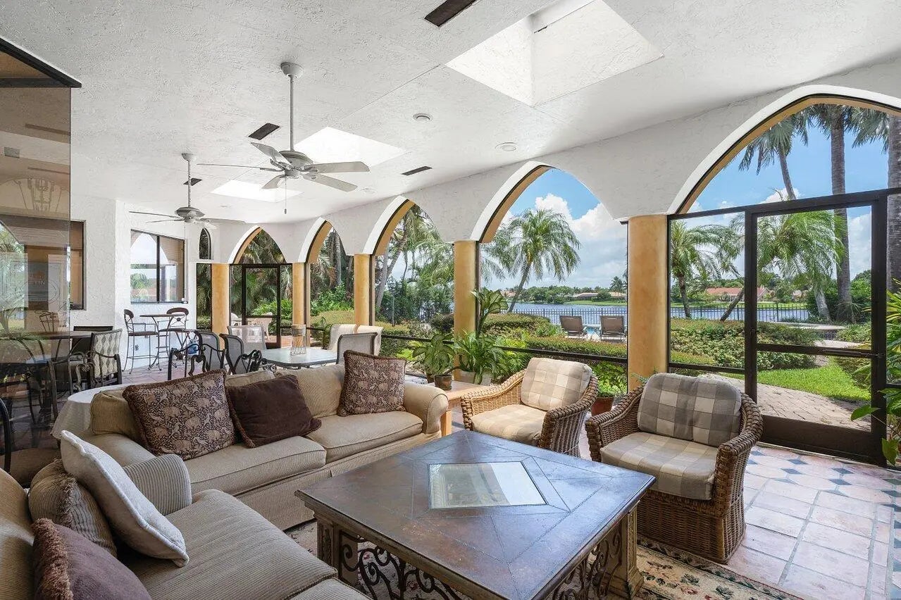 Amazing! Majestic, elegant and light-filled home on a spectacular PRIVATE WATERFRONT property located on a quiet cul de sac! .67 of an acre of beautiful gardens, tropical pool & spa & huge screened porch looking over the serene lake. 6 bedrooms, 6.5 bathrooms - neutral tones & floor to ceiling windows. Primary boasts spa like his&her baths, massive built out closets, & a sitting area. Open living & dining room. Chef's kitchen w/ gas stove and a large family room with lake views! Plus a 3 car garage and generator. This home has everything! Bocaire is a boutique mandatory membership club - 239 homes w/ resort style amenities, new clubhouse, championship golf course, tennis, pickle, 24 hr fitness, high end dining, friendly & active community! A rated schools, close to beach & restaurants.