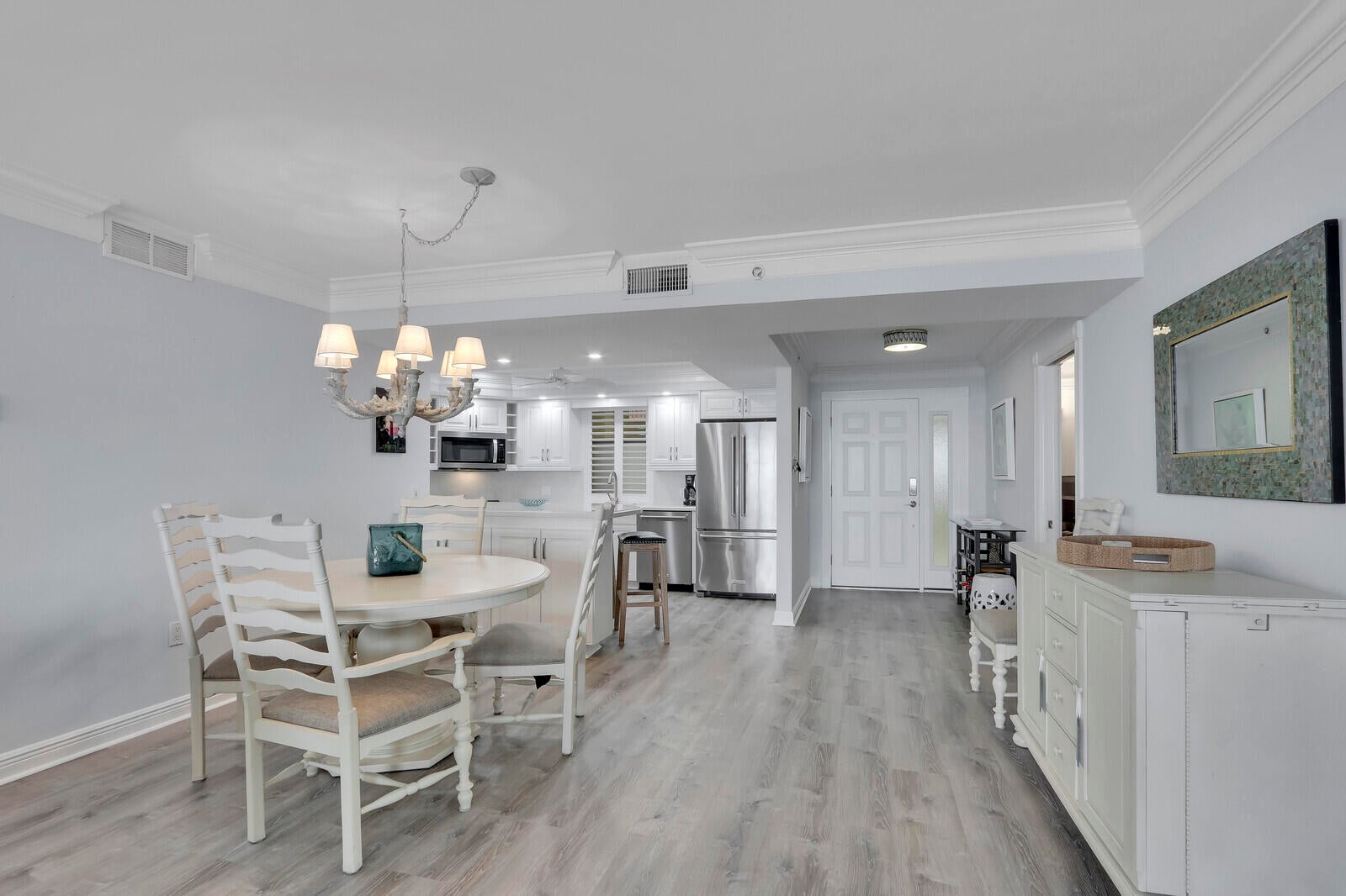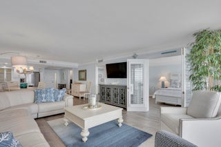 BEST PRICED CONDO IN OCEAN TOWERS!PRICED TO SELL - FURNITURE IS NEGOTIABLE!Discover your perfect beachside escape with this exquisite 3-bedroom, 2-bathroom condo, boasting direct ocean views and a host of modern upgrades. Located in a coveted 30-unit building, this residence has been meticulously renovated to offer both contemporary luxury and coastal charm.As you step inside, you'll immediately appreciate the bright and airy ambiance created by new flooring throughout. The open concept living space is enhanced by elegant quartz countertops, plantation shutters, and automatic blinds for the sliders, allowing you to effortlessly adjust your view of the stunning ocean panorama. Crown molding adds a touch of sophistication to the already stylish interior. The master suite is a true retreat, offering spectacular ocean views and a beautifully appointed en-suite bath. The additional bathroom has been thoughtfully updated to ensure luxury and convenience for all. Enjoy the ultimate in beachfront living with exclusive access to a sparkling pool right on the sand. Whether you're lounging by the pool, taking a dip in the ocean, or savoring the gentle sea breeze from your private space, this condo promises an exceptional coastal lifestyle. This beach condo is truly a beach getaway and will not disappoint. Priced to sell, it offers an incredible opportunity to own a piece of paradise in one of the most desirable oceanfront locations, Jupiter's Island South end. Best priced condo in Building - won't last!
