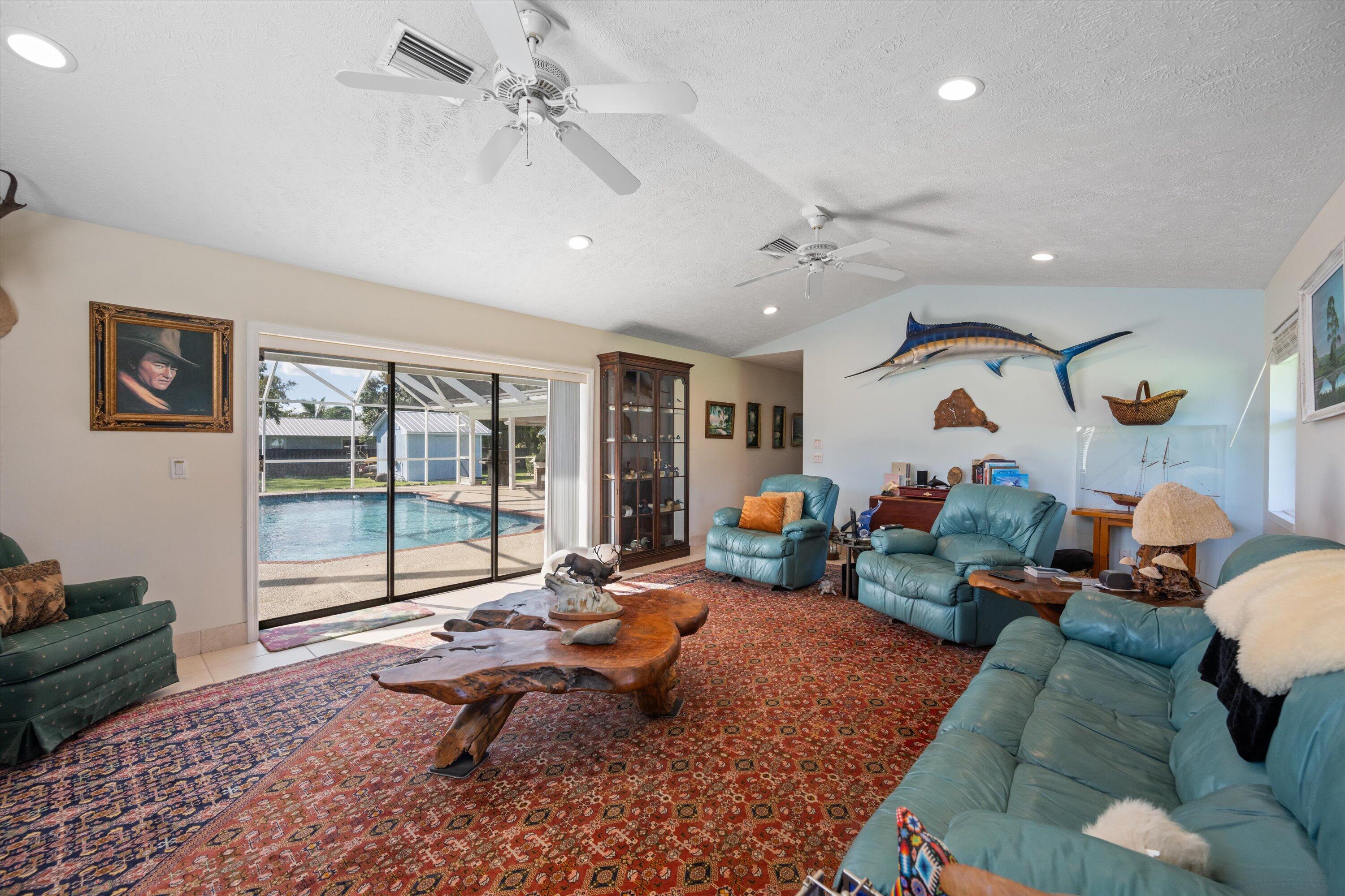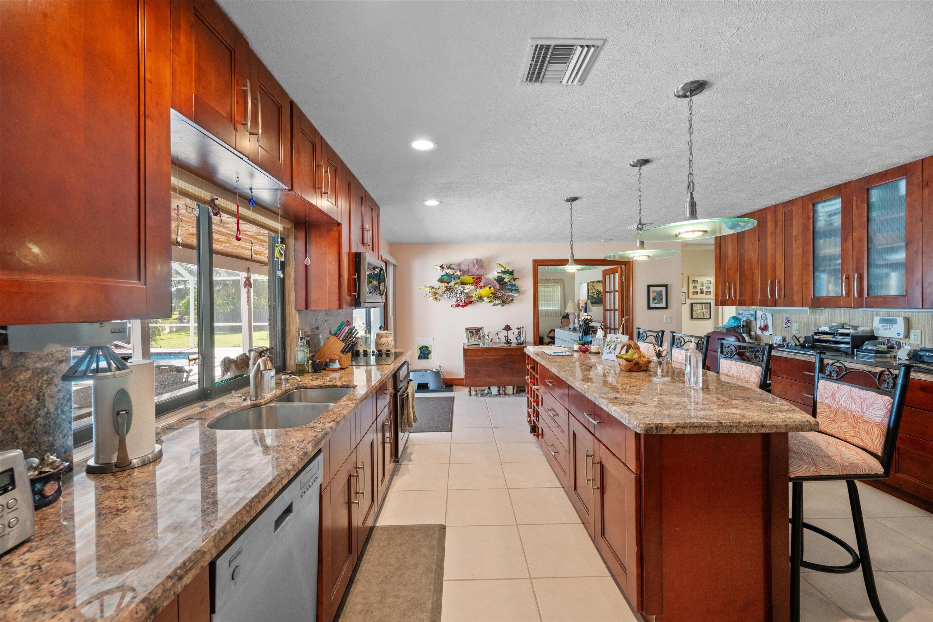 The most amazing lake views offering peace & tranquility + the perfect SE exposure, situated on over an acre! 4 bedrooms! 4 car garage! Pool! Huge family room! Formal dining room! Kitchen has Brazilian Cherry cabinets, solid granite countertops & stainless steel appliances. Huge master bath with Roman tub & separate shower. You will love sitting on the porch + relaxing, watching the lake & enjoying the cool breezes! Solid built 2x6 construction! Brick & stucco exterior. Stucco soffits! Separate office! Plenty of room for 1 RV + 1 boat. One of a kind property in the center of Stuart & West of US1. This is a homerun value!