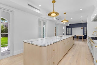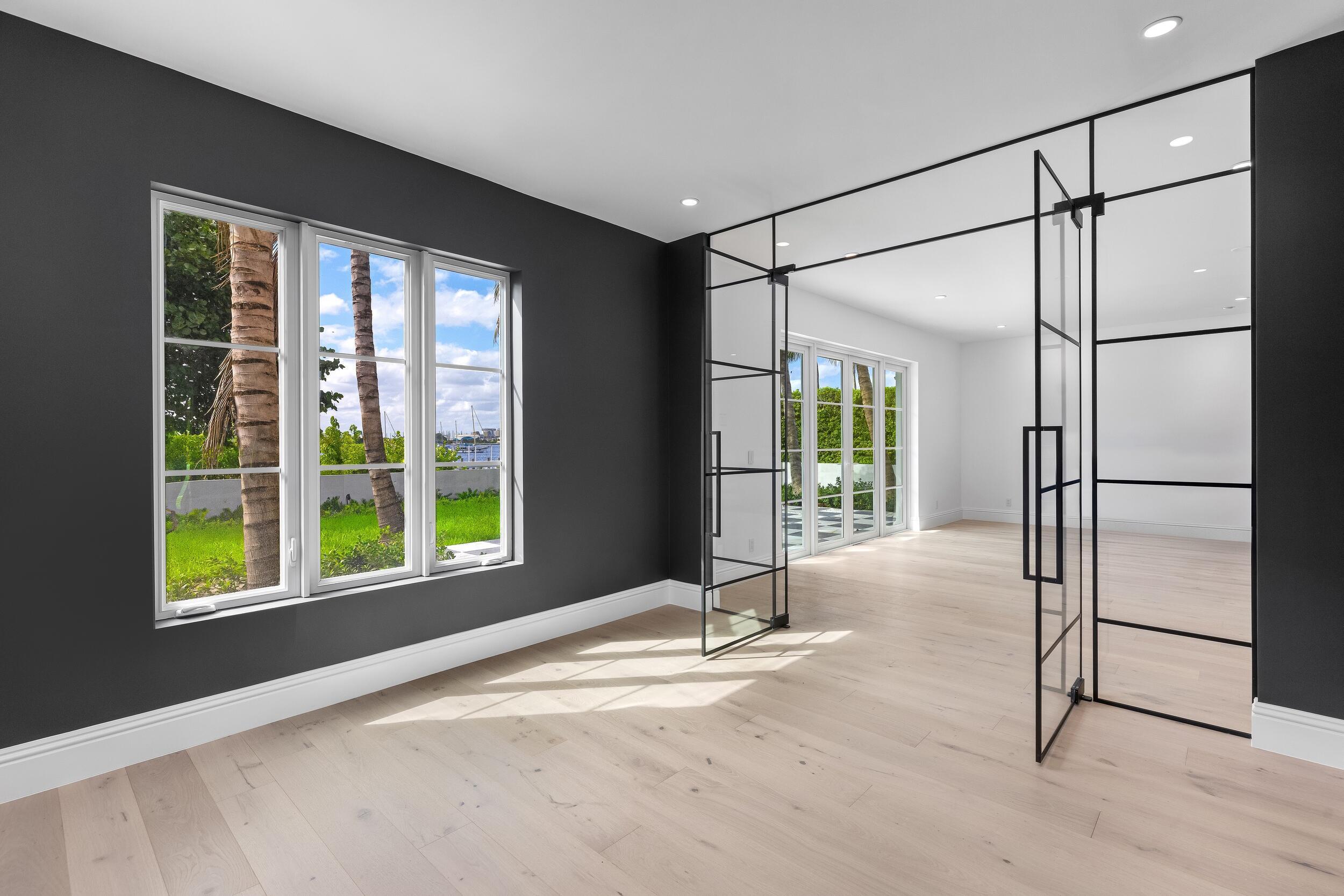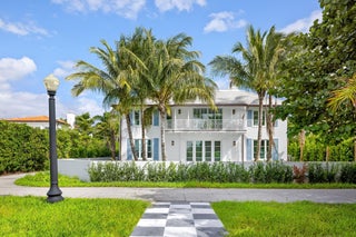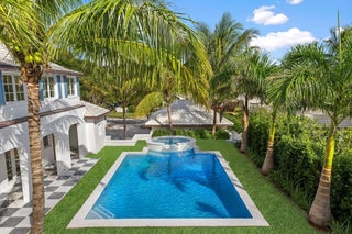 Spectacular Newly Completed Lakefront home with deep water dock and access to the Lake Trail. With spectacular views of the Intracoastal, this stunning home has been beautifully restored and features 5 bedrooms, 7 bathrooms, 1 powder room, and over 6,800 total square feet. Fabulous courtyard pool area perfect for outdoor entertaining with covered loggia, expansive patio, salt-water pool, and spa. Interior highlights include formal dining room, fabulous eat-in kitchen, media room, and den. Beautiful Primary Suite with dressing room, large bath with dual sinks, and breathtaking views. Additional features include lush tropical landscaping, 2-car garage, multiple balconies, and charming entry portico.