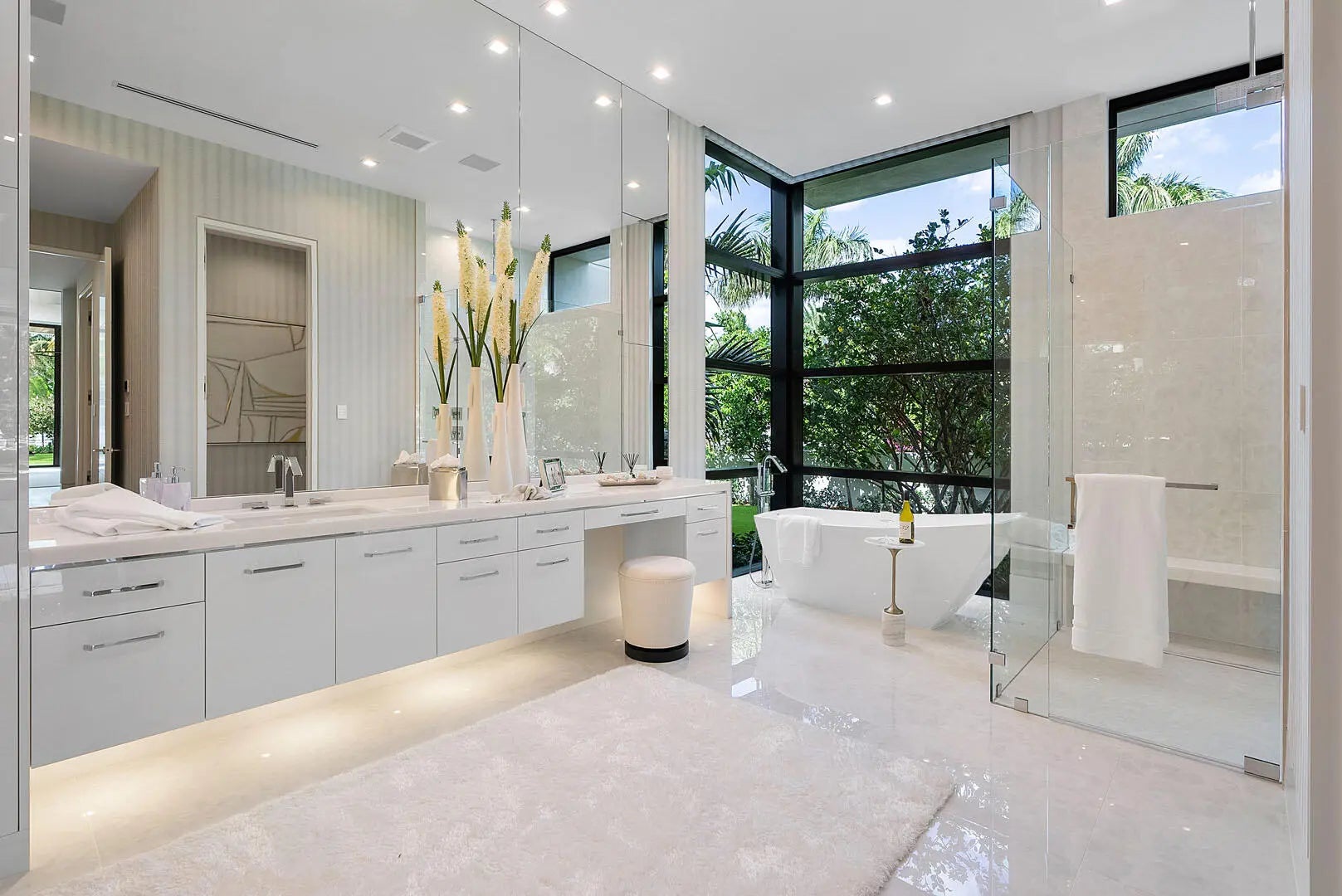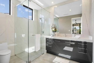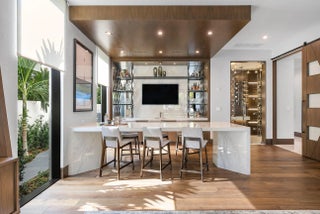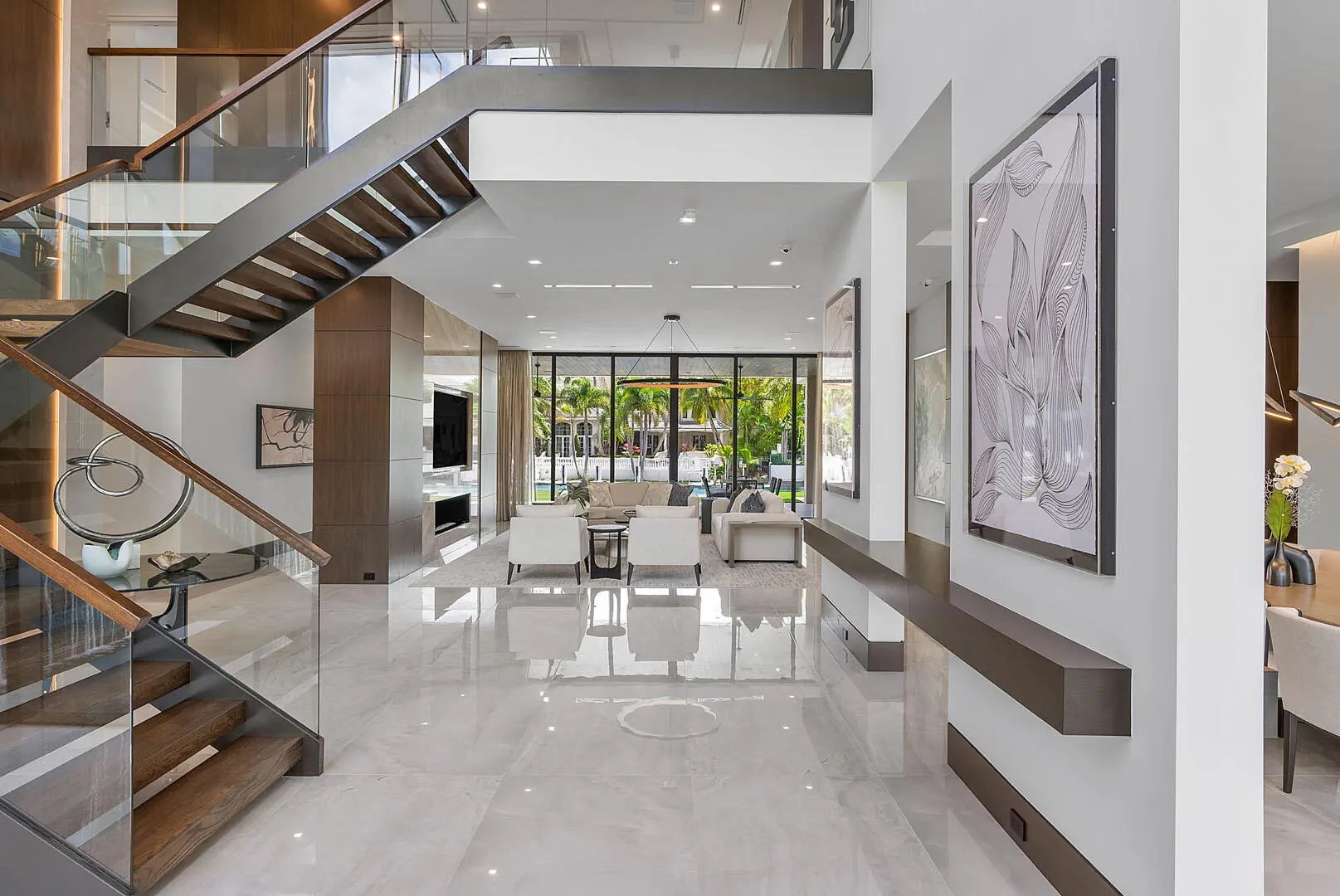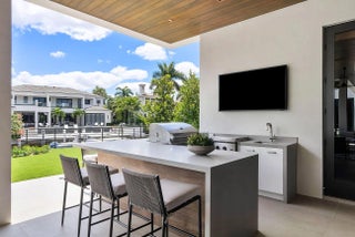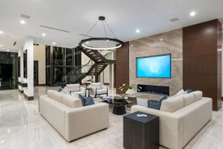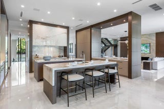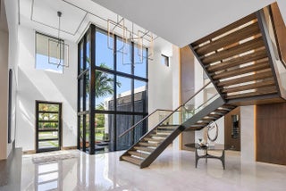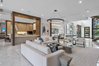 Immerse yourself in unparalleled luxury with this extraordinary furnished waterfront estate by SRD Building Corp. Spanning over 11,400 square feet of refined living space, this six-bedroom, eight full and two half-bathroom home is on 166 feet of deep-water frontage, offering a yacht-ready dock and southern exposure. A stunning waterfall wall fountain sets the tone as you enter the dual-entrance motor court driveway. The first-floor owner's wing is a private sanctuary with His & Her spa-like bathrooms, a dedicated wellness/gym with a full spa bath and steam shower, and a tranquil sitting room. For car enthusiasts, showroom-style garages with glass walls provide a striking display for your collection enjoyed from the private study.