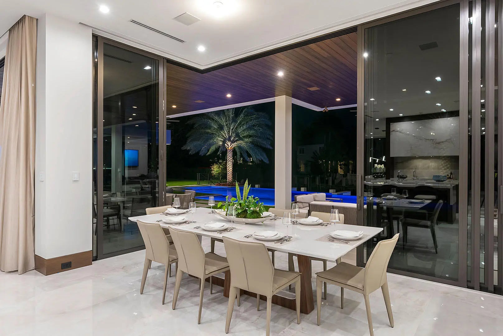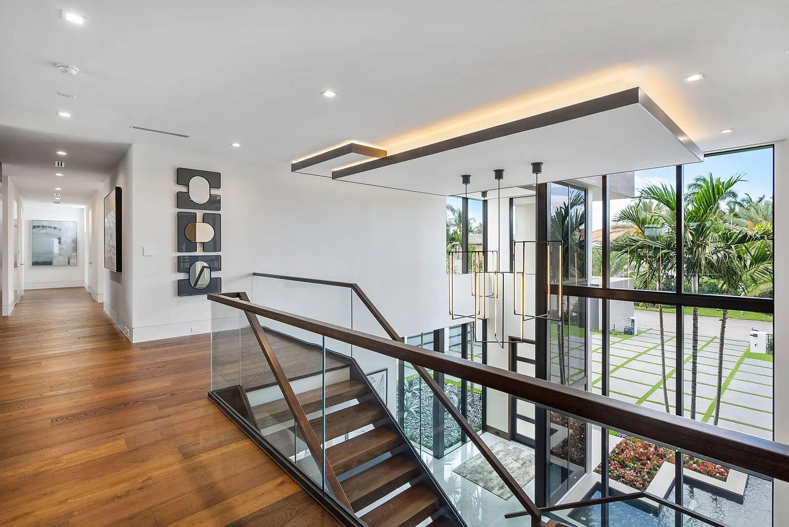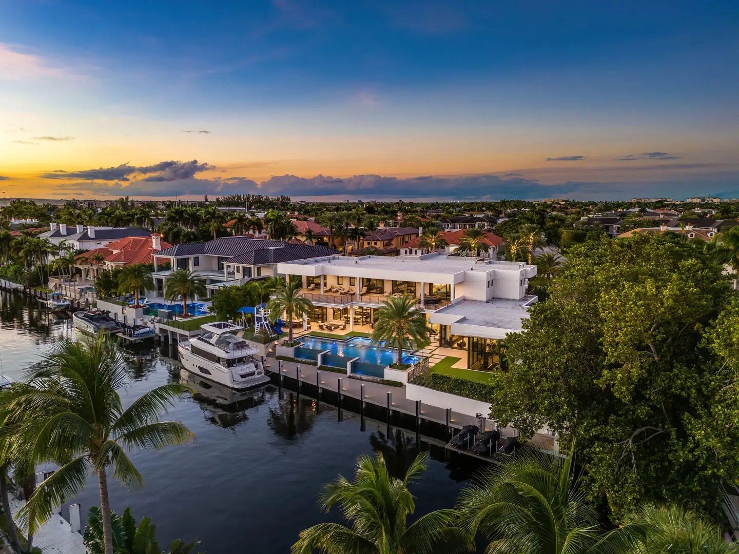Immerse yourself in unparalleled luxury with this extraordinary furnished waterfront estate by SRD Building Corp. Spanning over 11,400 square feet of refined living space, this six-bedroom, eight full and two half-bathroom home is on 166 feet of deep-water frontage, offering a yacht-ready dock and southern exposure. A stunning waterfall wall fountain sets the tone as you enter the dual-entrance motor court driveway. The first-floor owner's wing is a private sanctuary with His & Her spa-like bathrooms, a dedicated wellness/gym with a full spa bath and steam shower, and a tranquil sitting room. For car enthusiasts, showroom-style garages with glass walls provide a striking display for your collection enjoyed from the private study.