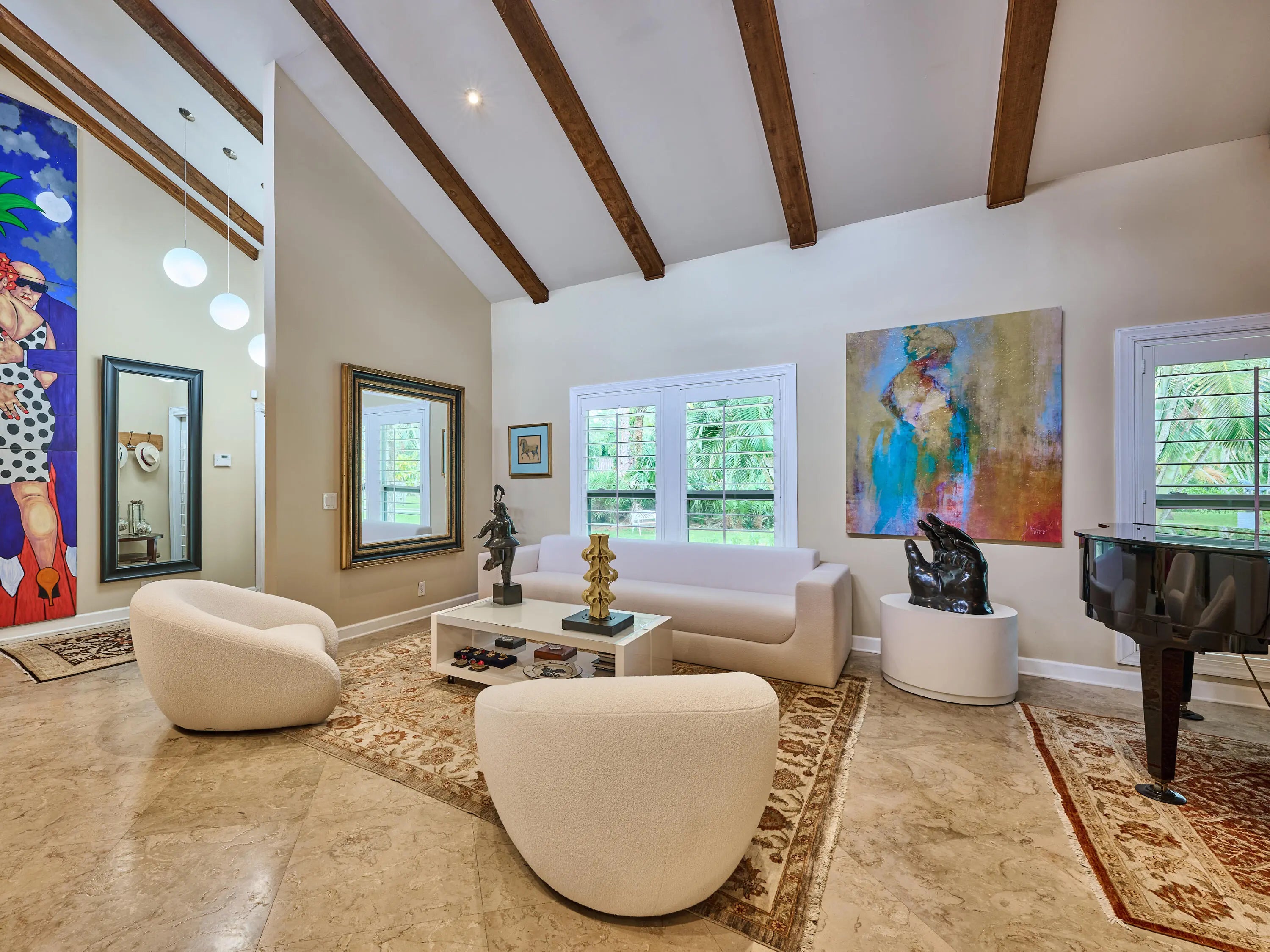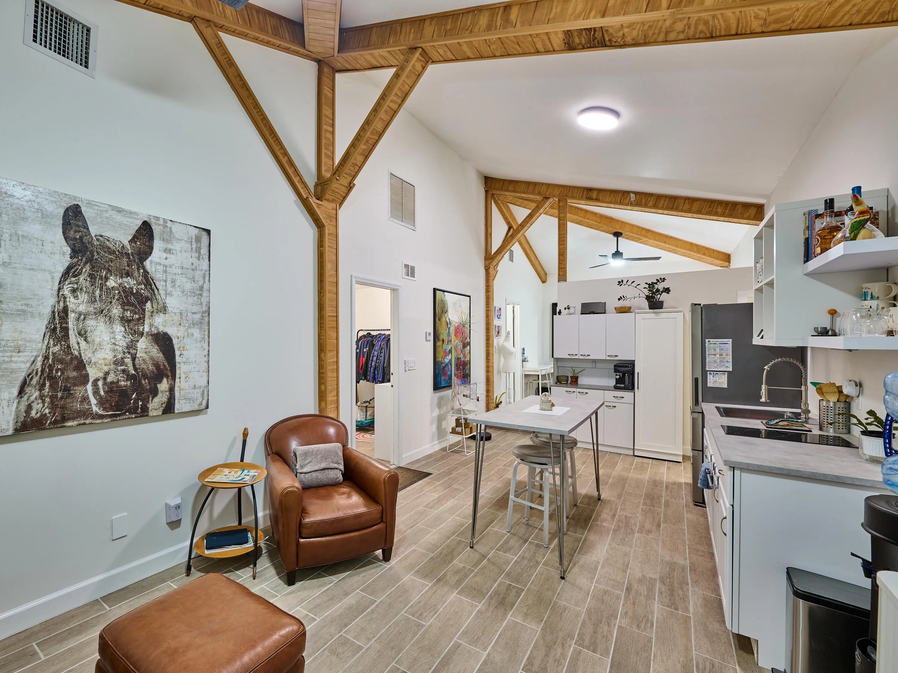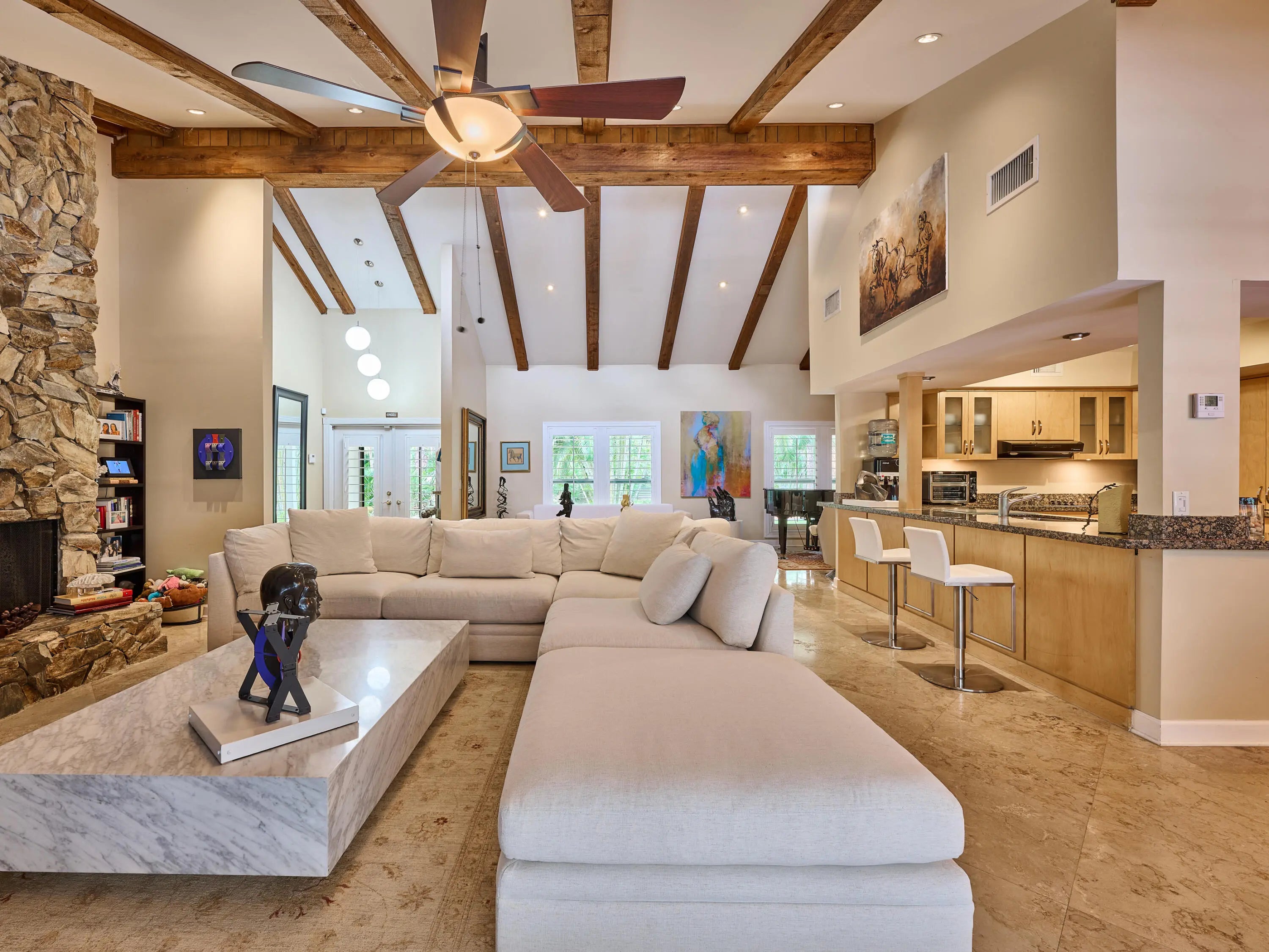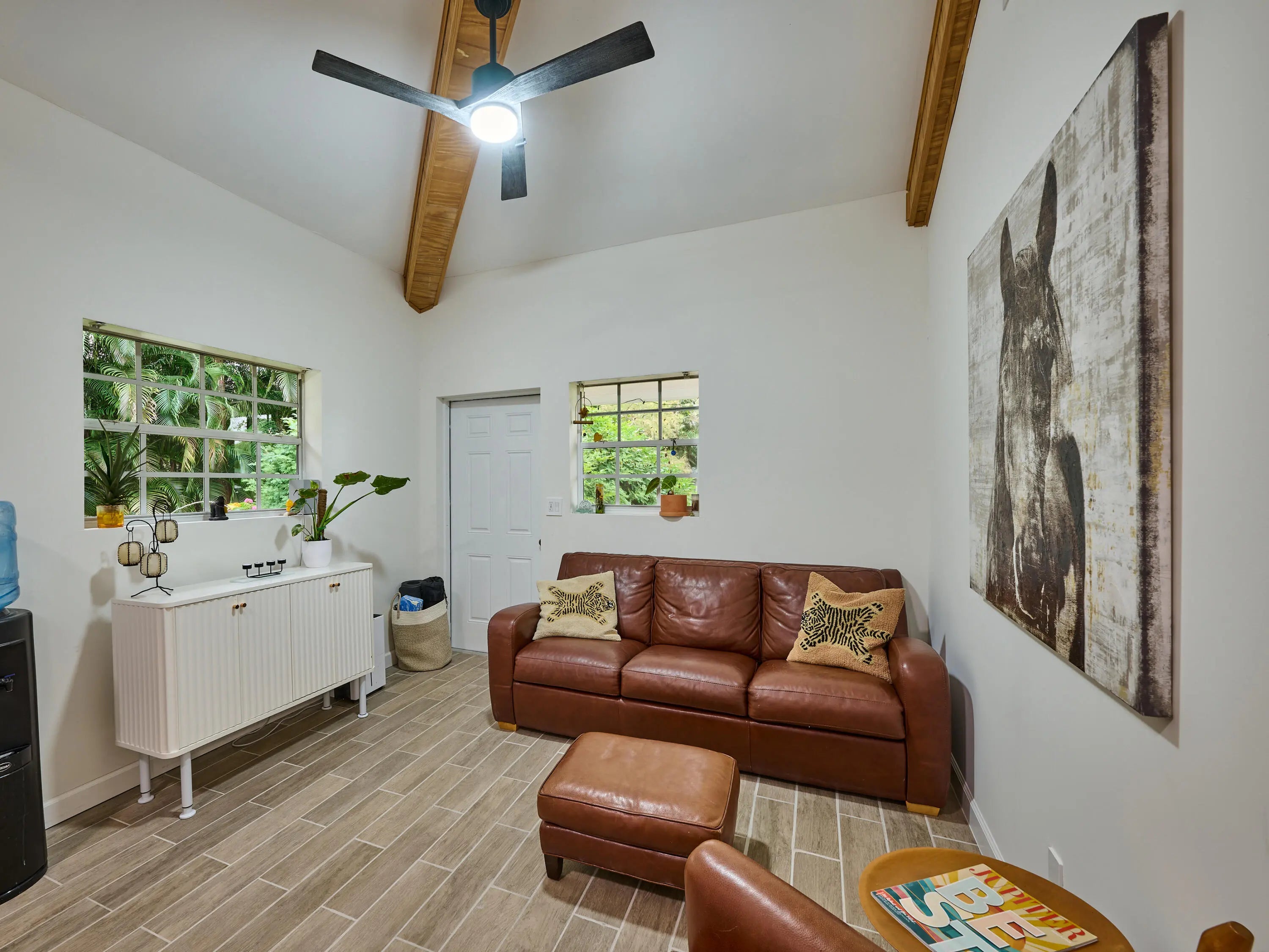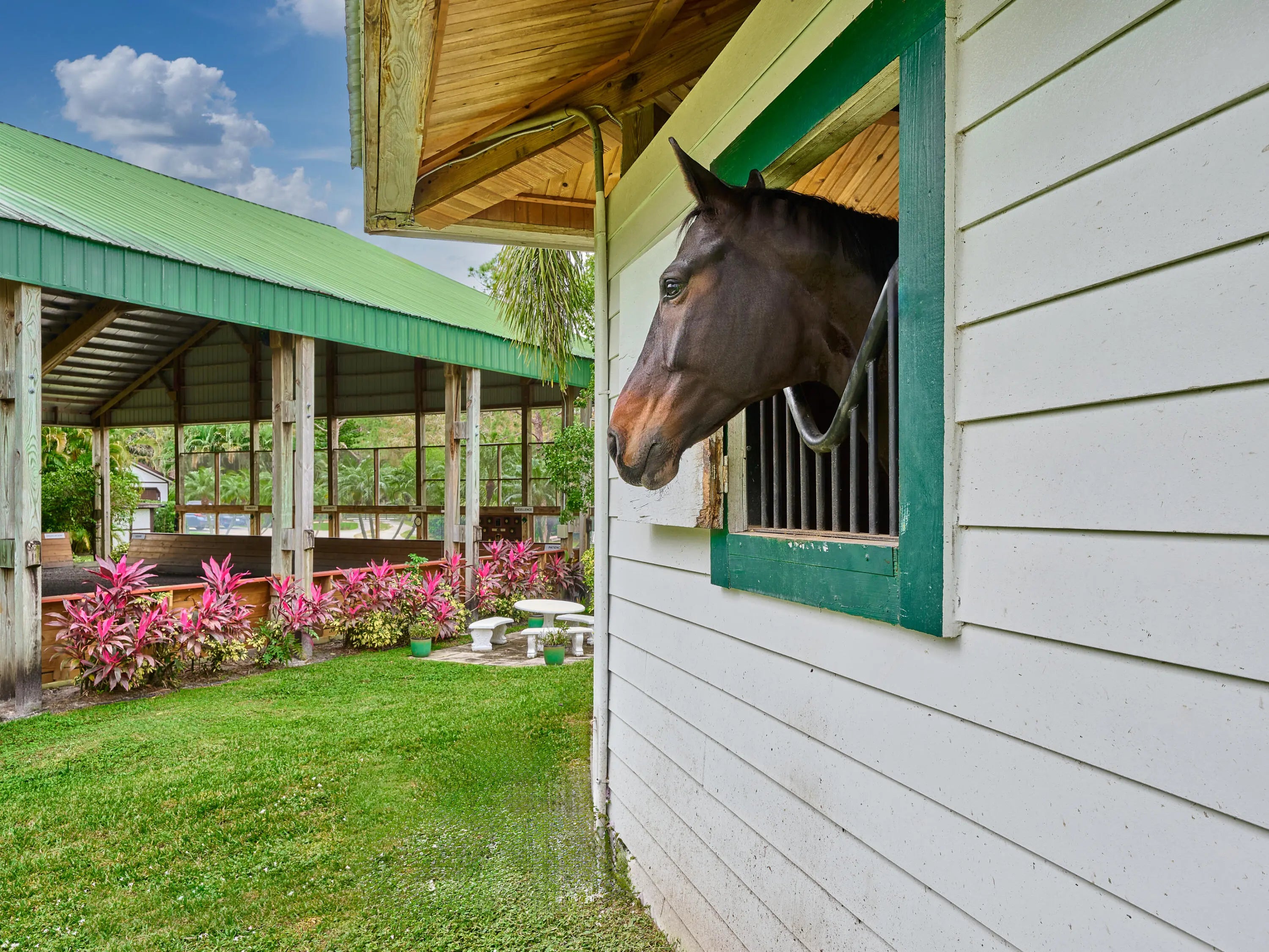 21-Stall + Jupiter Farms Equestrian Estate | Arena + Trainer Apartments. Looking for privacy and acreage in Jupiter Farms where you can live and work with your horses? Welcome to 18238 128th Trail North, Jupiter, FL 33478 -- a one story single family home designed for an equestrian/farm lifestyle featuring barns, training arenas, and rider and trainer quarters on site.This mid century modern home offers 3 beds, 3 baths, and 2,182 sq ft with vaulted ceilings, clerestory windows, tile floors, fireplace, and updated kitchen with granite. Two ensuite baths add comfort. Step outside to a screen enclosed pool and fenced 4.54 acres. The 11,000 sq ft stable includes a 21 stall center aisle barn with wash racks, tack room/office, 4 studio apartments, plus additional 3 stall barns. The 4.54-acre property boasts breathtaking grounds, including stables, paths and a phenomenal 14,000 under-roof sqft, cushioned, regulation dressage/riding arena with newly installed HUGE ceiling fans to keep horses and owners COOL on hot day s! Horse lovers, welcome to paradise with an 11000 sft. 20 spacious stall stable featuring 1 main apartment, freshly remodeled with a contemporary living area, full kitchen, luxurious bath, and a lovely screen enclosed porch. The stable is also home to 3 additional rider rooms with full baths, 3 tack rooms, feed room, laundry room and additional community full bathroom. All stalls equipped with ceiling fans and rubber mats to keep your equine family cool and comfortable. There are multiple cold water wash racks with seperate grooming spaces. Manage all of your needs or lease individual spaces for income! There are 3 additional REMOVABLE barn sections, one with 3 stalls and space for tack room, another with 2 stalls and tack room and tool room and a third with 3 stalls and a space for tack next to it. The roofs of these stalls have been updated in the past 4 years. This unparalleled estate offers plenty of room for animals, yours and boarders, 2 turnouts which are expandable and/or reconfigurable, and so much more. 2 wells, 2 septic tanks, and 2 generators (one for the home and one for the barn), you'll have everything you need. PLUS, a new roof on the single family home in June of 2024! The property is fully functional, fenced and gated, ensuring privacy and security in this idyllic community known as "The Farms." The property access is impeccable from 128th Trail to 127th Trail, no turnaround required and securely gated at both points. Jupiter and the nearby Riverbend Park (a 7minute ride away) offer scenic riding trails. You can ride through peaceful woods, along riverbanks, or nature preserves. Equestrian parks in Palm Beach County also provide trails for riders of all levels. Jupiter is 40 minutes from Wellington, the "Winter Equestrian Capital of the World," home to top-tier events like Winter Equestrian Festival, one of the largest and longest-running equestrian events in the world and the Global Dressage Festival a premier event for dressage riders showcasing world-class performances as well as a hub for polo matches. Equestrian properties in Jupiter combine rural charm with modern conveniences offering a relaxed lifestyle while being close to beaches, restaurants, and shopping. Owning horses in Jupiter combines a fantastic lifestyle with the perks of equestrian living, natural beauty, community, and premier facilities, making it an ideal location for horse enthusiasts. This amazing property truly has something for everyone, whether you're an equestrian enthusiast, investor, prospective business owner or looking for a unique retreat! To truly appreciate all this property has to offer, you must see it for yourself! This incredible property offers the best of all worlds. Reach out today and schedule your private tour of this surprising residential property, aspiring new business opportunity or investment property. Single Family Home is 3BR/3Full Baths, 2182sft. under air. Additional living square footage in stable: (1955sft.) and baths (5) in stable and under a/c (3 studio apartments and 1 1BR Full apartment with living, kitchen bedroom and screen enclosed porch). The Perfect Price for Your Perfect Place. Call now to schedule your private tour.