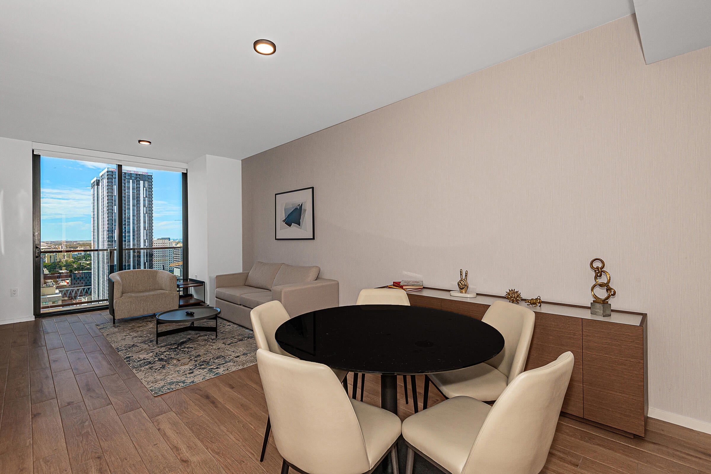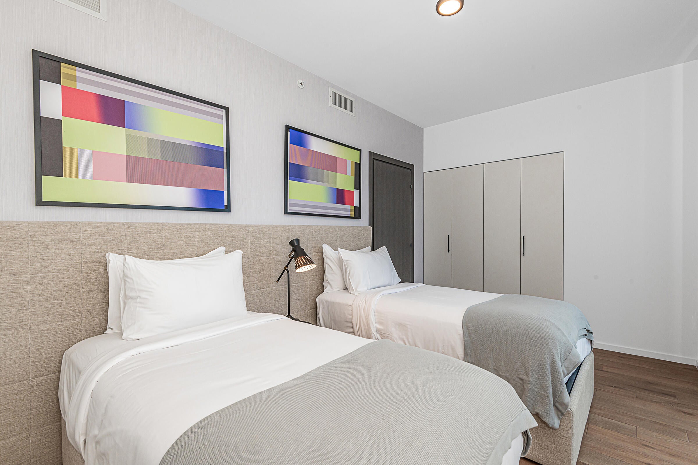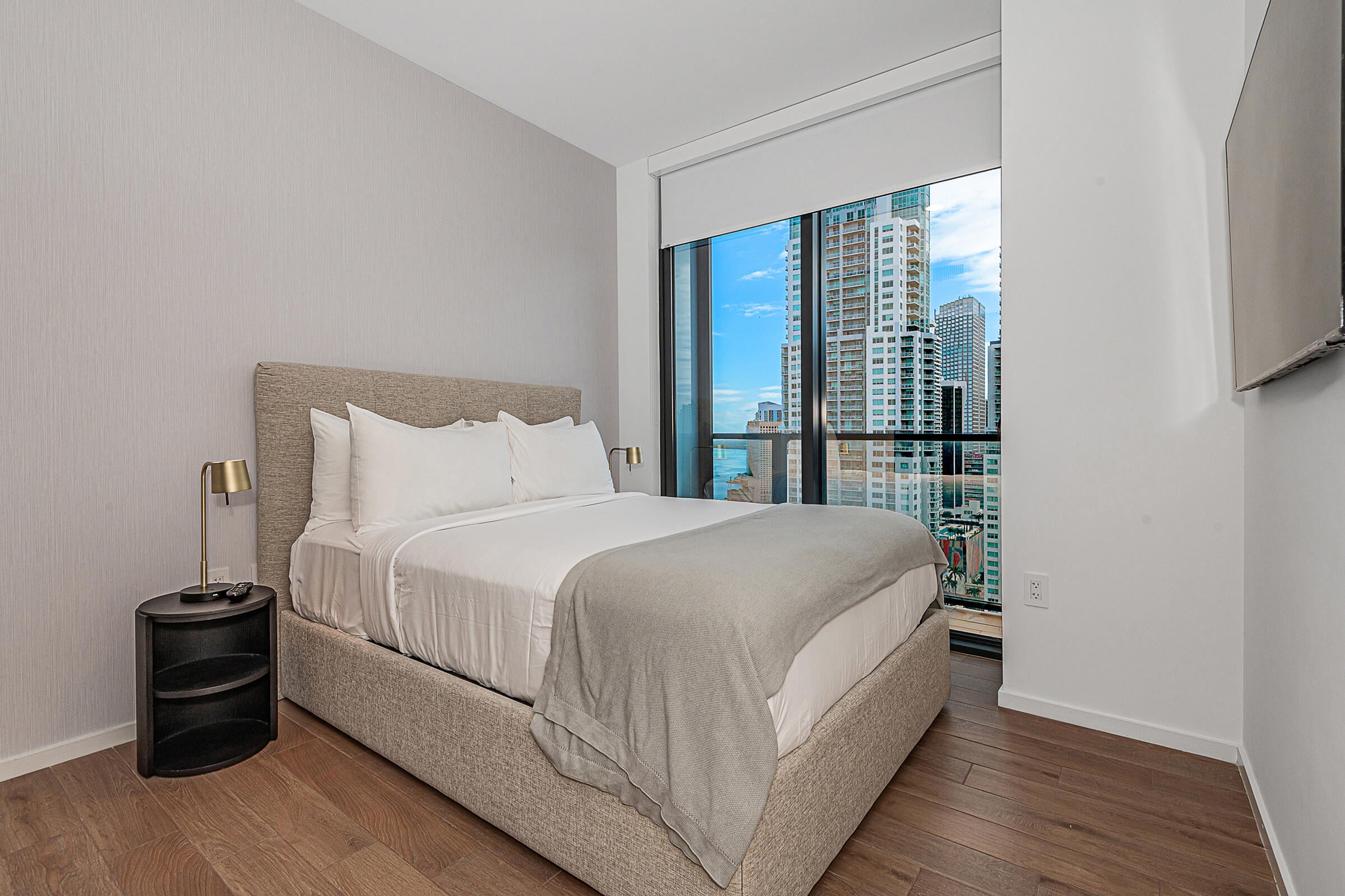 Experience luxury living at The Elser, where style meets comfort. This fully furnished condo features sleek modern furniture, a flat-screen TV, a king-size bed, and a pull-out couch for extra guest space. Enjoy smart living with a thermostat and keyless entry, and soak in breathtaking views of downtown Miami and Biscayne Bay from your high-ceiling unit adorned with designer touches. Amenities include 24/7 concierge service, a wrap-around pool, two-story gym, valet parking, sky lounge, grilling terrace, and more. The Elser's prime location provides easy access to the Kaseya Center, Bayside Marketplace, major roadways, Port of Miami, parks, and public transit.