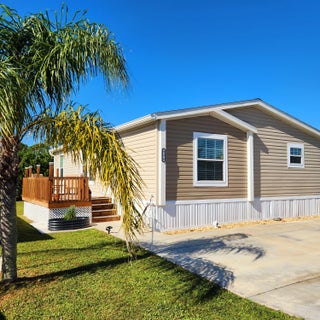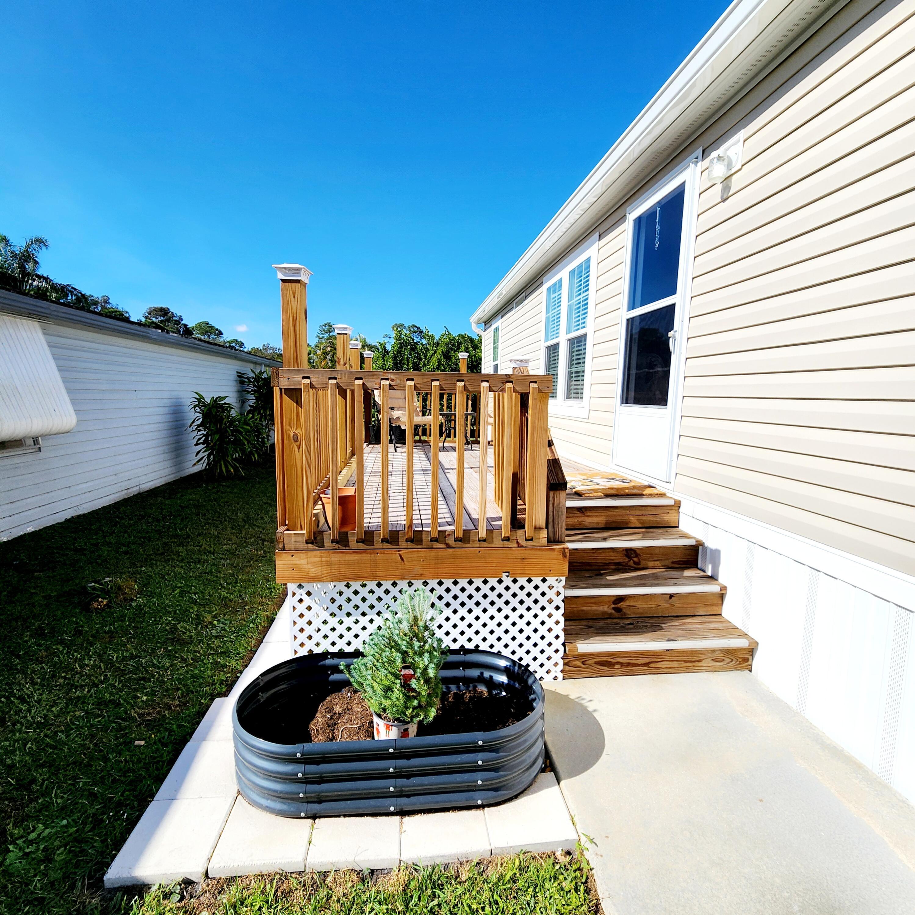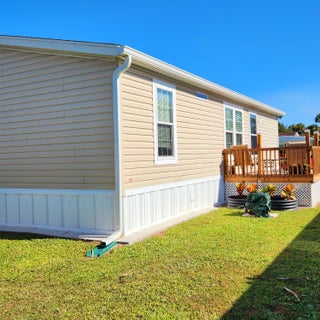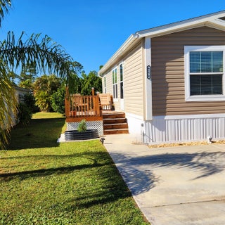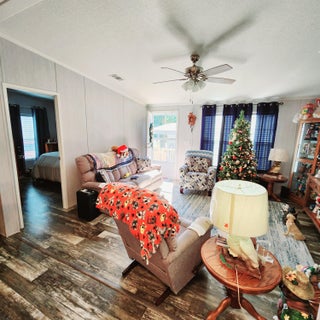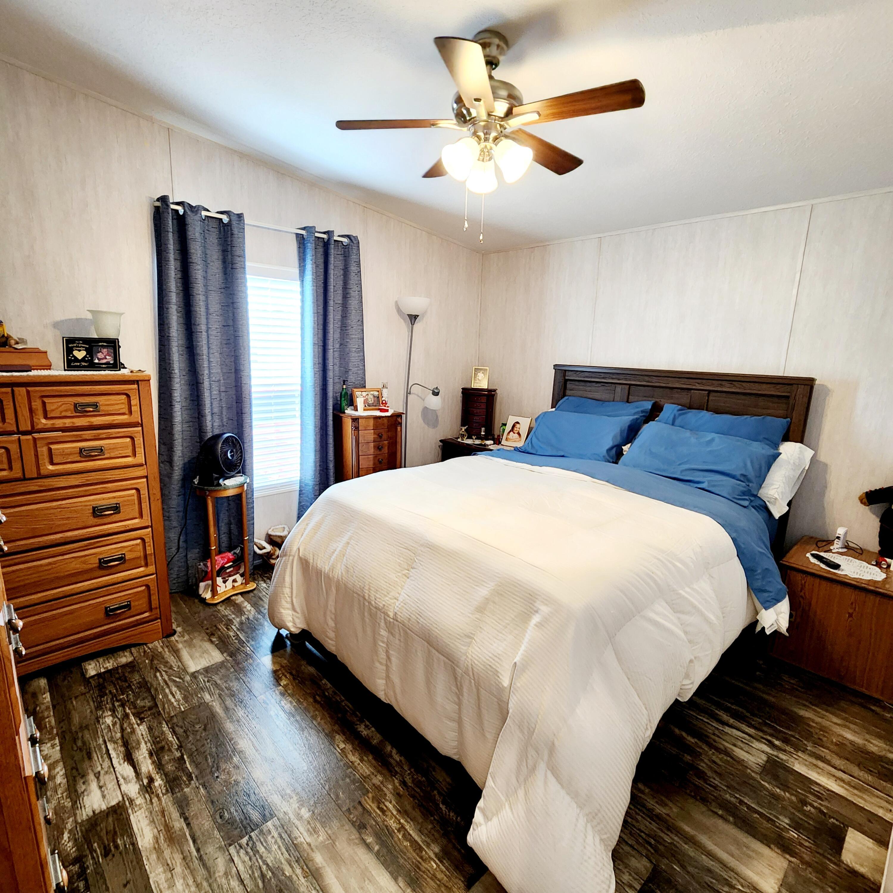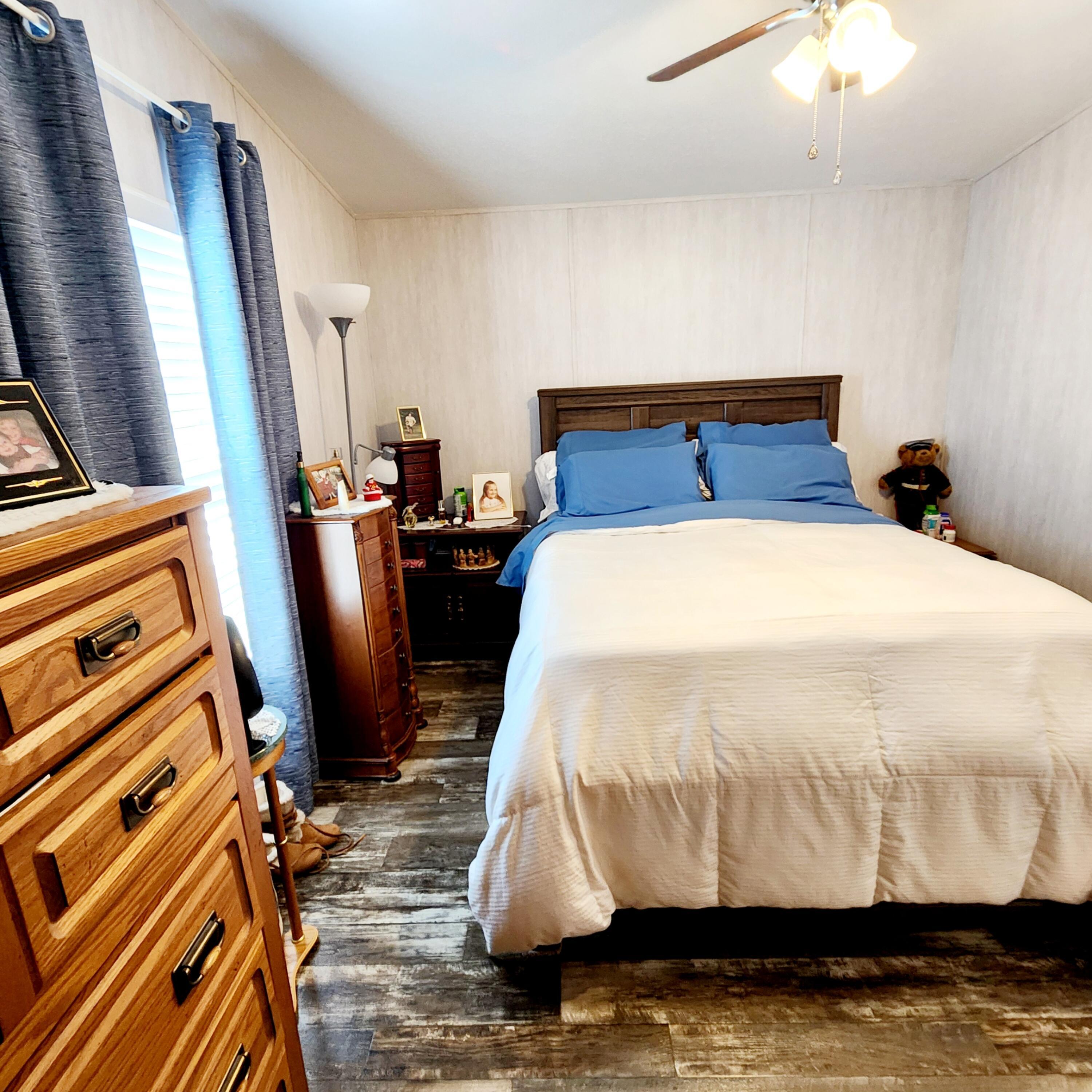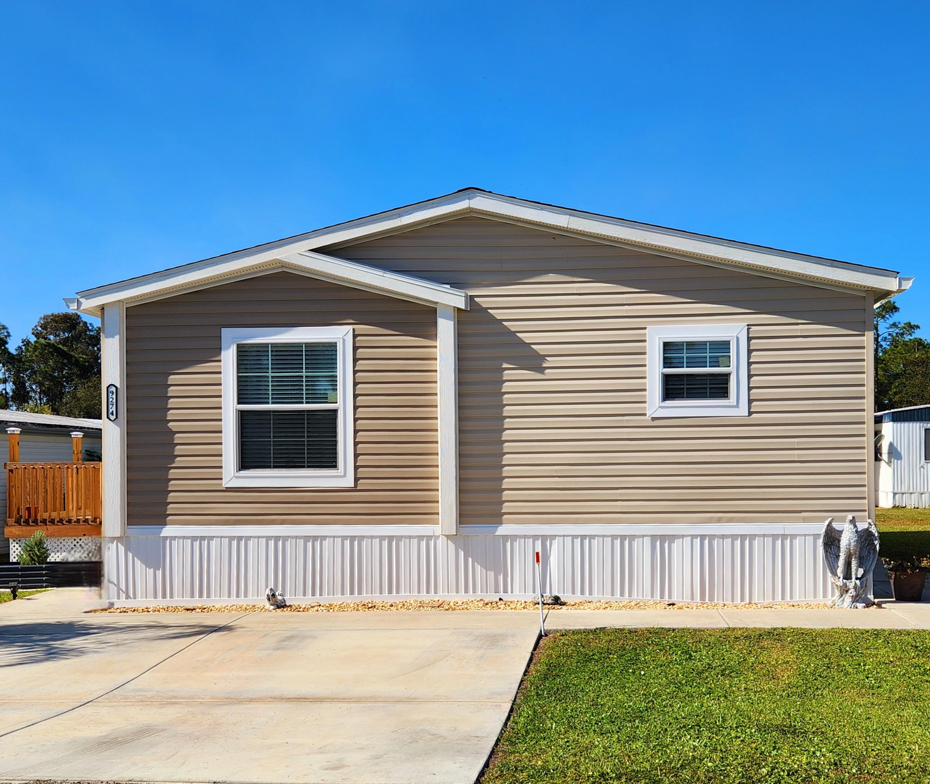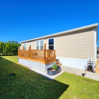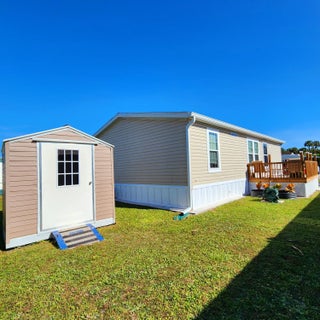 Welcome to your dream home! This cozy, SOLID & SAFE, 2021 MODERN, WELL MAINTAINED, 3 bed, 2 bathroom gem offers the perfect blend of comfort & style. Step inside to an inviting open layout w/ beautiful flooring throughout, w/ ceiling fans in every room. The home also boasts an central exhaust fan, used to quickly cool the interior. The heart of the home opens to a gorgeous 2024 deck, illuminated by charming solar lighting. For those who love to tinker, garden, or store, the new, spacious shed provides extra storage. Nestled in a safe, friendly, neighborhood & conveniently located near amenities, property has the ideal combination of tranquility & accessibility. Whether you're looking for a forever home or a stylish retreat, this one checks all the boxes! (lot leased community)