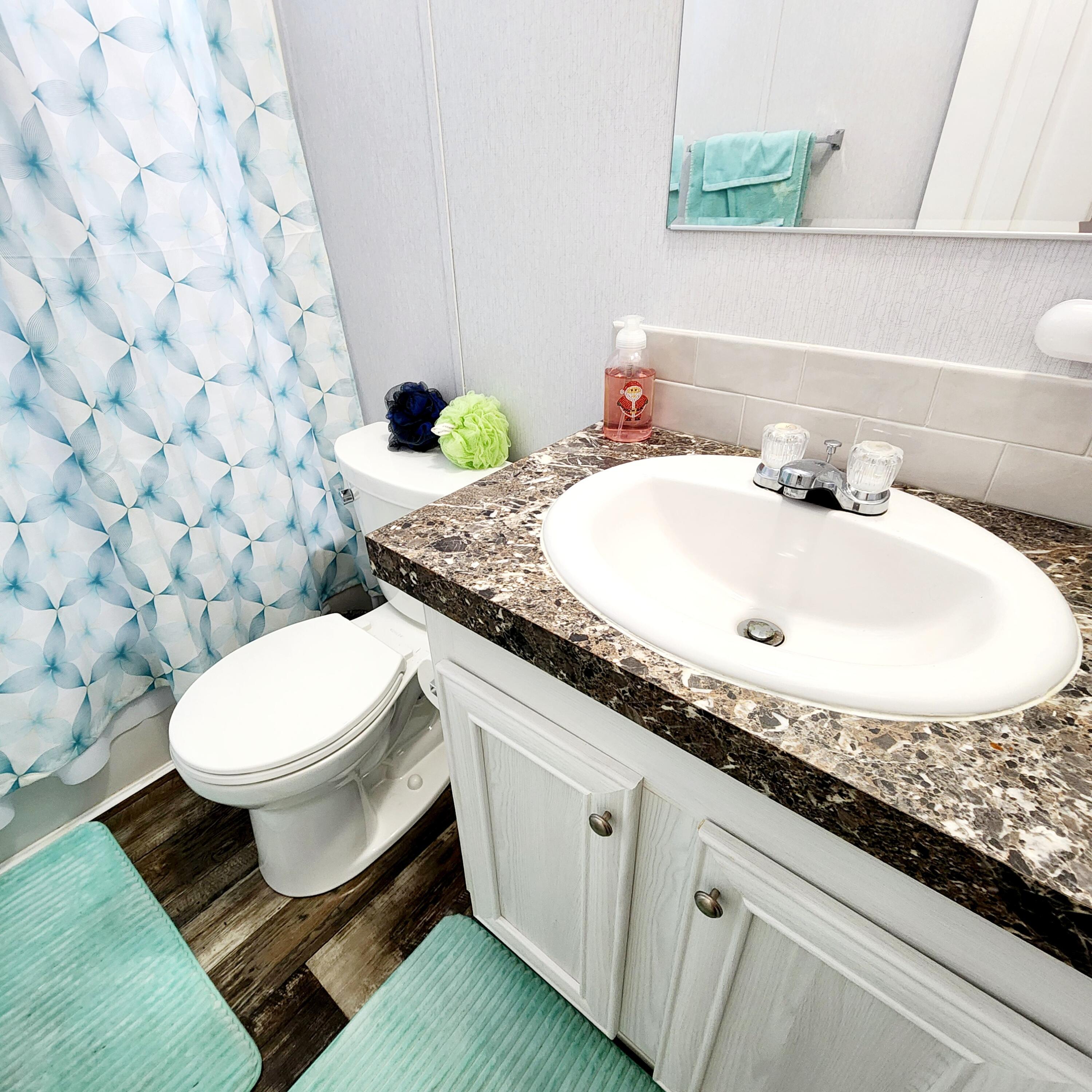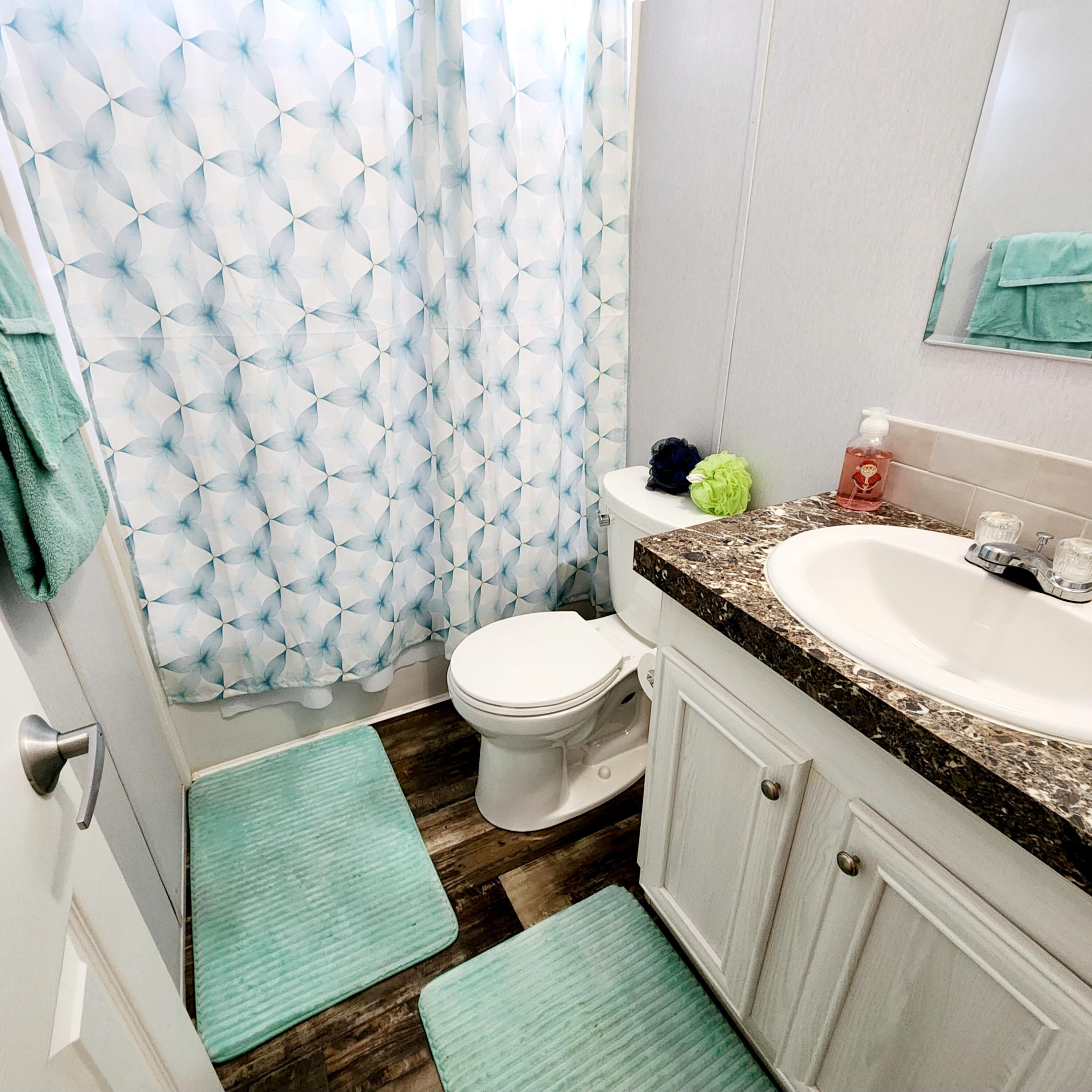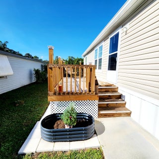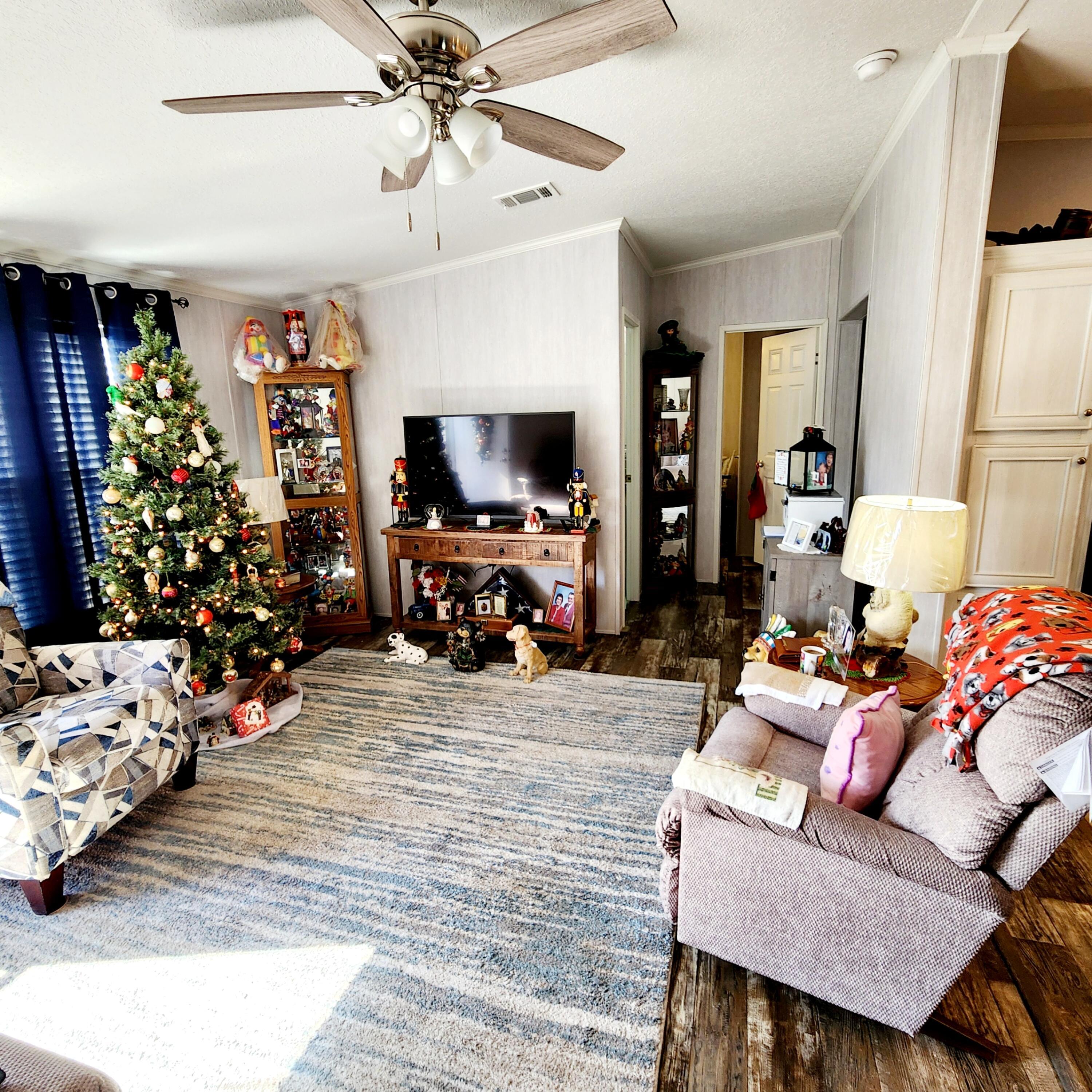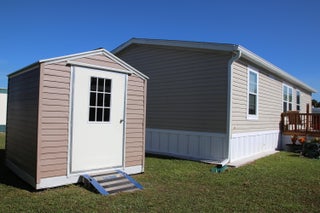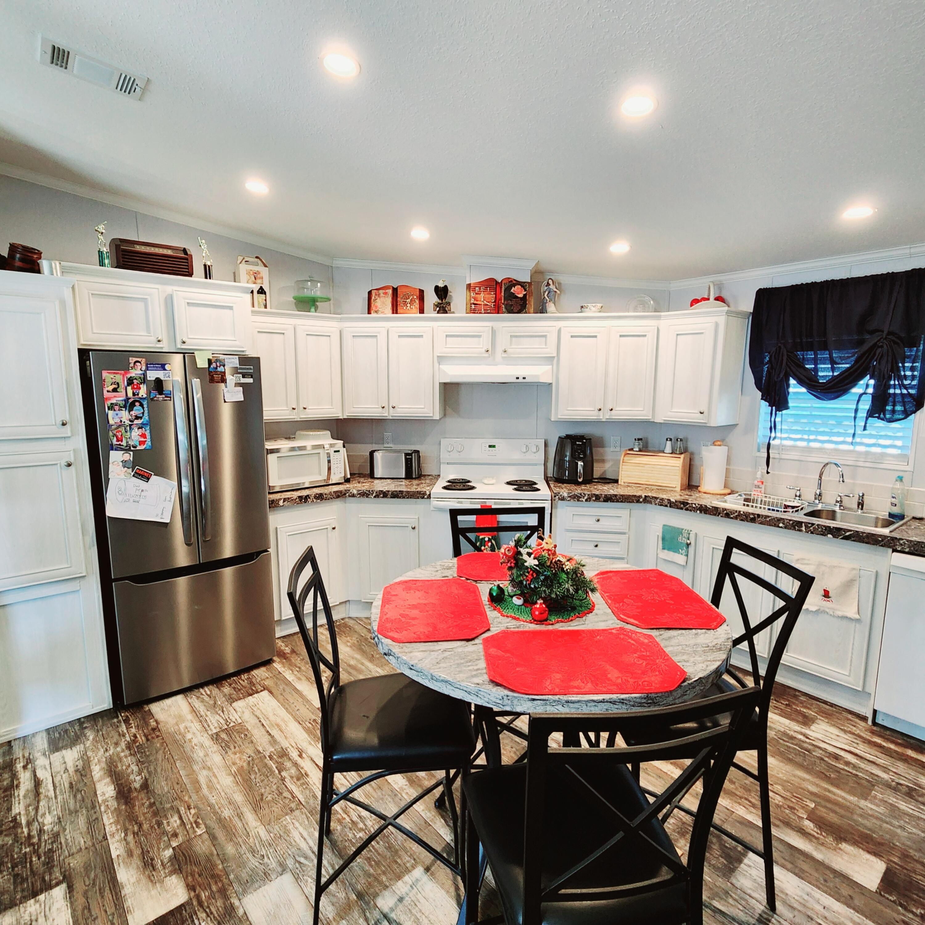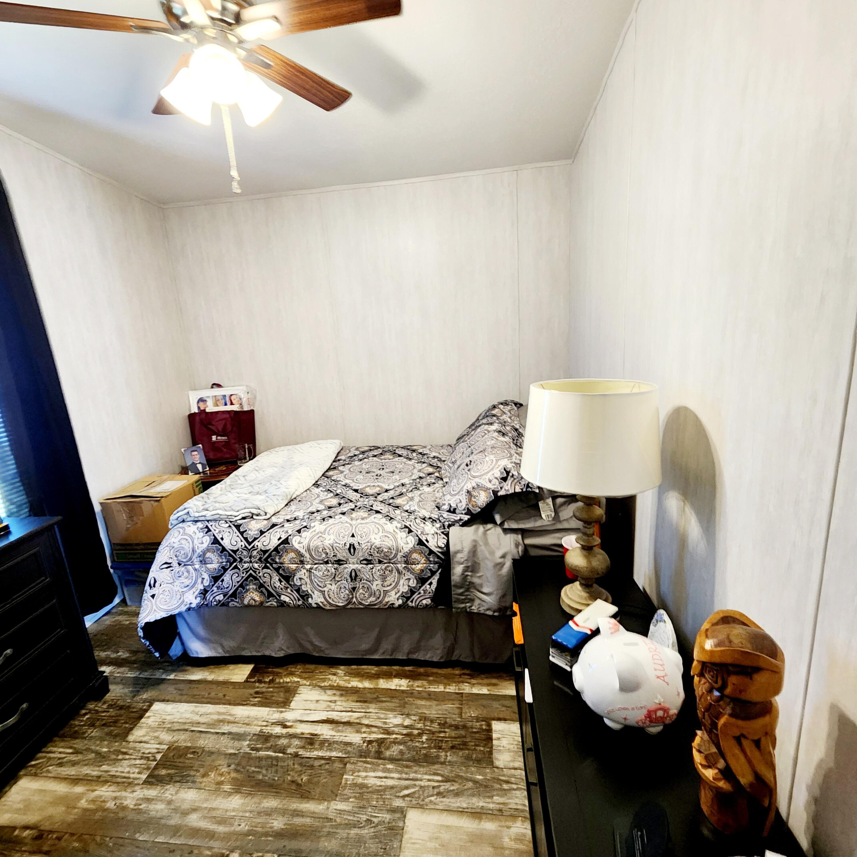Welcome to your dream home! This cozy, SOLID & SAFE, 2021 MODERN, WELL MAINTAINED, 3 bed, 2 bathroom gem offers the perfect blend of comfort & style. Step inside to an inviting open layout w/ beautiful flooring throughout, w/ ceiling fans in every room. The home also boasts an central exhaust fan, used to quickly cool the interior. The heart of the home opens to a gorgeous 2024 deck, illuminated by charming solar lighting. For those who love to tinker, garden, or store, the new, spacious shed provides extra storage. Nestled in a safe, friendly, neighborhood & conveniently located near amenities, property has the ideal combination of tranquility & accessibility. Whether you're looking for a forever home or a stylish retreat, this one checks all the boxes! (lot leased community)
