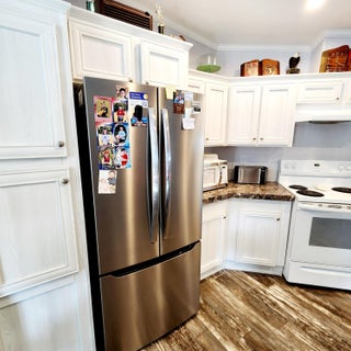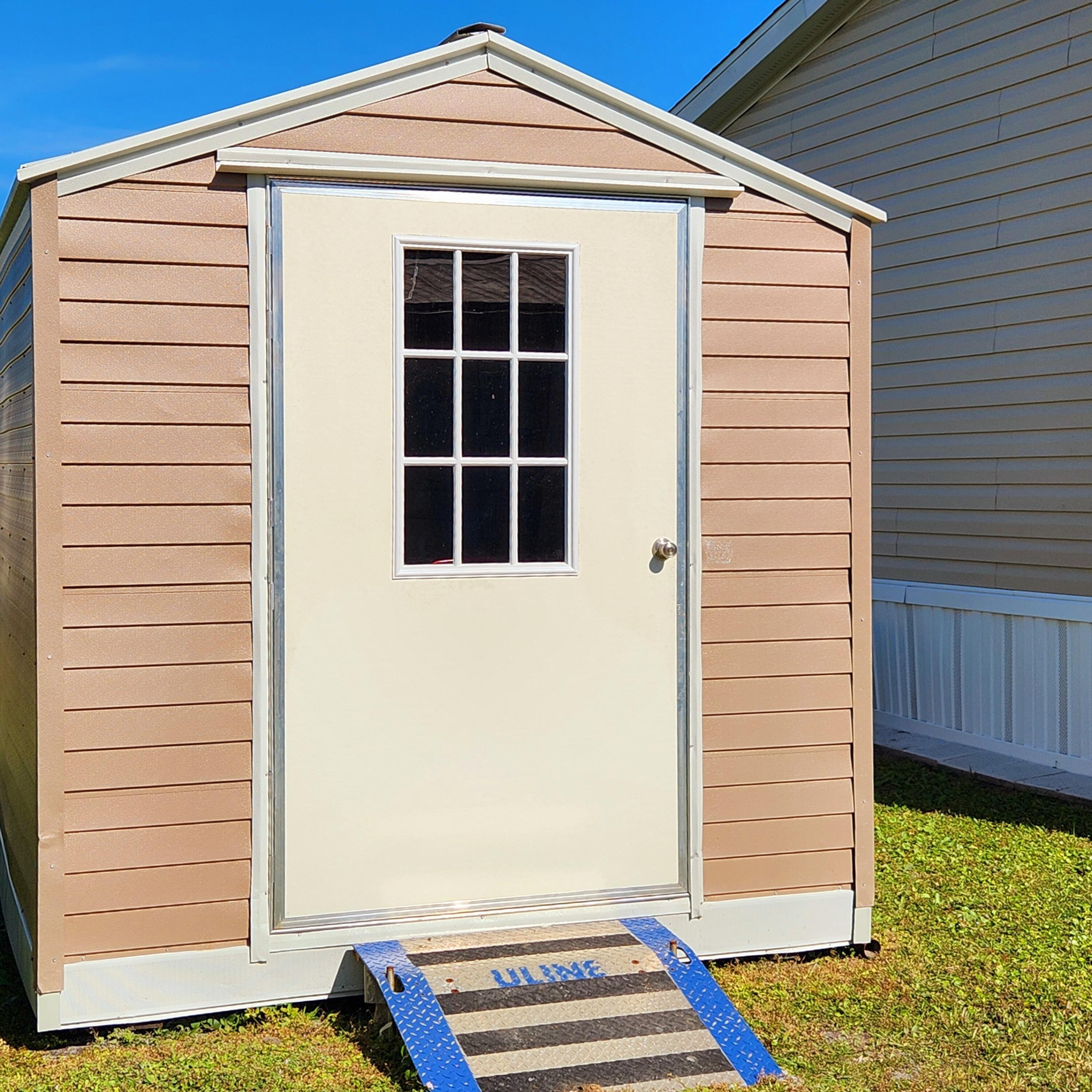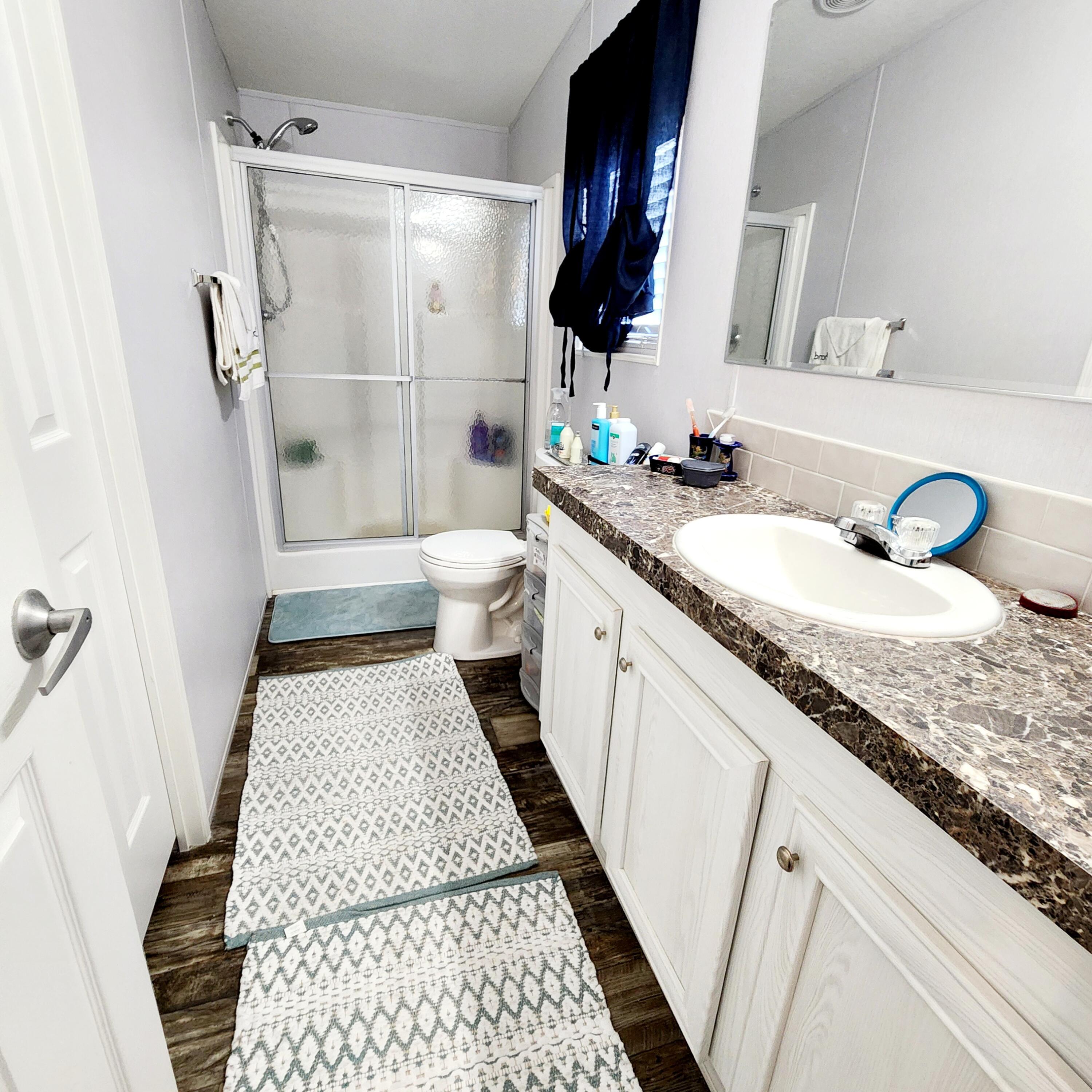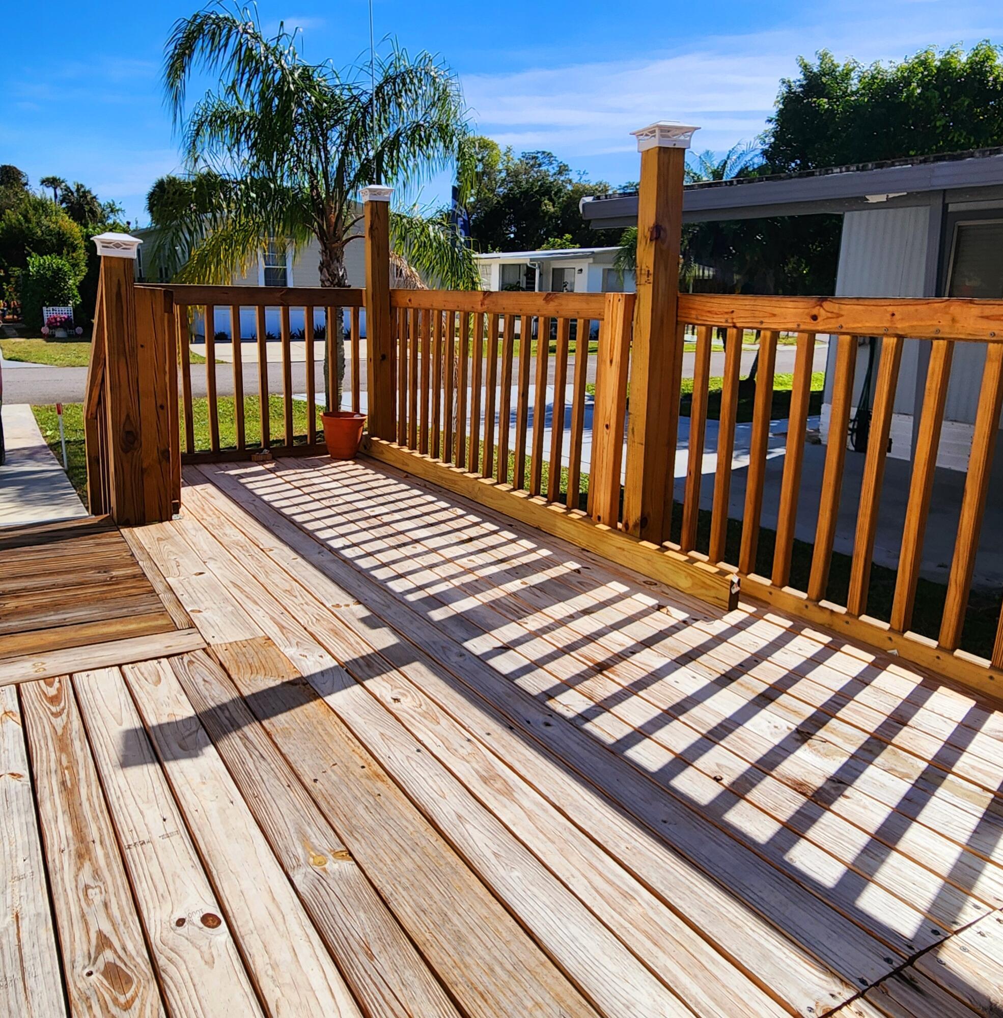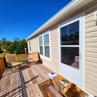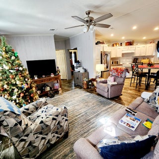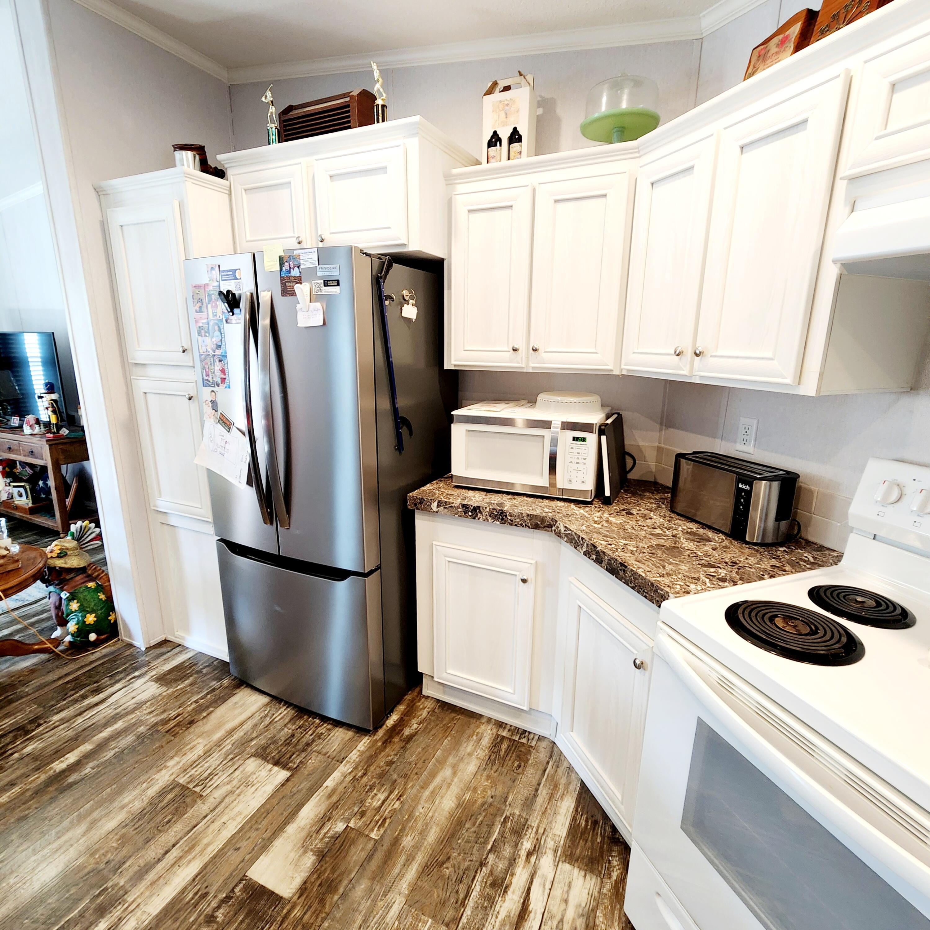 Welcome to your dream home! This cozy, SOLID & SAFE, 2021 MODERN, WELL MAINTAINED, 3 bed, 2 bathroom gem offers the perfect blend of comfort & style. Step inside to an inviting open layout w/ beautiful flooring throughout, w/ ceiling fans in every room. The home also boasts an central exhaust fan, used to quickly cool the interior. The heart of the home opens to a gorgeous 2024 deck, illuminated by charming solar lighting. For those who love to tinker, garden, or store, the new, spacious shed provides extra storage. Nestled in a safe, friendly, neighborhood & conveniently located near amenities, property has the ideal combination of tranquility & accessibility. Whether you're looking for a forever home or a stylish retreat, this one checks all the boxes! (lot leased community)
