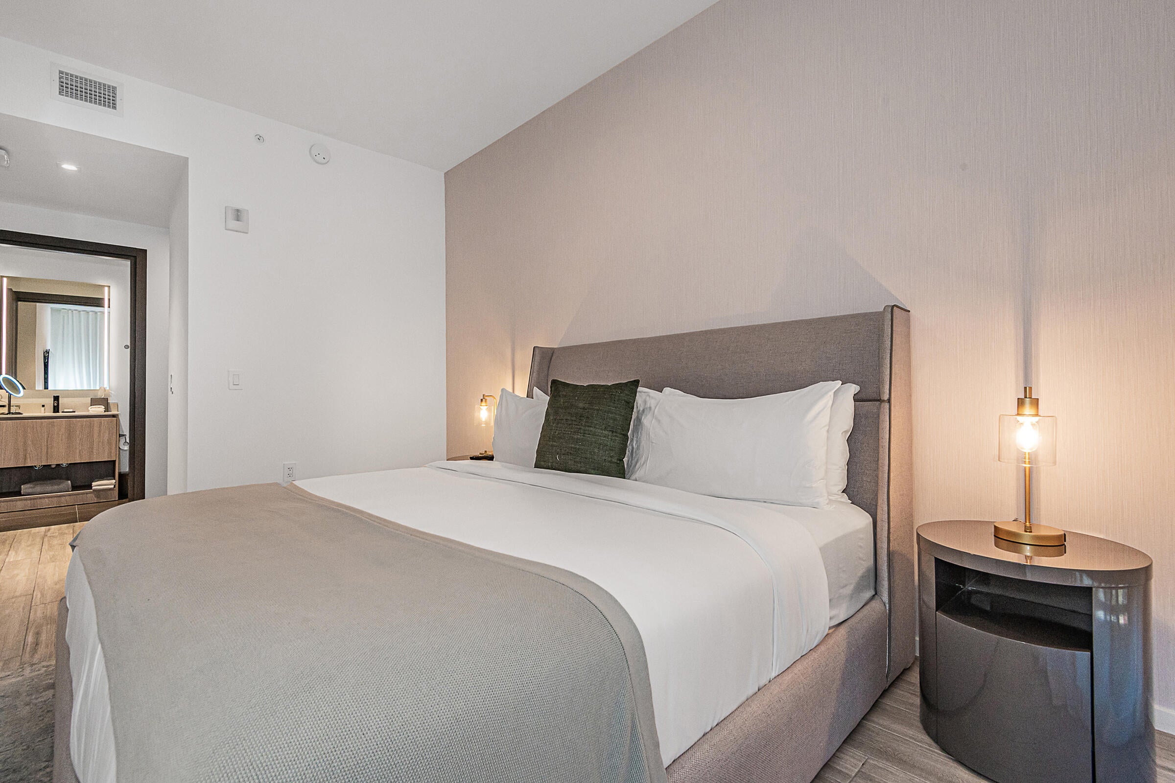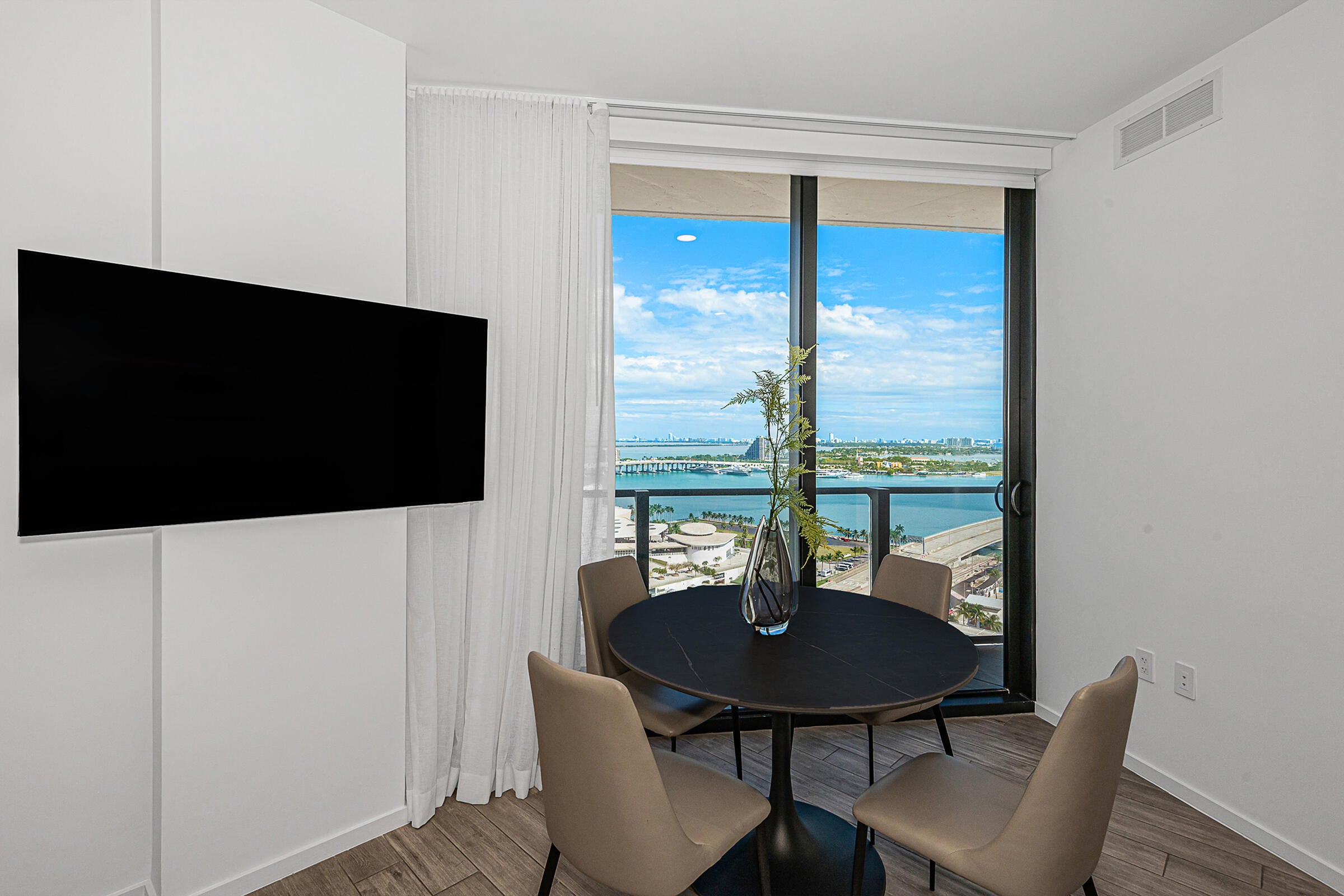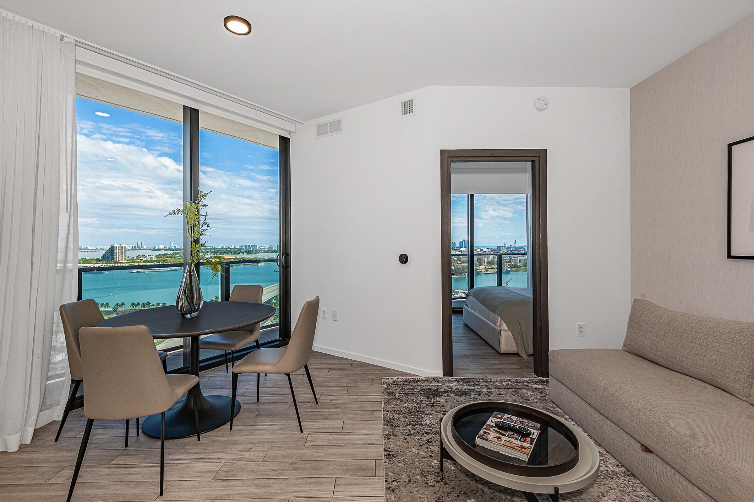 Experience luxury living at The Elser, where style meets comfort. This fully furnished condo features sleek modern furniture, a flat-screen TV, a king-size bed, and a pull-out couch for extra guest space. Enjoy smart living with a thermostat and keyless entry, and soak in breathtaking views of downtown Miami and Biscayne Bay from your high-ceiling unit adorned with designer touches.Amenities include 24/7 concierge service, a wrap-around pool, two-story gym, valet parking, sky lounge, grilling terrace, and more. The Elser's prime location provides easy access to the Kaseya Center, Bayside Marketplace, major roadways, Port of Miami, parks, and public transit.