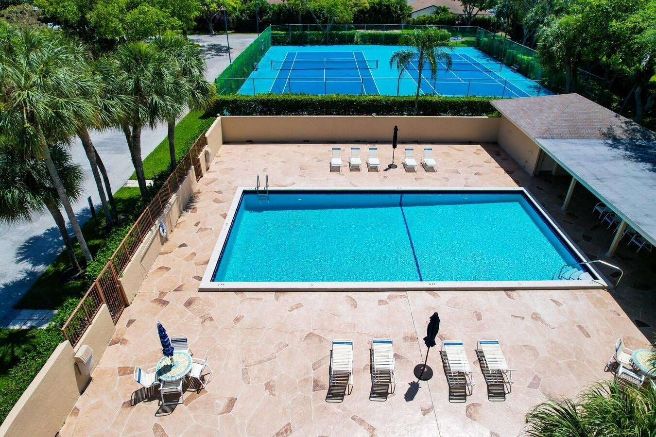 rarely available 3 bedroom 2 bath in sought after community! This nicely maintained community with low monthly fees and fabulous central location is close to all of the desirable East Boca shops and restaurants is also minutes to beach. Unit has been freshly painted and boasts spacious feel with vaulted ceilings and newer washer/dryer, water heater, A/C and all new CPVC plumbing. Perfect opportunity to personalize the roomy space and make it your own. Resort style community pool and tennis courts make this central, well-maintained community your perfect new home. Unit is being sold as is