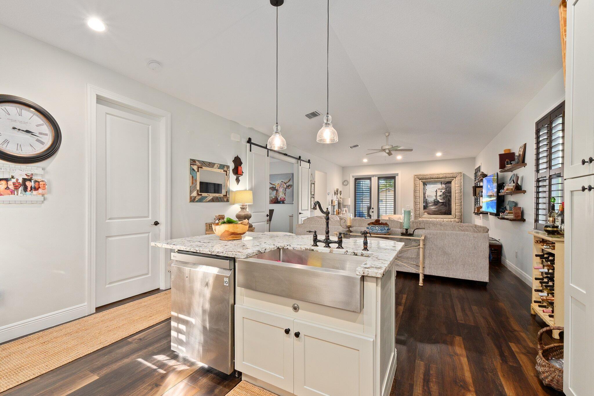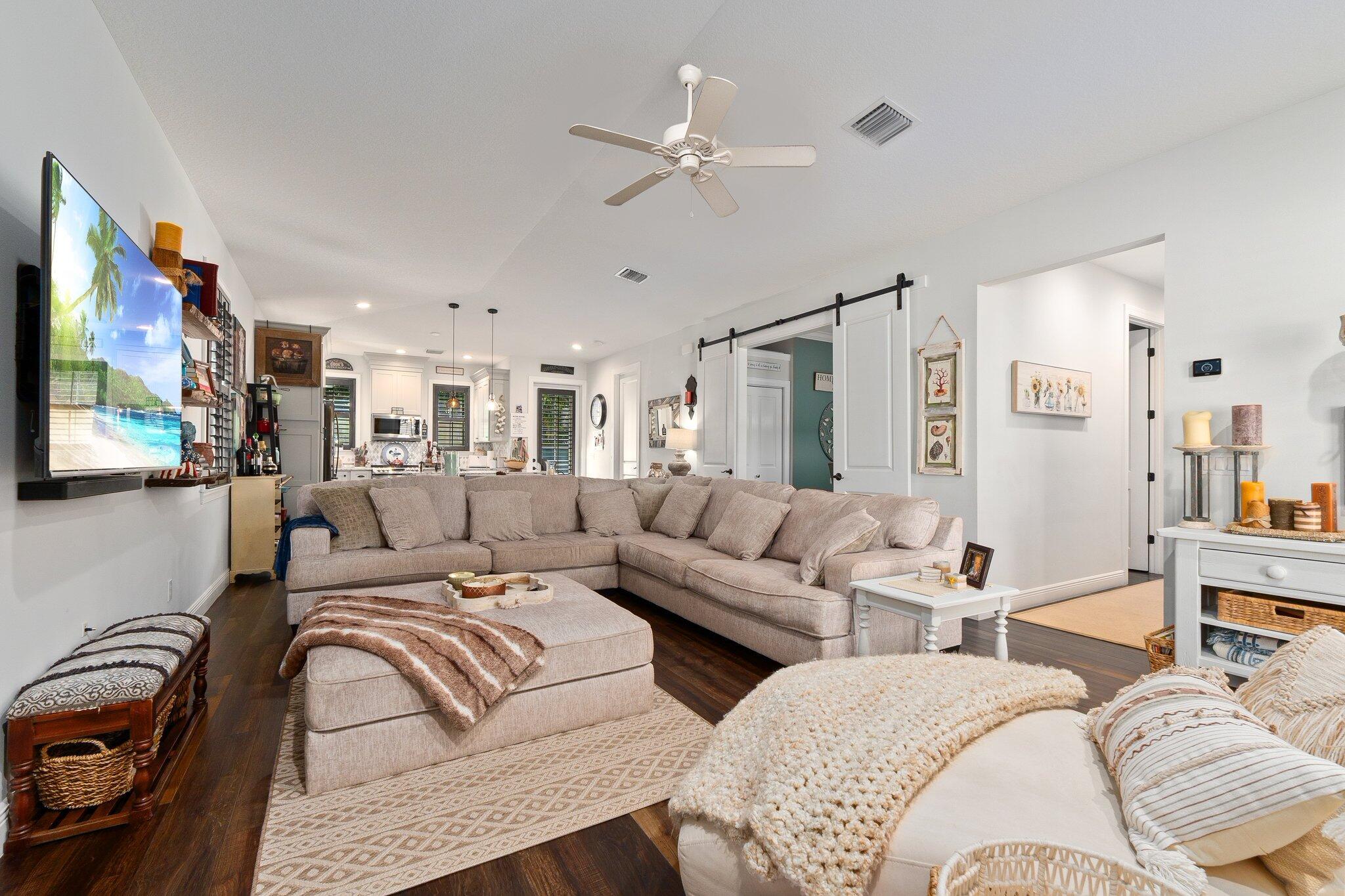 Bring your pets, boats, campers, and toys! This 2018 NEWER CONSTRUCTION concrete block home offers 3, possible 4 bedrooms, 2 baths, and a 2-car garage, with full hurricane impact protection and a durable metal roof. Designed with efficiency and style, the single-level layout boasts an open kitchen and family room featuring custom cabinetry and natural stone granite countertops. A versatile barn-door-enclosed dining room with a closet can serve as a private office or 4th bedroom. Stay comfortable year-round with Icynene insulation and an upgraded A/C system with an automated humidistat. Enjoy low utility and insurance costs. The .29-acre fenced lot provides plenty of room for a pool in the future and ample space and privacy.Conveniently located just 1 mile from Downtown Stuart's vibrant shops, dining, and entertainment, and just a 5 min drive to our beautiful Stuart Beaches. This home is ready for your Florida lifestyle!