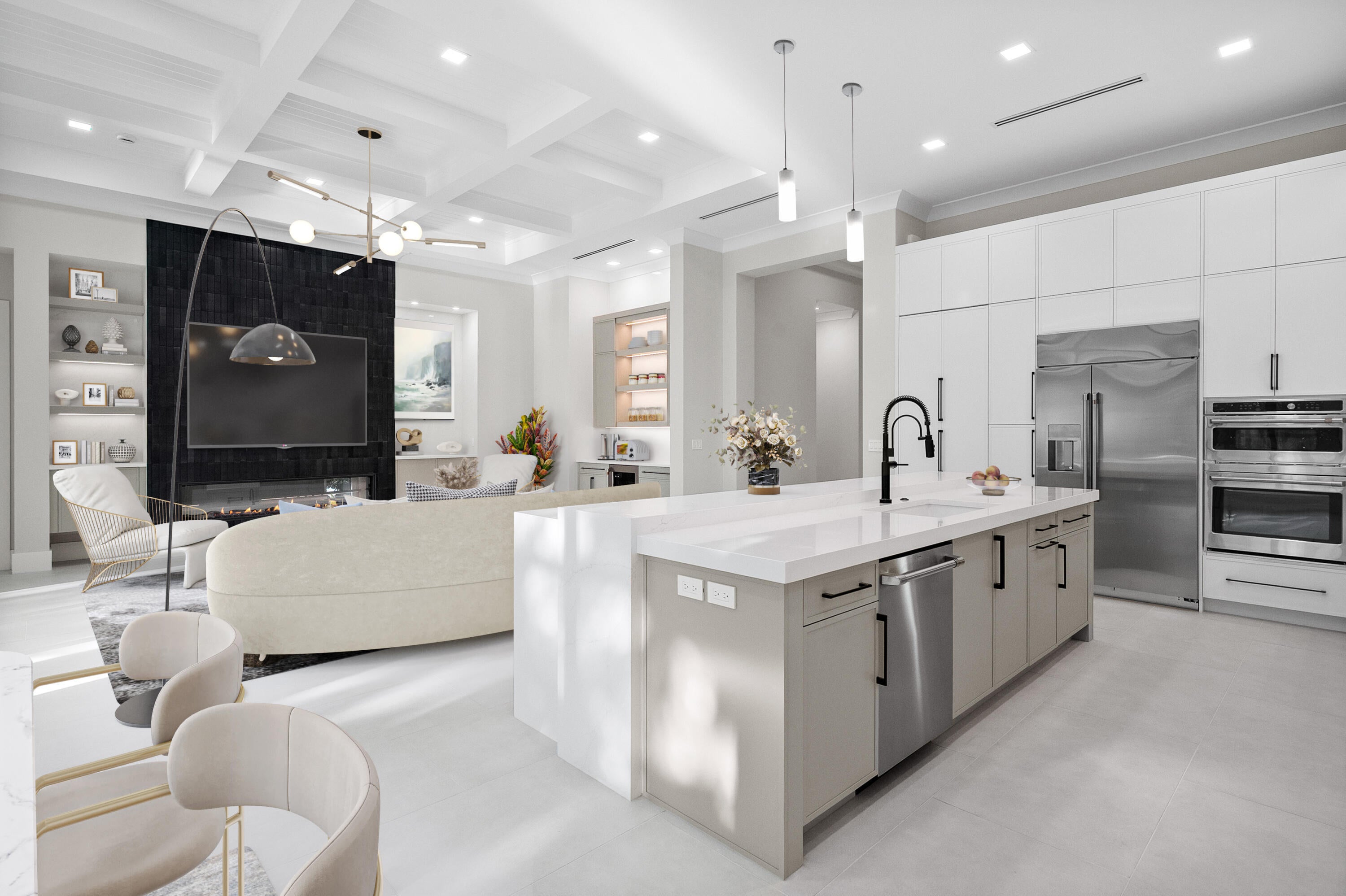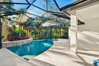 This home, offers 2,928 finished sq.ft. & features 3 bedrooms, a den w/4 bathroom. It is located on a private lot that embraces a natural setting w/towering hardwood trees & palm. The back patio area is designed for the best in entertaining, featuring a pool w/waterfalls and a champagne spa. Inside upgrades & finishes include volume ceilings, upgraded kitchen cabinets, Cafe appliances, a 78-inch linear fireplace w/a tile surround, large profile - 33x33 porcelain floor tile, crown molding, & tongue-and-groove wood ceiling details. Additionally, this home offers a club room including a bar.
