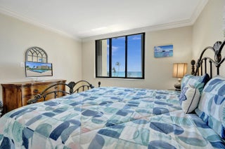 Furnished or unfurnished! Great updated 2/2 condo in the desirable 400 building of Ocean Trail. Unit just painted inside. The garages, and pool deck will be completely updated and state of the art in a few short months. This building is the closest to the Inlet and all its park activities. Upgrades in the unit include high impact windows and sliders, new accordion shutters for extra protection, crown molding throughout, plantation shutters, electric blinds, new AC in late 2023 (Bosch), brand new washer/dryer, stainless steel appliances, granite counter tops , wood cabinetry, and clean as a whistle!! Community includes 24 hour manned gate, tennis, pickleball, pools, whirlpool, grills, under building parking and storage, and best of all, direct oceanfront views and access!