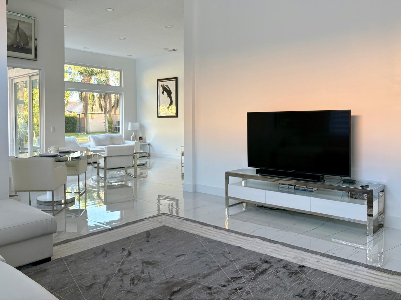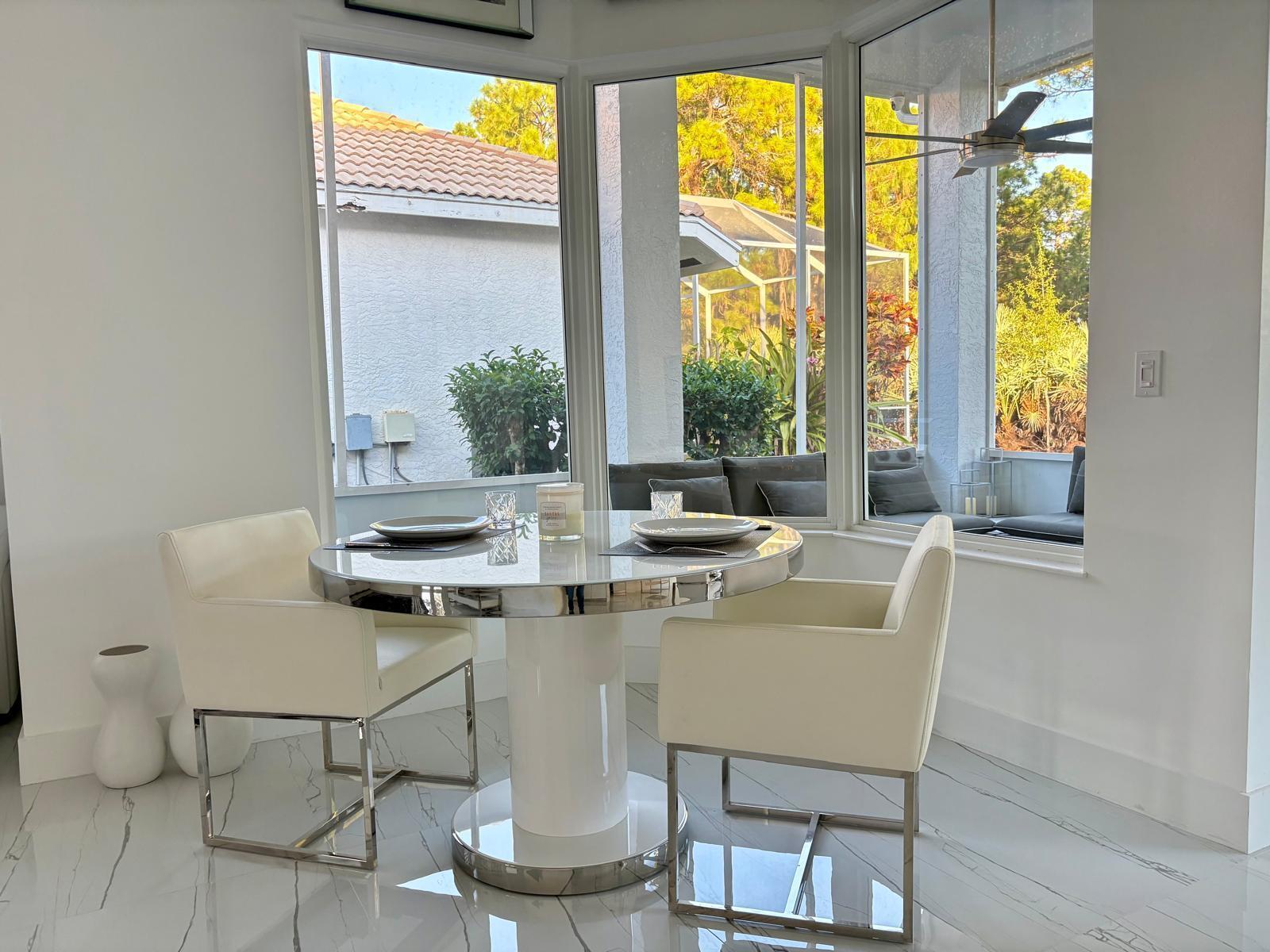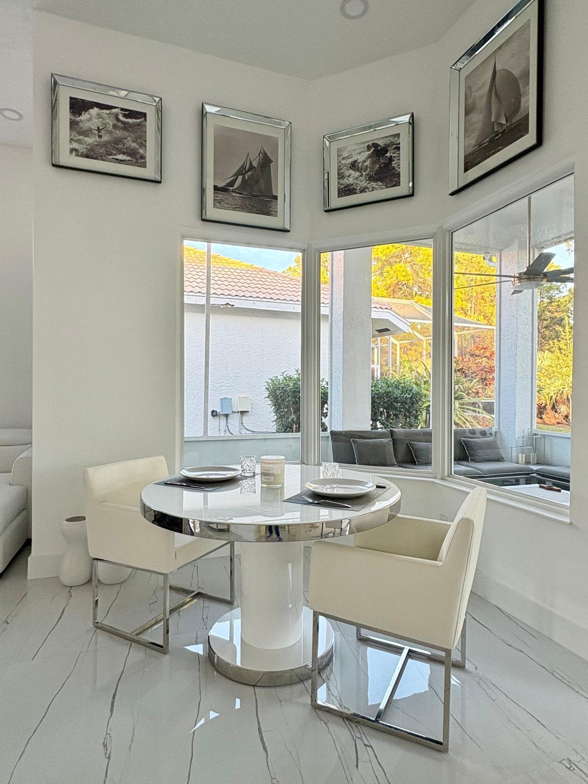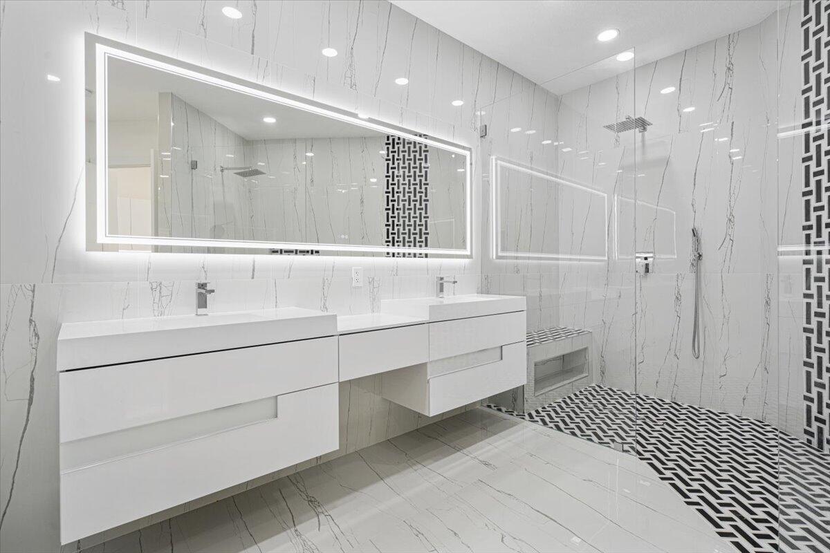 Totally renovated home in Lake Charles. Luxury 3 bedroom, 3 bath home, with all bedrooms featuring en-suite bathrooms, formal living room, dining room, family room, and a spacious backyard with room for a pool. Brand-new impact windows throughout, including new impact front door and new impact sliding door to the lanai. New porcelain floors throughout, new porcelain pavers in the garage and patio, and a brand-new modern kitchen with white lacquer cabinets, quartz countertops and backsplash with waterfall edge, soft-close drawers and cabinets, under-cabinet lighting, brand-new stainless steel appliances, built-in wine cooler, and range/hood.Fresh exterior paint, new 5-ton A/C, new electric water heater, and a new whole-home water filtration system. Features new plumbing and electrical systems. Additional upgrades include solid oak doors in bedrooms and closets, marble window sills, and beautifully updated bathrooms showcasing marble mosaic finishes, smart toilets, floating vanities, double sinks in the master, dual showers, shower bench, extra-large makeup mirror, and 18 LED smart lights in the master suite. The home also offers built-in and walk-in closets, new A/C vents, floor-to-ceiling tile in all bathrooms, Ring doorbell, 8 high-resolution wired cameras (expandable to 24), new gutters with leaf guard, modern blinds, LED makeup mirrors, and a new lanai fan and screen with 32" kick plate. Additional highlights include 120 LED lights (dimmer compatible), new smoke detectors, and new outdoor lighting. New sprinkler system.