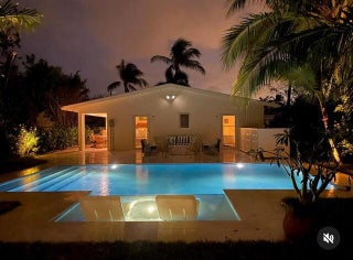 This 1970's bungalow was completely transformed in 2023 by Trish Becker Design, FGS Design Architects, and Ritzzo Development into a three bedroom/three bath stunner. The galley kitchen has new cabinetry, a Lieberr fridge, Cafe smart gas range and Bosche dishwasher. There is one King and one Queen, both with en-suite bathrooms, sizable closets and access to the pool. Directly off the kitchen is a covered dining porch with seating for 8. The fully enclosed garden features a new heated saltwater pool, built-in grill area with smoker, and a small garden shed obscured by new landscaping. An air of island chic is evident throughout, emanating from the vibrant color palette of encaustic tiles and fun fabrics. Weekly maid service included. Booked 12/19/25-3/30/26.