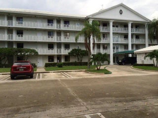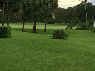 LOWEST PRICE FIRST FLOOR UNIT WITH PATIO. PRIVATE CORNER UNIT, NO CARPET AND CAN BE RENTED UPON PURCHASE. This garden condo with upgraded eat in kitchen cabinets and countertops, is conveniently on first floor with unobstructed view of garden, pool, golf and clubhouse from living area and master bedroom and both patios off living room and master bedroom. Living area is tiled, both bedrooms have fairly new vinyl plank flooring. Large laundry room can be used as office or den. Water and cable included in condo fee. Association requires min of 650 CS.