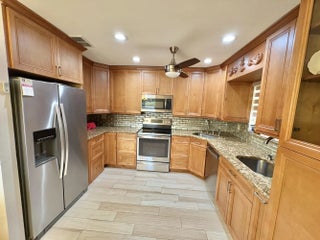 For sale in a 55+ retirement community of Century Village an absolutely move in condition 2 Bedroom, 2 Full updated Baths condo for sale on the second floor. This is a corner unit with an amazing wraparound enclosed porch used as a breakfast room and/or additional living room. It has all new hurricane windows. The condo boasts a newly remodeled kitchen with all wood 72 inch cabinets and expended cabinets into the dining room. This gourmet kitchen has granite countertops and backsplash, two separate sinks and stainless steel appliances, C/A. Century Village has many amenities to offer to residents, like over a 1000 seat clubroom to watch shows and movies, indoor and outdoor pools, courtesy bus service, medical facilities, beauty shop, tennis, boating and more. Close to PBI airport, beaches