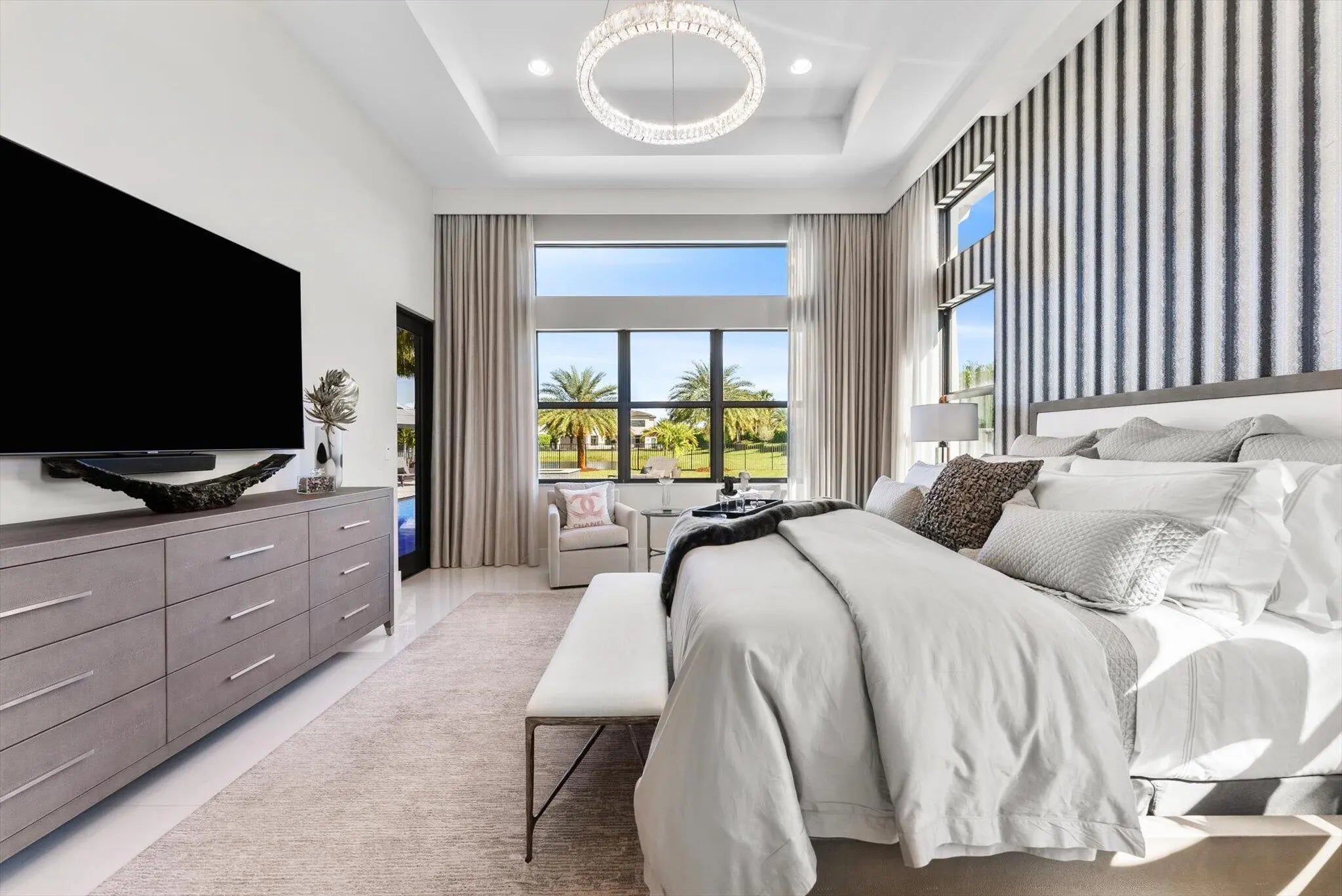 Experience luxury living in Boca Bridges with this stunning coveted corner one story, Murano Contemporary waterfront estate, on nearly half an acre. Now vacant, unfurnished, and move-in ready, the home is fully designer-ready for your personal touch. Featuring 3 bedrooms and 4 bathrooms, it offers a gourmet chef's kitchen with top appliances, custom lighting, and refined finishes and features. Every inch of this property has been crafted with the most exquisite builder and owner upgrades imaginable. Outdoor highlights include a dedicated dog run, luxury pool and spa, lush private landscaping, and expansive grounds. A rare opportunity to own a meticulously upgraded residence in one of Boca Raton's premier communities. This is the luxury home you didn't know that you needed...until NOW.
