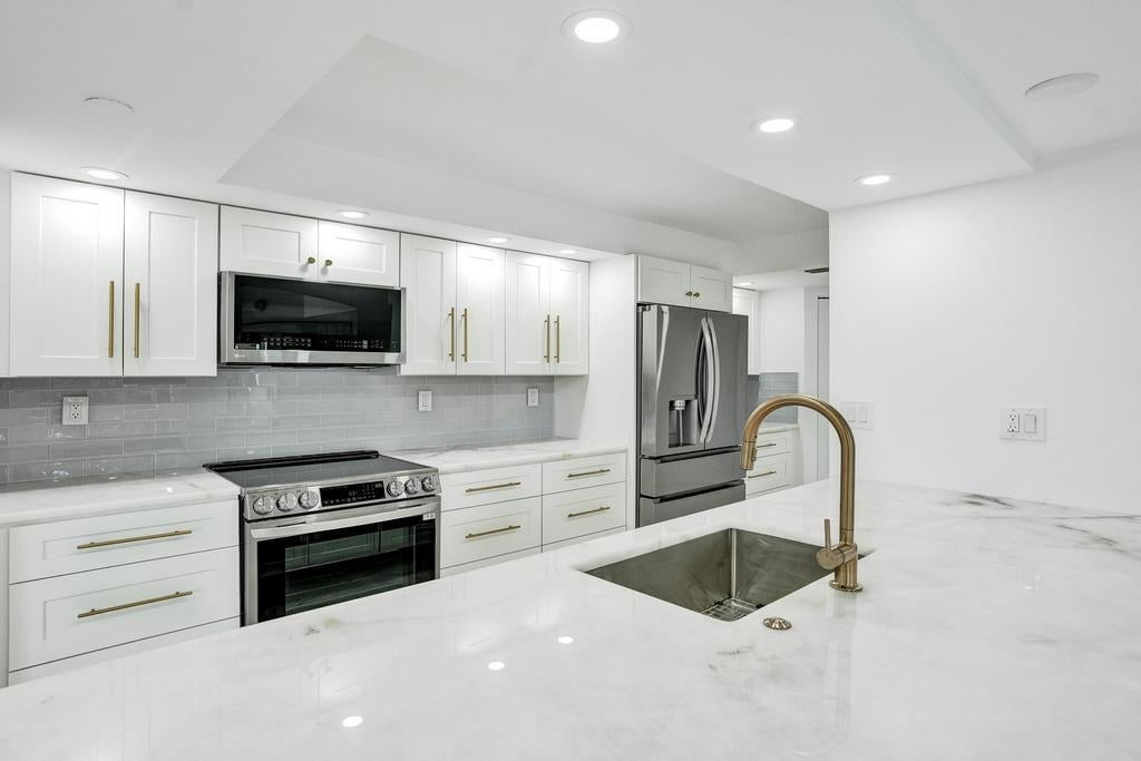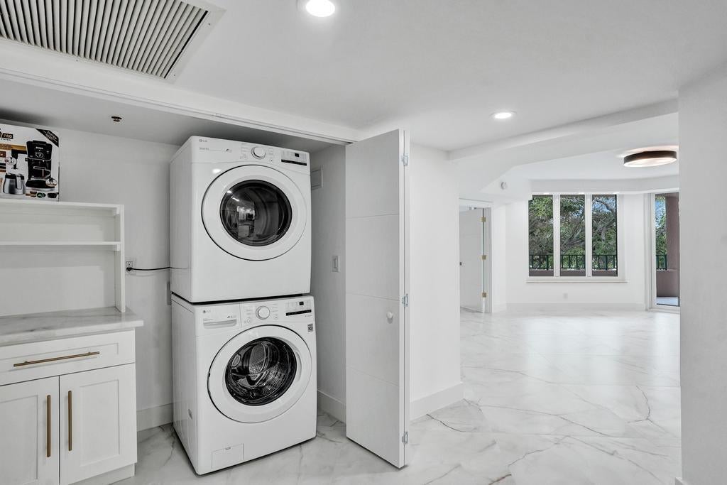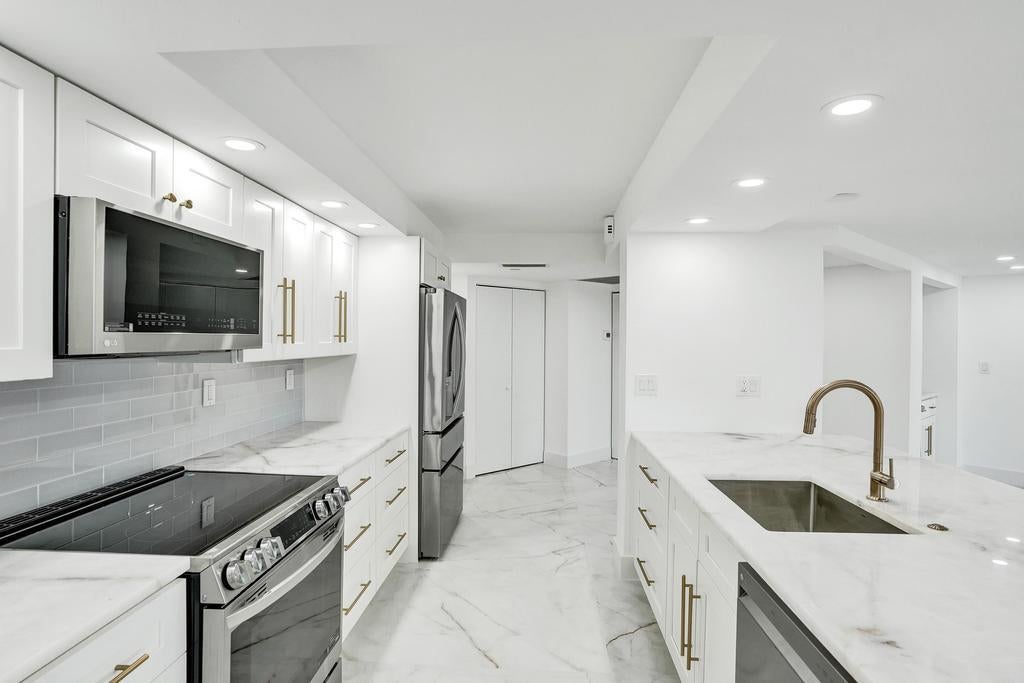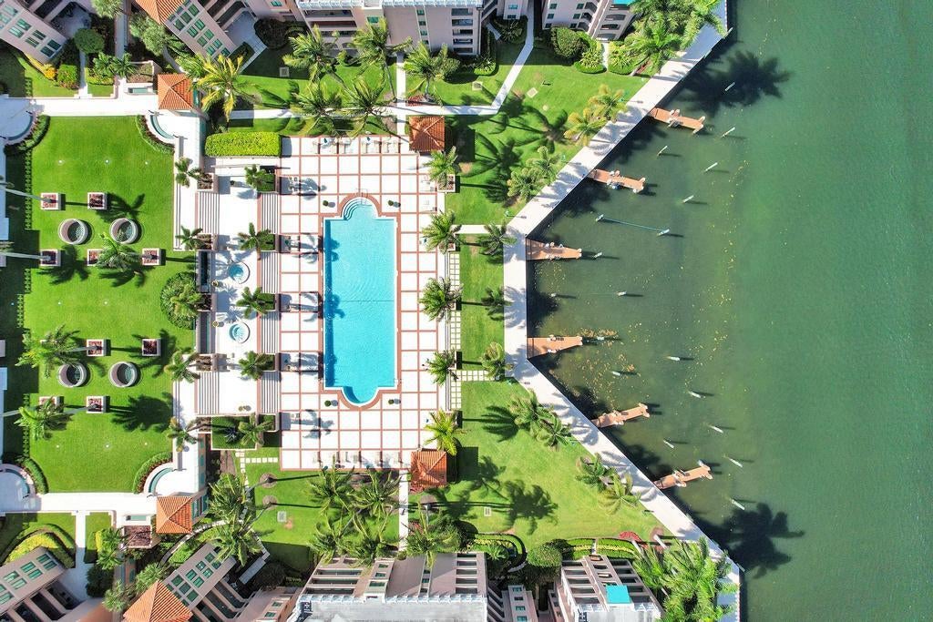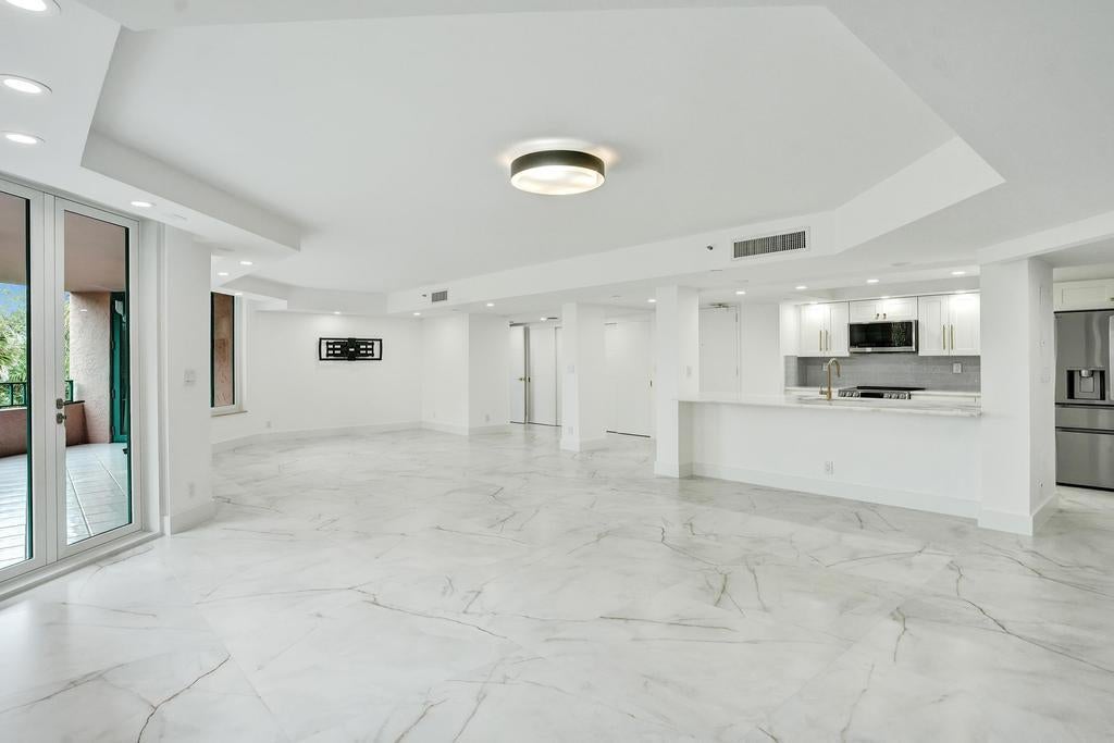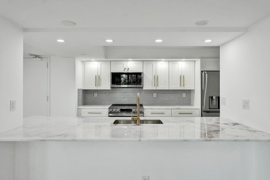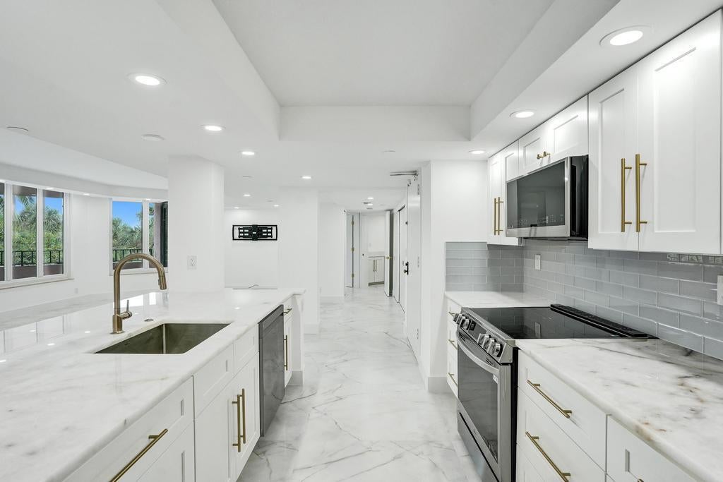 Perfection in Downtown Boca w/your OWN dock on Lake Boca! No expense was spared on this completely remodeled 2/2 condo in elegant Mizner Court, located on THE Boca Raton resort property. Spectacular Duvall white porcelain tile. Kitchen boasts Cristallo quartzite countertops, glass backsplash, white shaker cabinet & drawers, Brizo luxe gold high quality faucet, Hopewell Honey bronze cabinet pulls & knobs, 17 cu' range microwave w/air fryer & high quality carbon air filter, brand new LG range & refrigerator. Wine Bar w/Quartzite countertop, wine cooler & glass shelving. Serene Master bathroom w/ribbon oak tile, Brizio luxe gold high quality fixtures w/rain can shower head & side bar hand shower, Toto 1-piece elongated toilet w/tornado flush. New impact windows/doors, expansive outdoor lanai