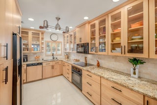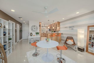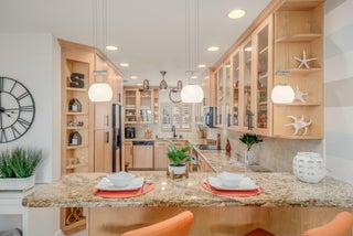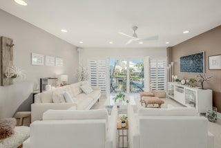 Waterfront Decorator's Dream in Mariner Cay, begins with the Mizner motif mosaic stairs to the front door. This meticulously, fully renovated & enlarged single level CBS corner condo offers panoramic water views & easy ocean access with no fixed bridges. The completely reconfigured designer granite kitchen features L-shaped breakfast bar, GE appliances, wine cooler, custom wood maple with glass insert cabinetry, and a Blanco stainless steel sink with a Hans Grohe faucet. Enjoy designer marble and granite baths with Italian plumbing fixtures, impact glass windows and sliders, plantation shutters, crown molding, Italian porcelain tile flooring, insulated walls, ADA compliant widened doorways with solid wood doors, all new hardware, custom closets and a 2017 metal roof.