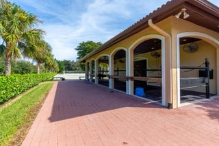 This Gorgeous center-aisle facility is just hacking distance to show grounds & awaits you with direct access to the Bridle path. There are miles of paths to explore and so pretty! Complete with 10 12x12 stalls and thoughtful touches, this newly built farm feels so elevated. The 100'x230' GGT arena is ready for your show season with full irrigation & beautiful dressage mirror or can be an awesome jumping facility. The 2.44 acres hosts luscious paddocks, each stall is outfitted with fans, central fly spray, cameras. Designed for the discerning equestrian, the beautiful tack rm, feed rm, laundry rm, & fully furnished apartment lend to a high end experience. Such a pretty gazebo and the onlooking patio are wonderful to host guests. This facility has a separate barn entrance and fully fenced!